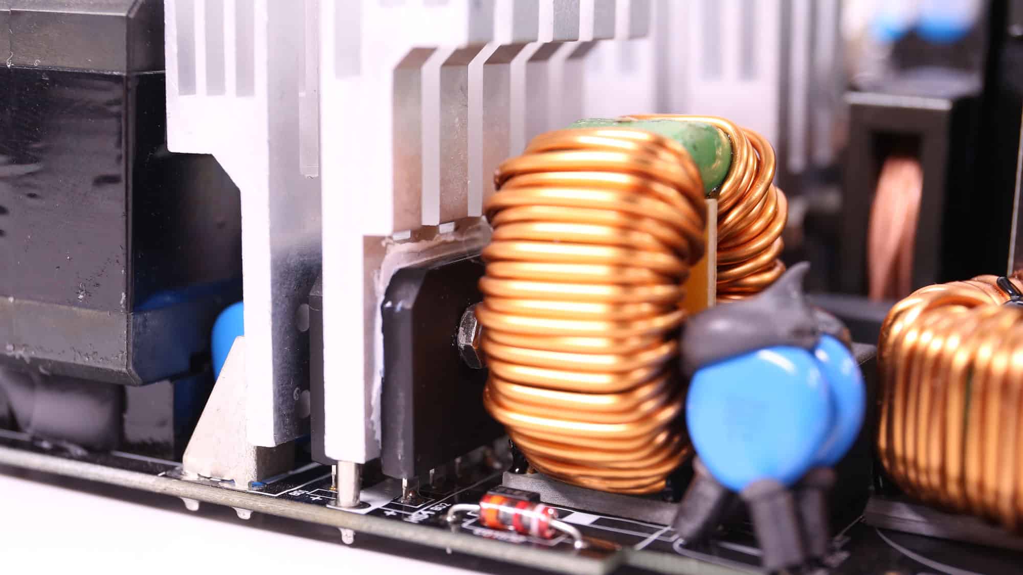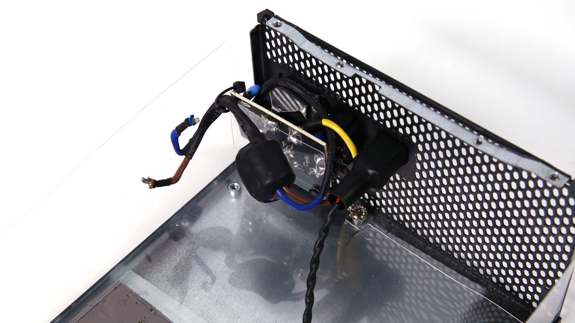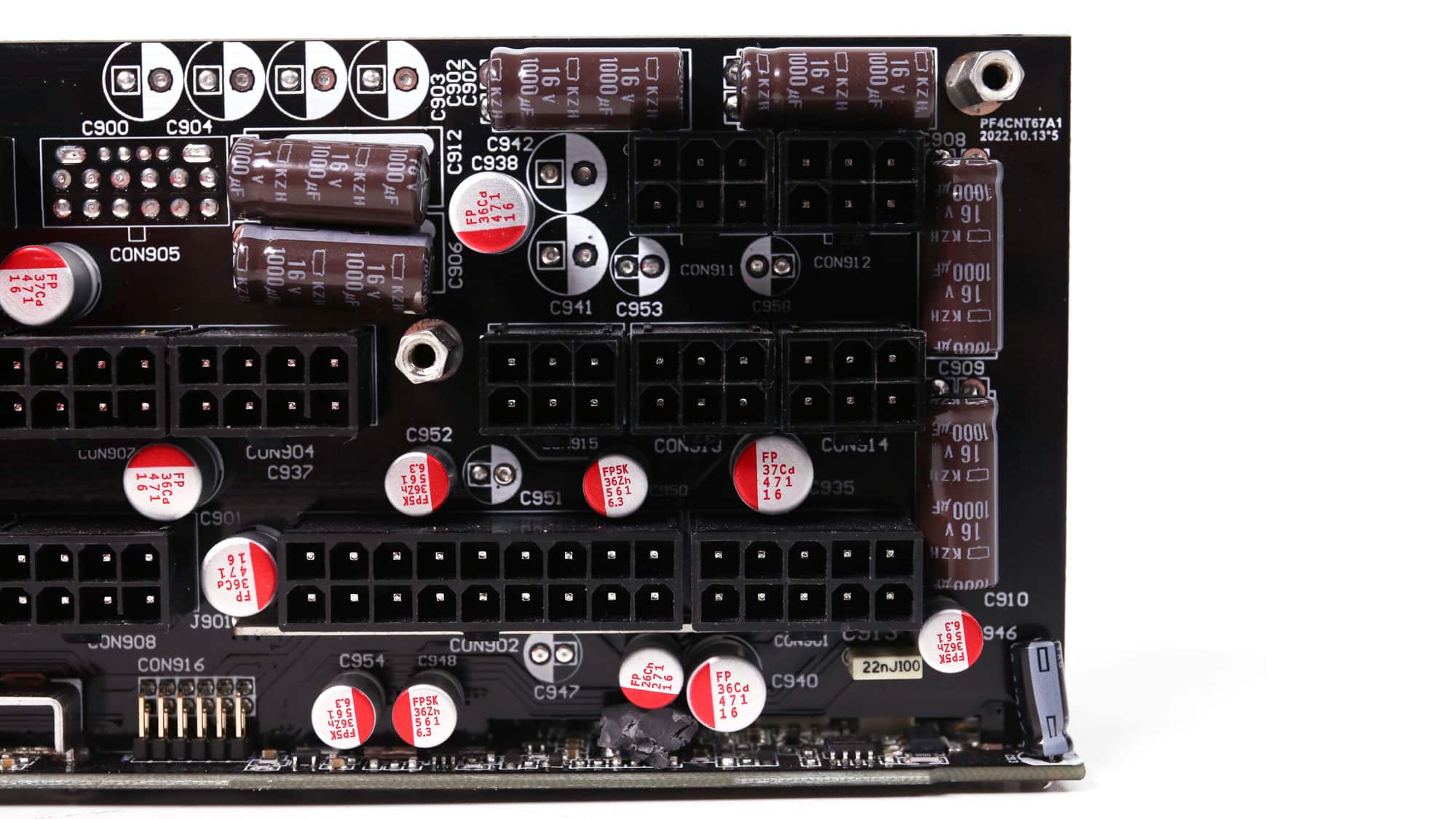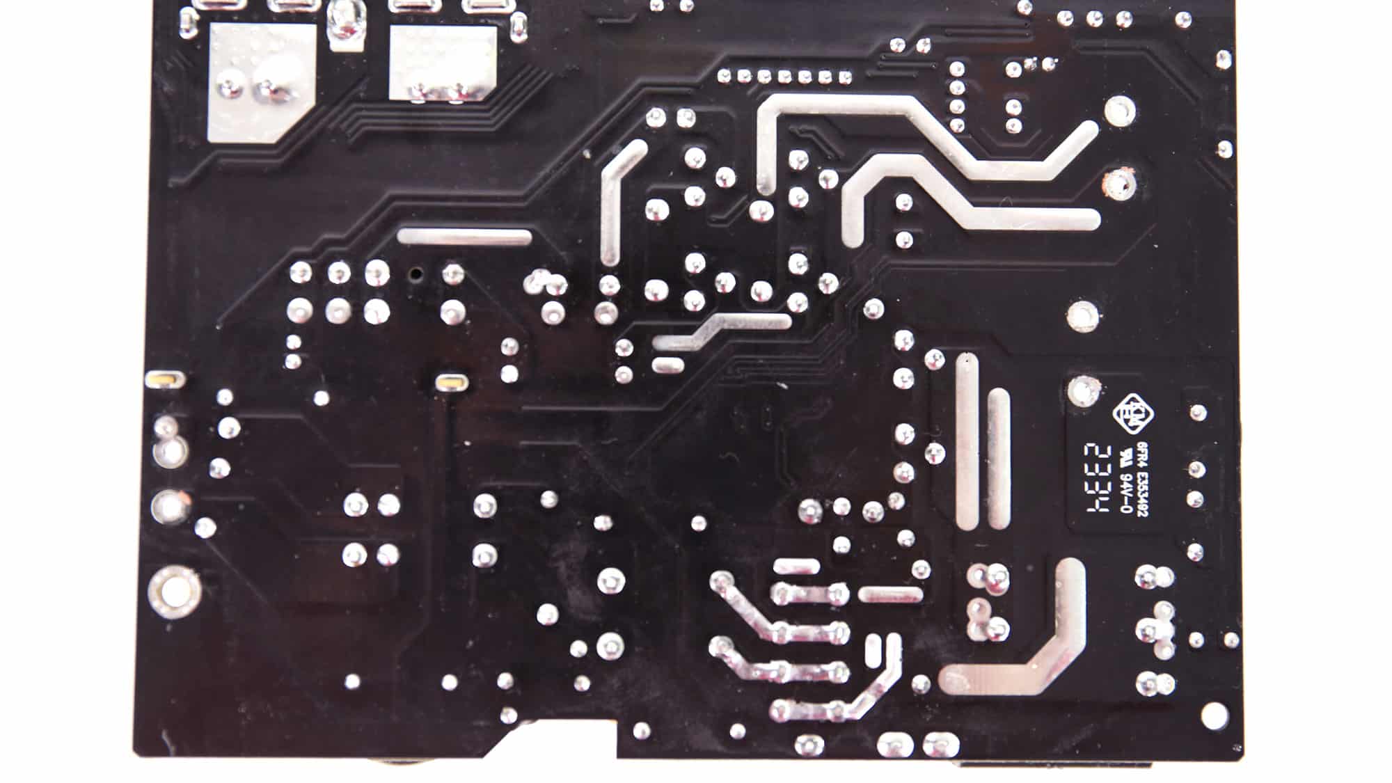 Seasonic provides this platform with a contemporary design. Its primary side has an APFC, a full bridge, and an LLC resonant converter. On the secondary side, a synchronous rectification scheme is used for 12V, and a pair of DC-DC converters generate the minor rails. The PCB is compact but not densely populated because of the lack of large heatsinks on the secondary side. This means that airflow is not restricted; hence, the fan doesn’t have to spin at high speeds to cool down the components. Please note that I have removed the bulk caps in the photos above to provide a better view of the internals.