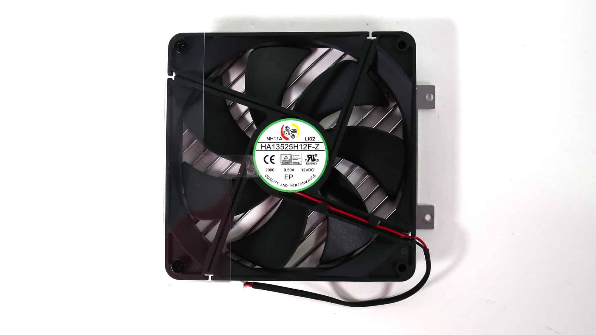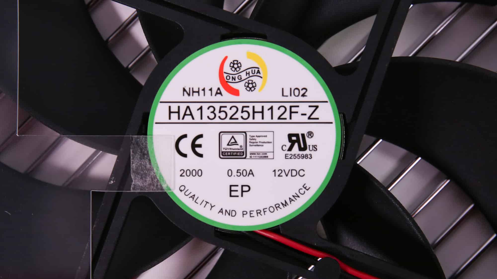 The cooling fan is a Hong Hua HA13525H12F-Z with a fluid dynamic bearing.