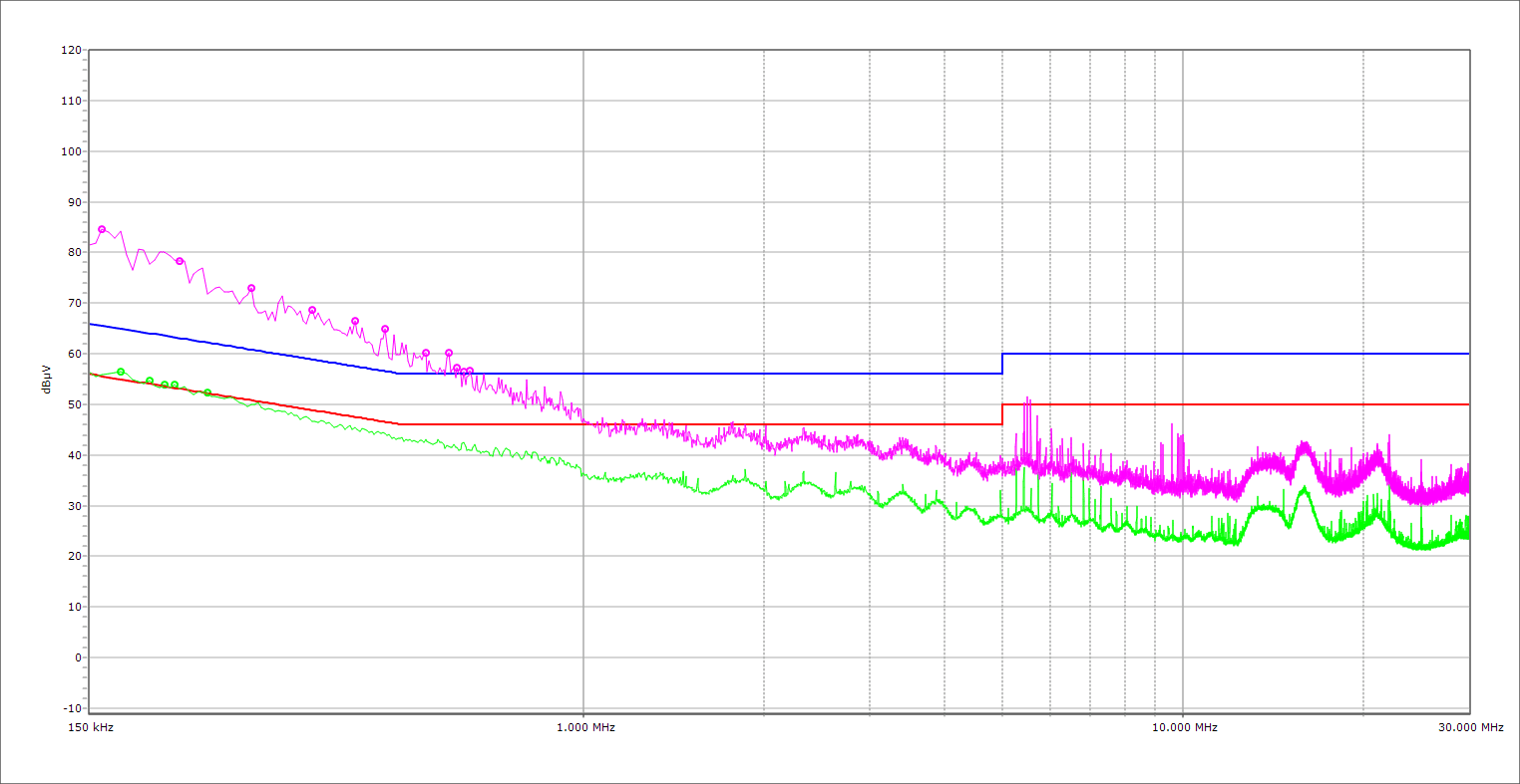 Please note that the ATX spec allows a 4 dB margin for conducted and radiated emissions. This means that if a PSU exceeds the limits but stays within the 4 dB margin, it meets the corresponding ATX spec requirement (8.1 Emissions).