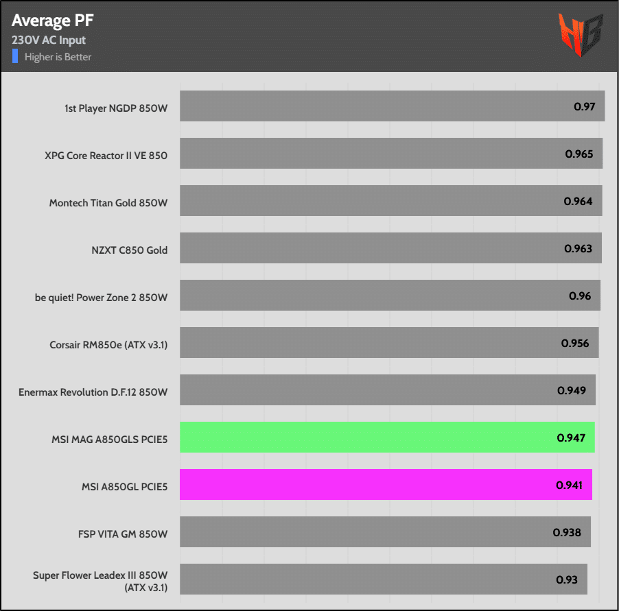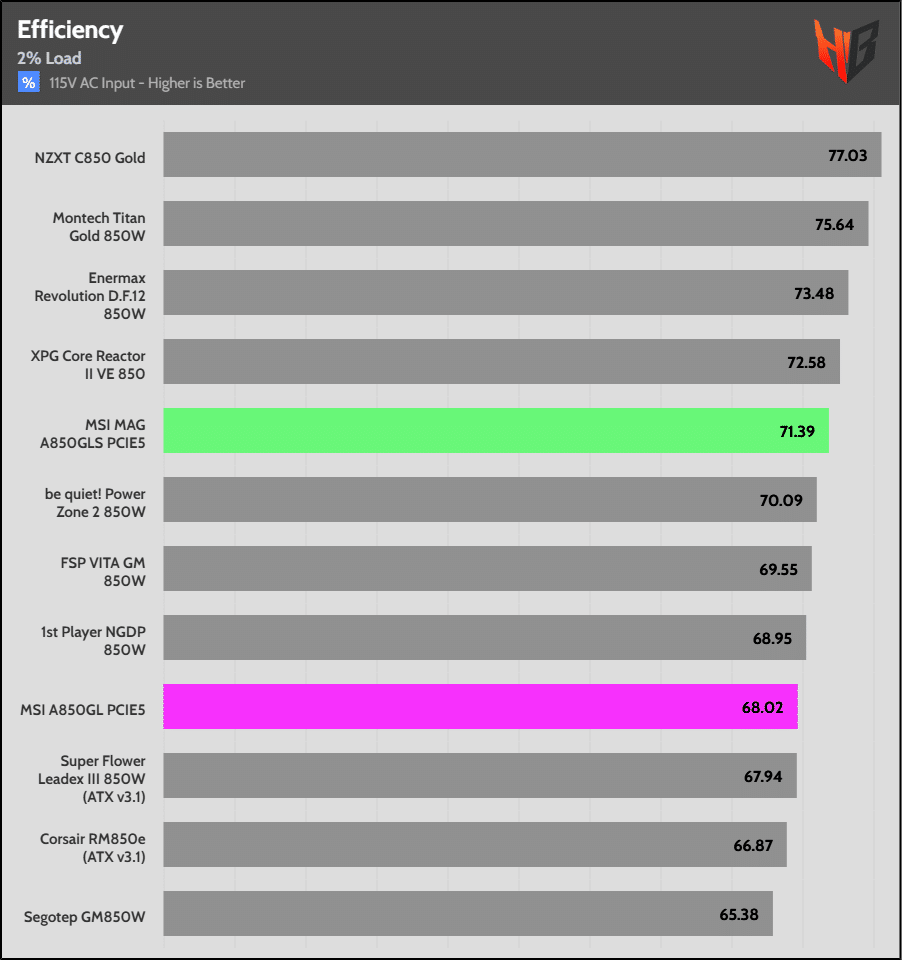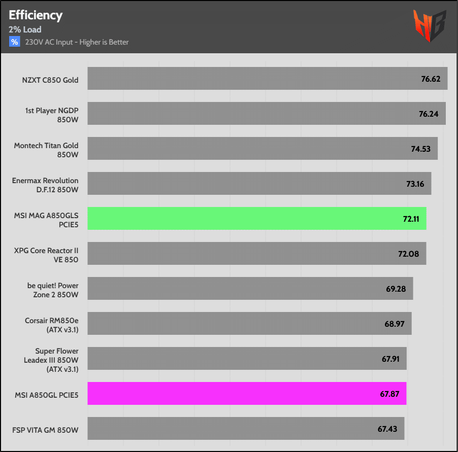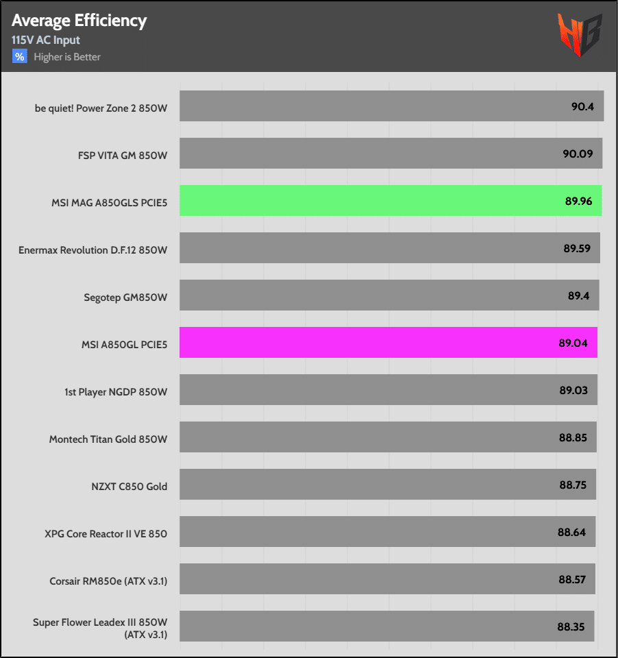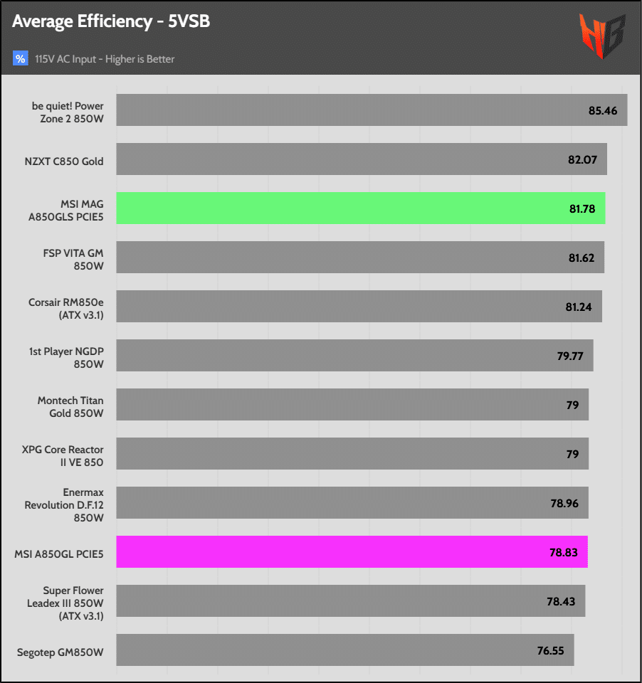 The average efficiency meets the Cybenetics Platinum criteria. Nonetheless, MSI decided to “downgrade” this badge to Gold.