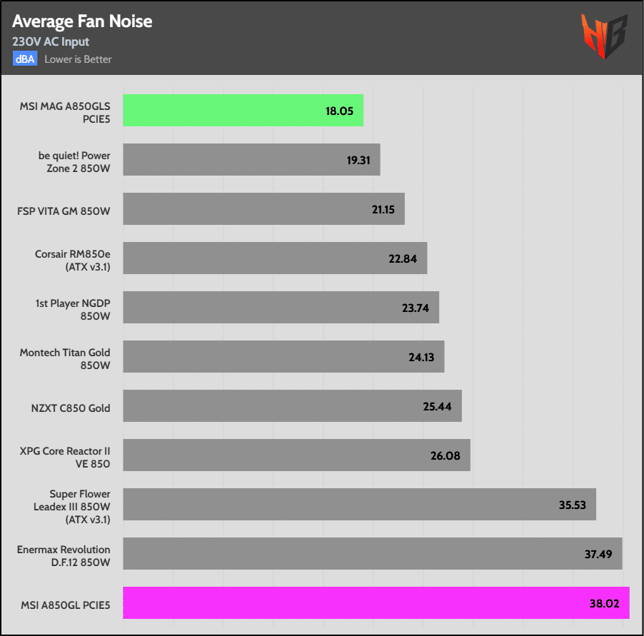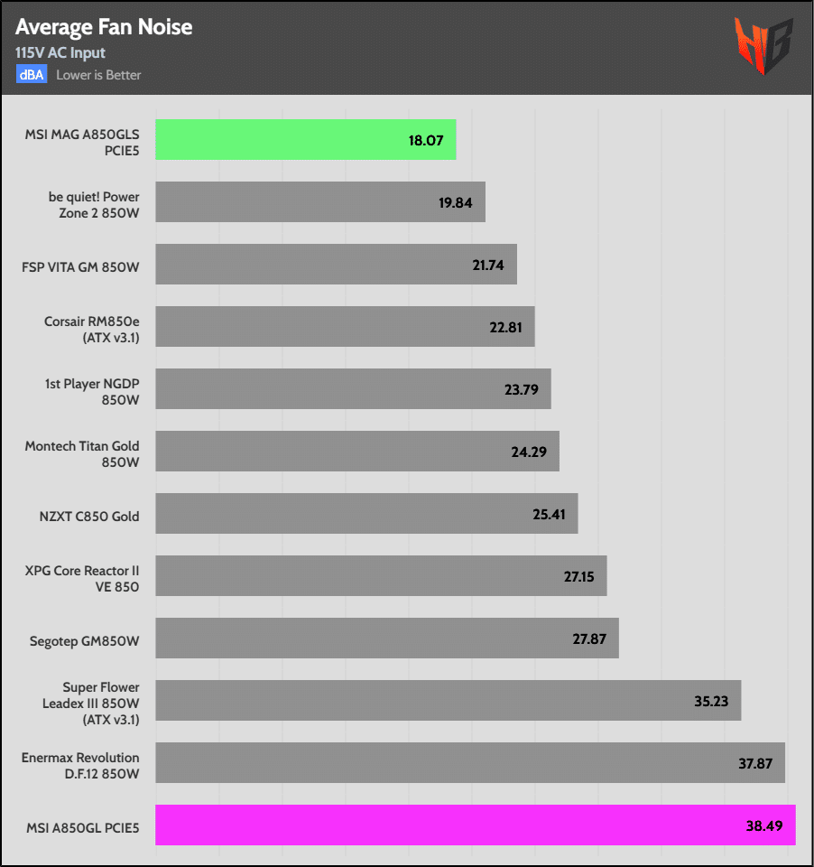 Look at the difference between the A850GLS and the A850GL models. It is chaotic! The 850GLS is among the quietest PSUs in the 850W category.