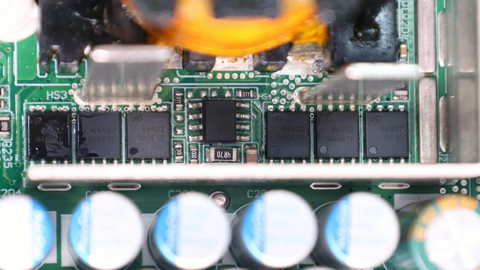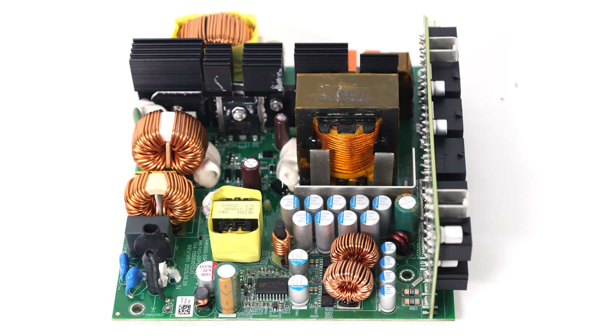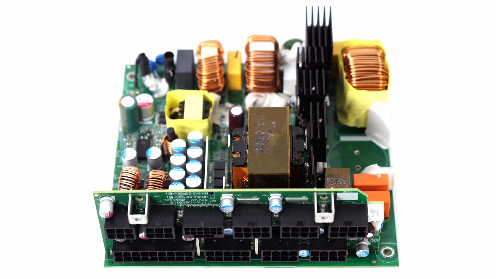 So far, Huntkey has not had any major presence outside China, for many years now, after its attempt to infiltrate the Western market under its own brand name failed. But with MSI now in its client list, things could change. The platform’s PCB appears to belong to a lower-capacity unit, as it is notably underpopulated with parts. On the other hand, airflow will be good, but the lack of large heatsinks on the secondary side will require increased airflow.