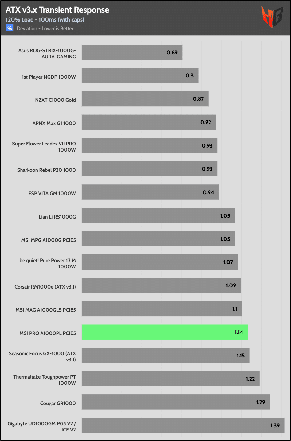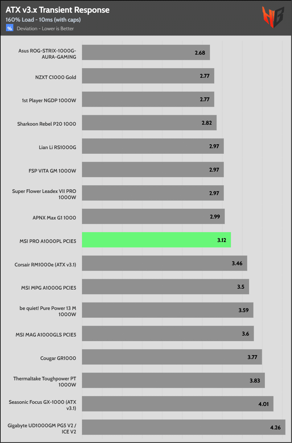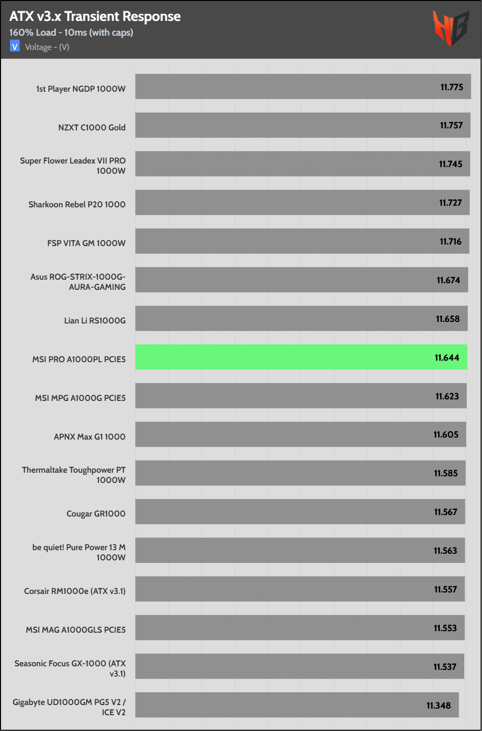 [Note] For PSUs without a 12+4 pin connector, the maximum applied load for the transient response tests is 150%, rather than 200%.The PSU passes all ATX v3.1 transient response tests.