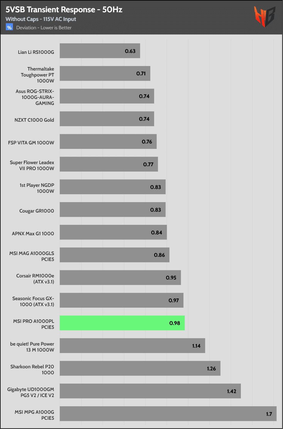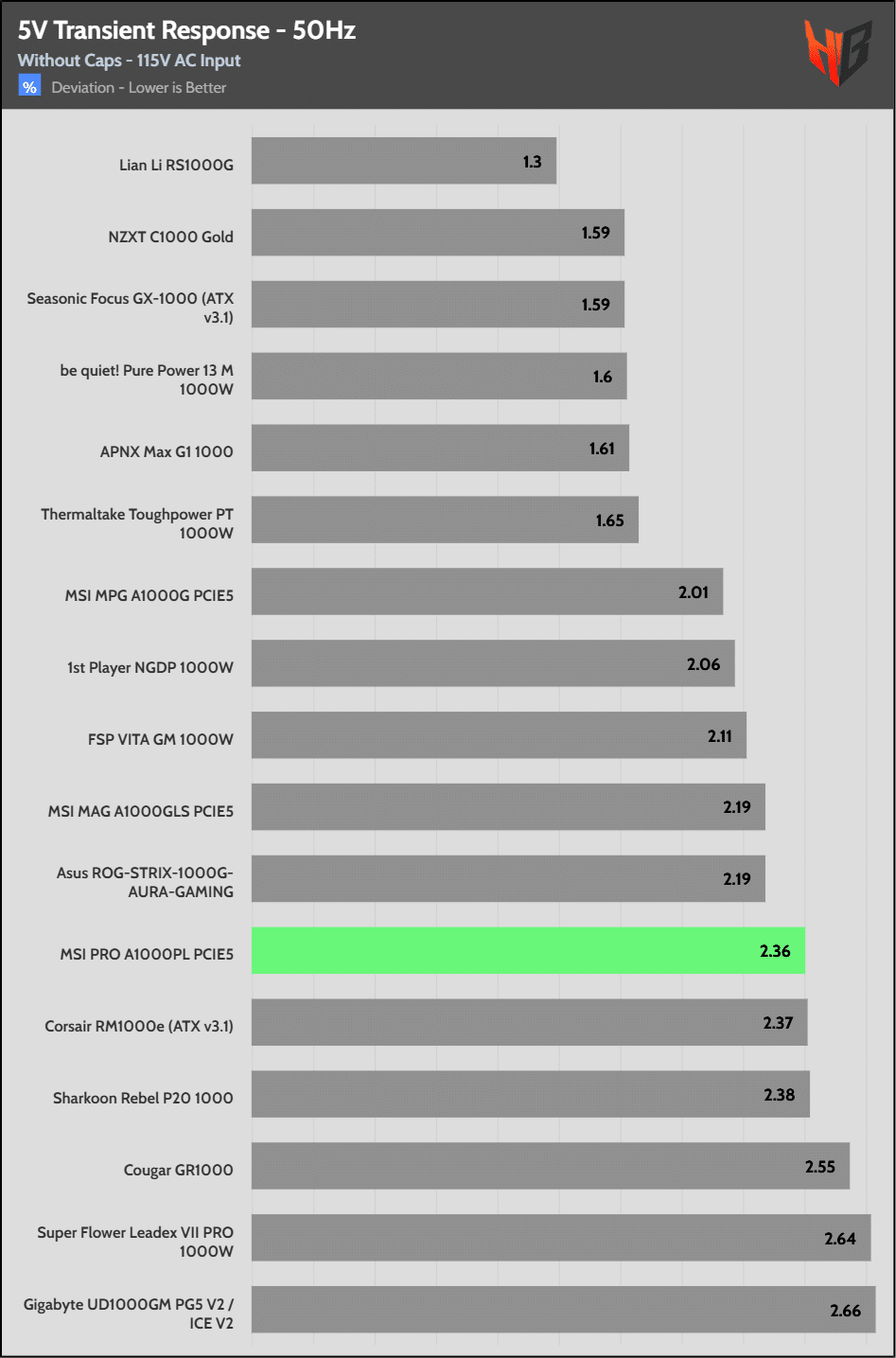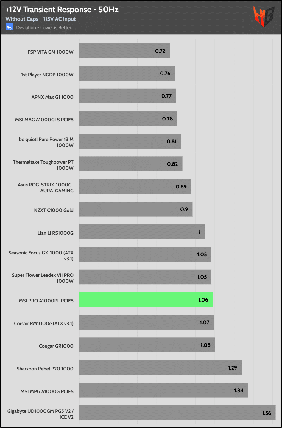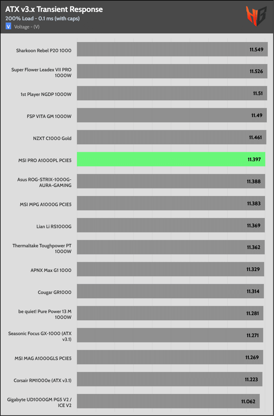 [Note] For PSUs without a 12+4 pin connector, the maximum applied load for the transient response tests is 150%, rather than 200%.The PSU passes all ATX v3.1 transient response tests.