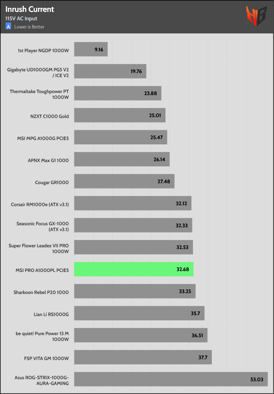 Inrush current in power supplies is the initial surge of current drawn when a PSU is first powered on, caused by the charging of capacitors and other components. It’s typically much higher than normal operating current and lasts briefly. A lower inrush current is preferable, as high surges can stress components, trip circuit breakers, or cause wear over time.