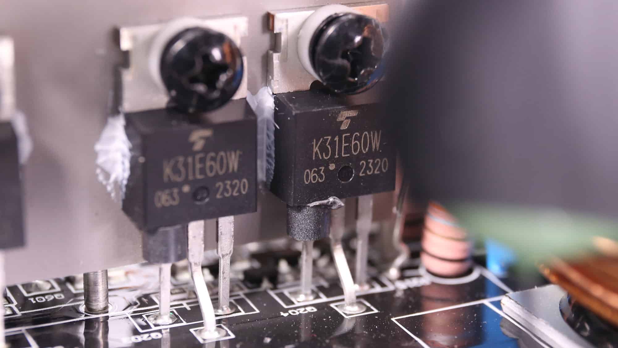 2x Toshiba TK31E60W (600V, 30.8A, Rds(on): 0.088Ohm)