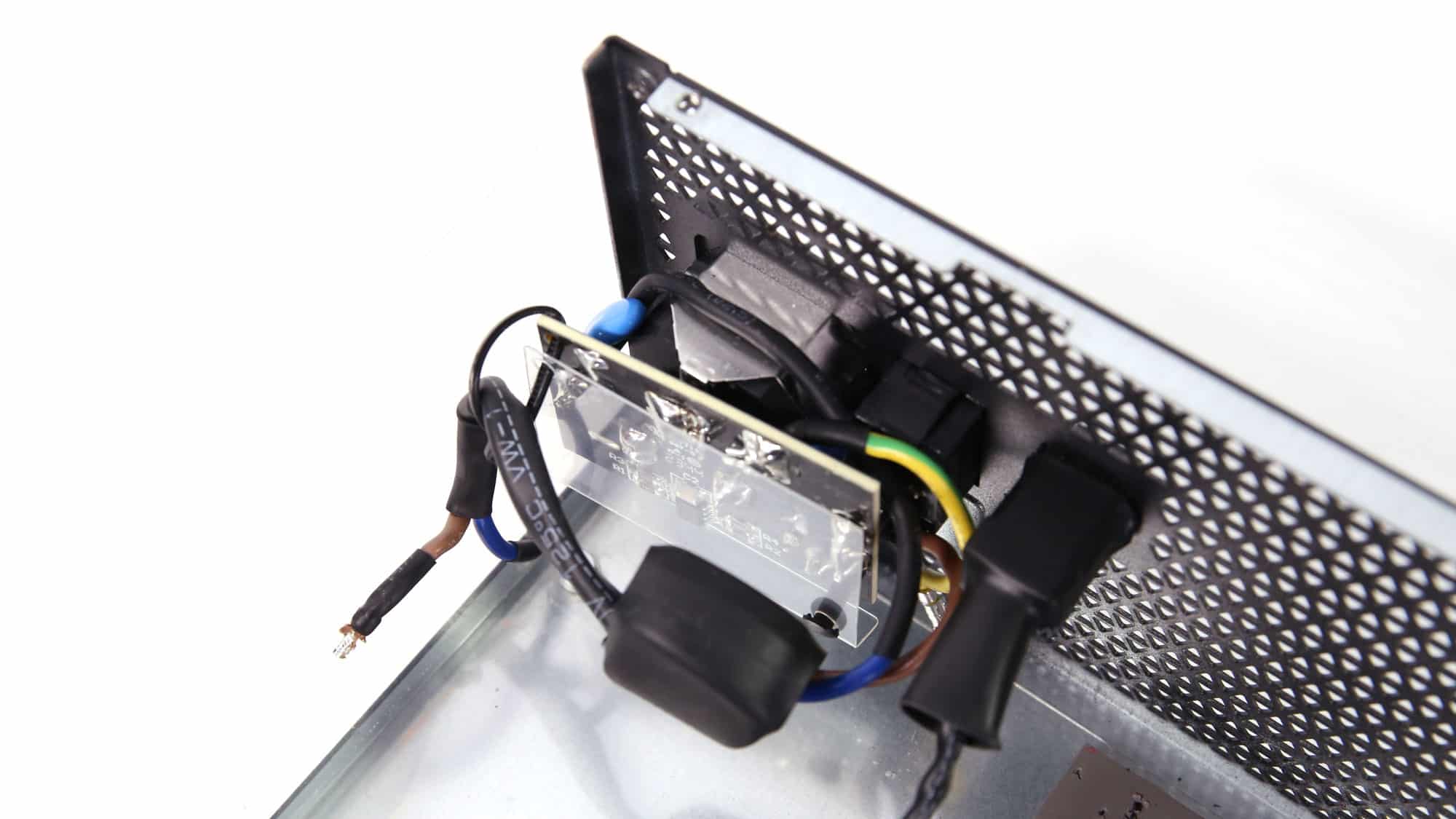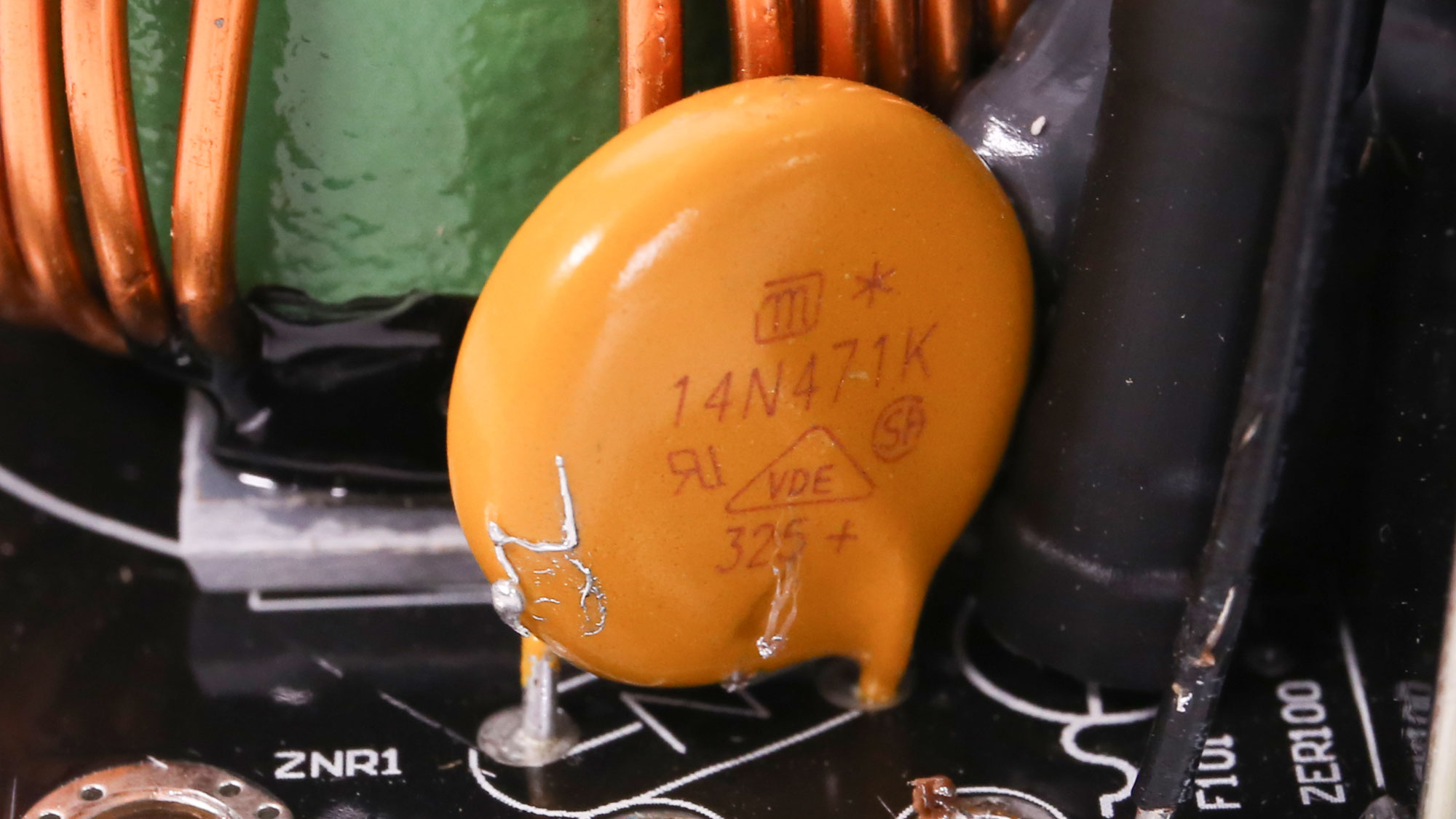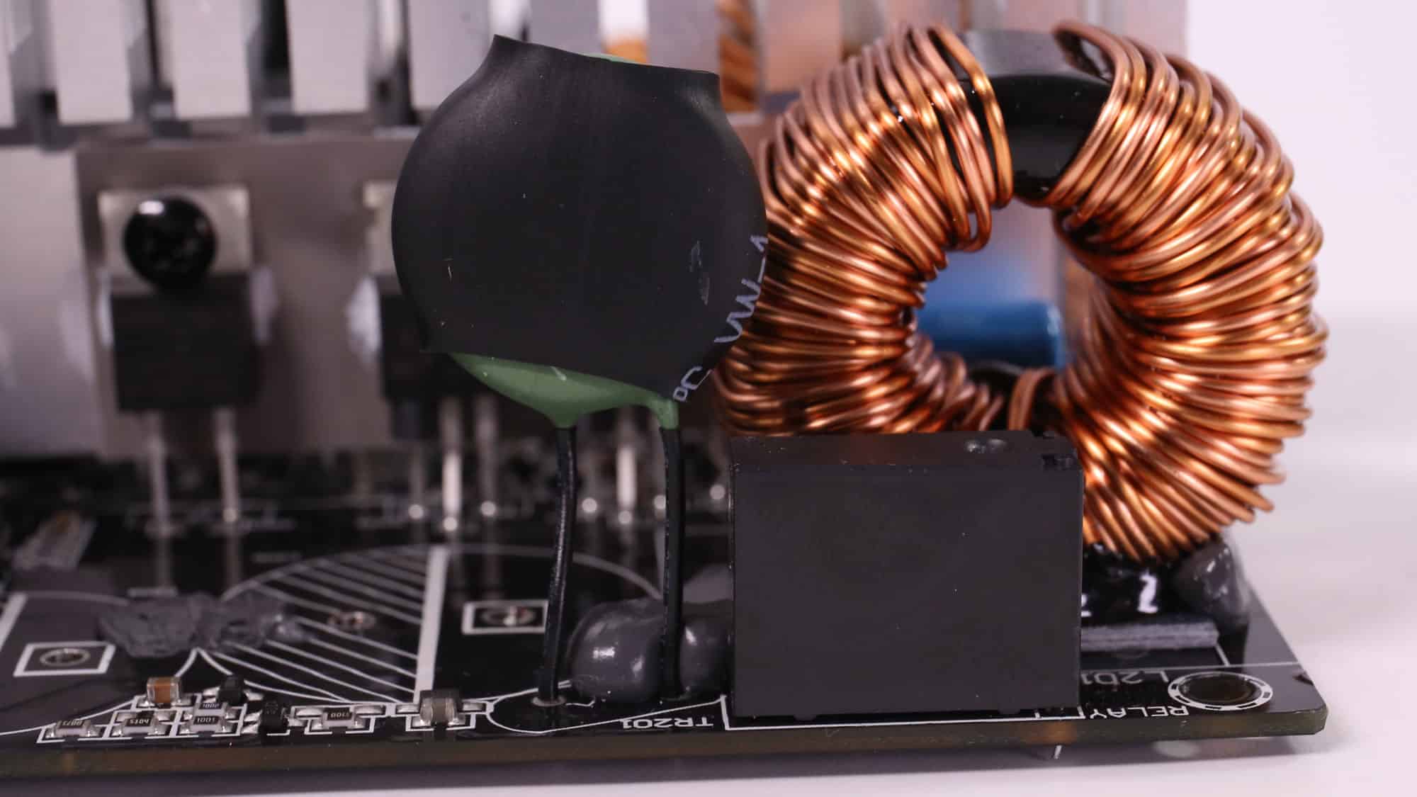 There is an MOV to protect from voltage surges and an NTC thermistor with a resistance of 5 ohms. Moreover, a bypass relay supports the NTC thermistor.