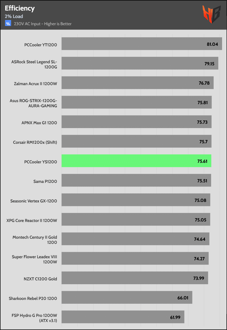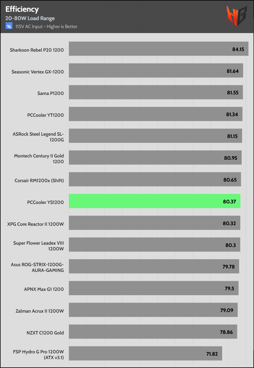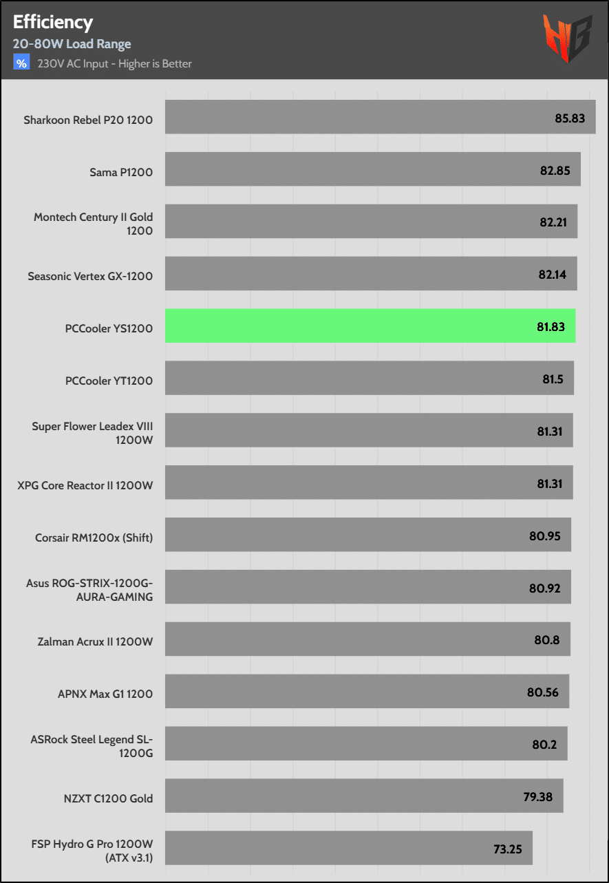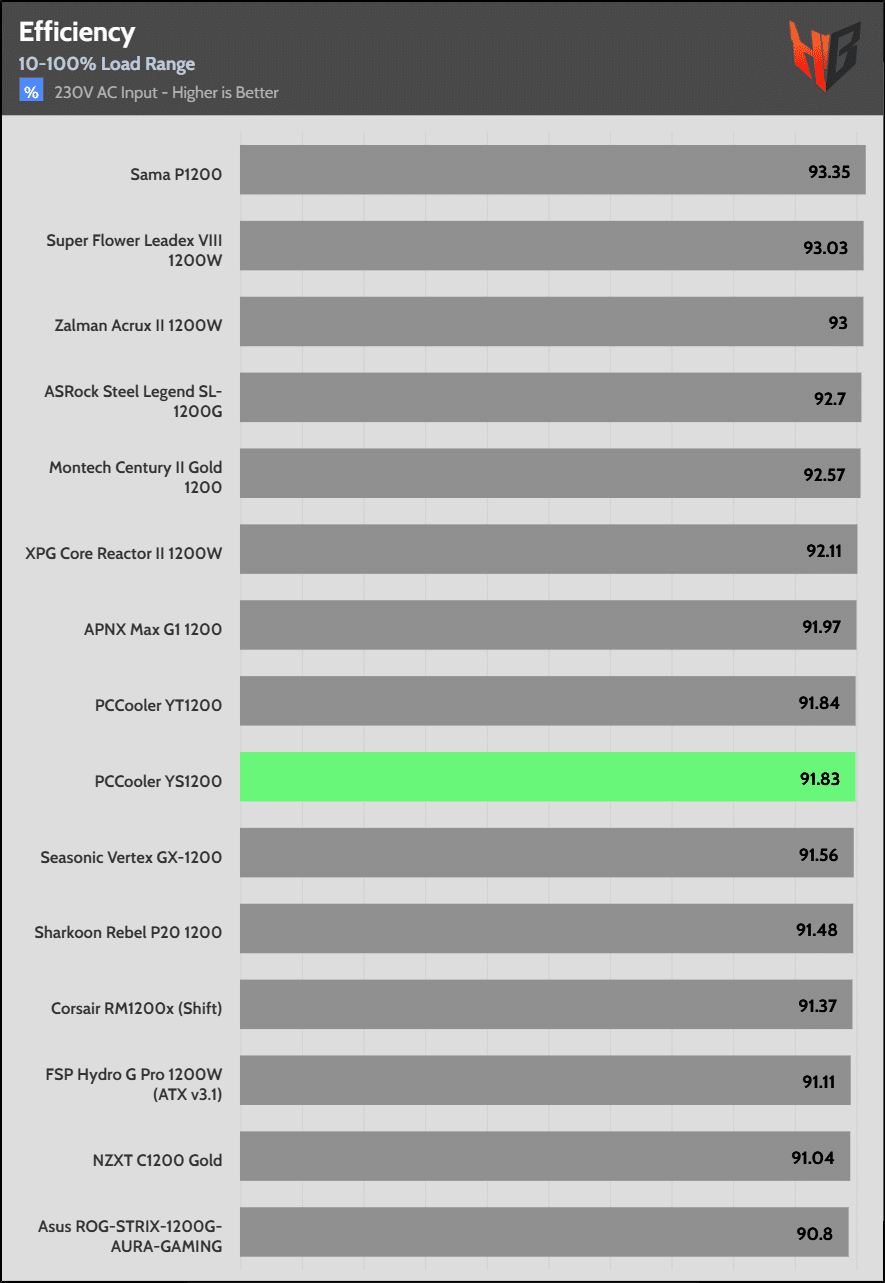 The average efficiency meets the Cybenetics Gold criteria at 115V and cleares the Platinum requirements at 230V.