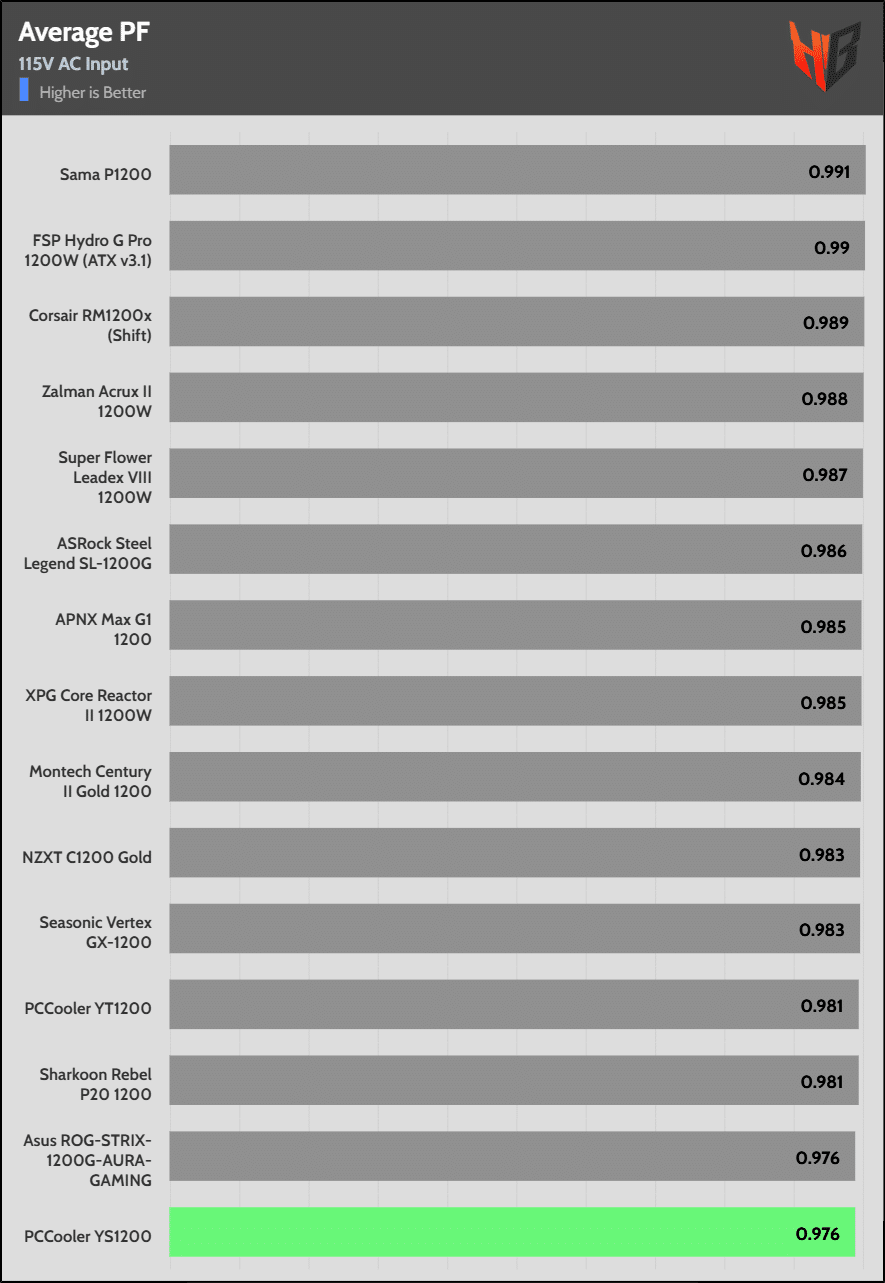 The APFC converter needs tuning for higher PF readings, especially at 115V.