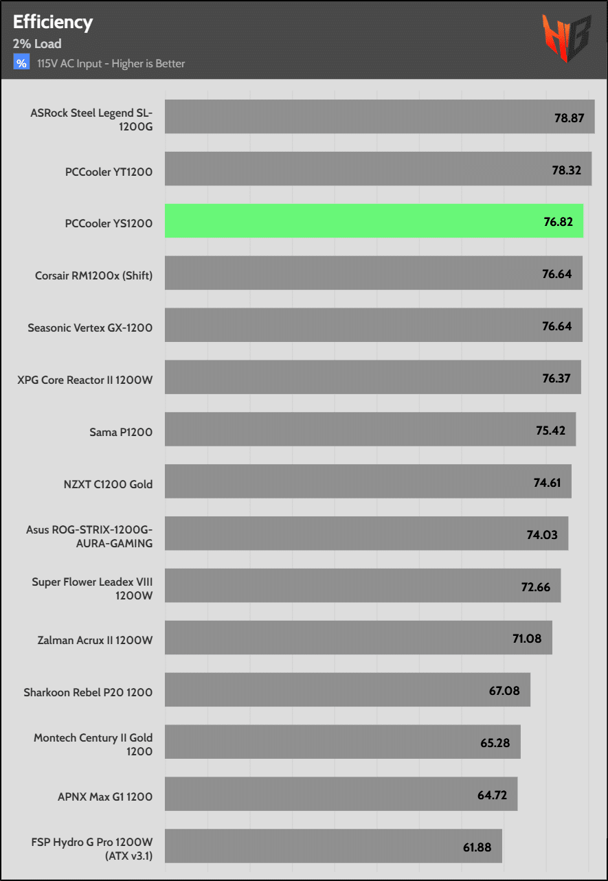 The PSU’s average efficiency with more than 1450 different load levels at 115V and 230V is depicted in the graphs below.