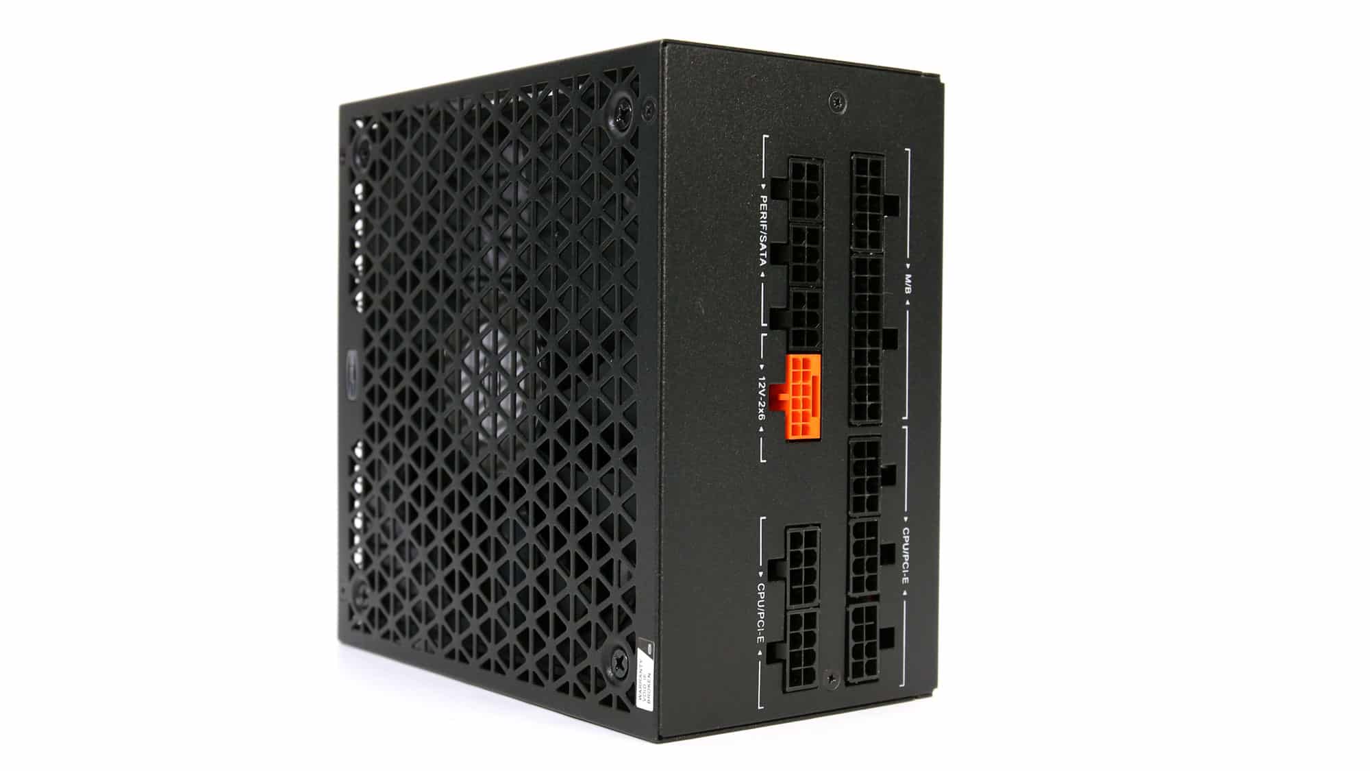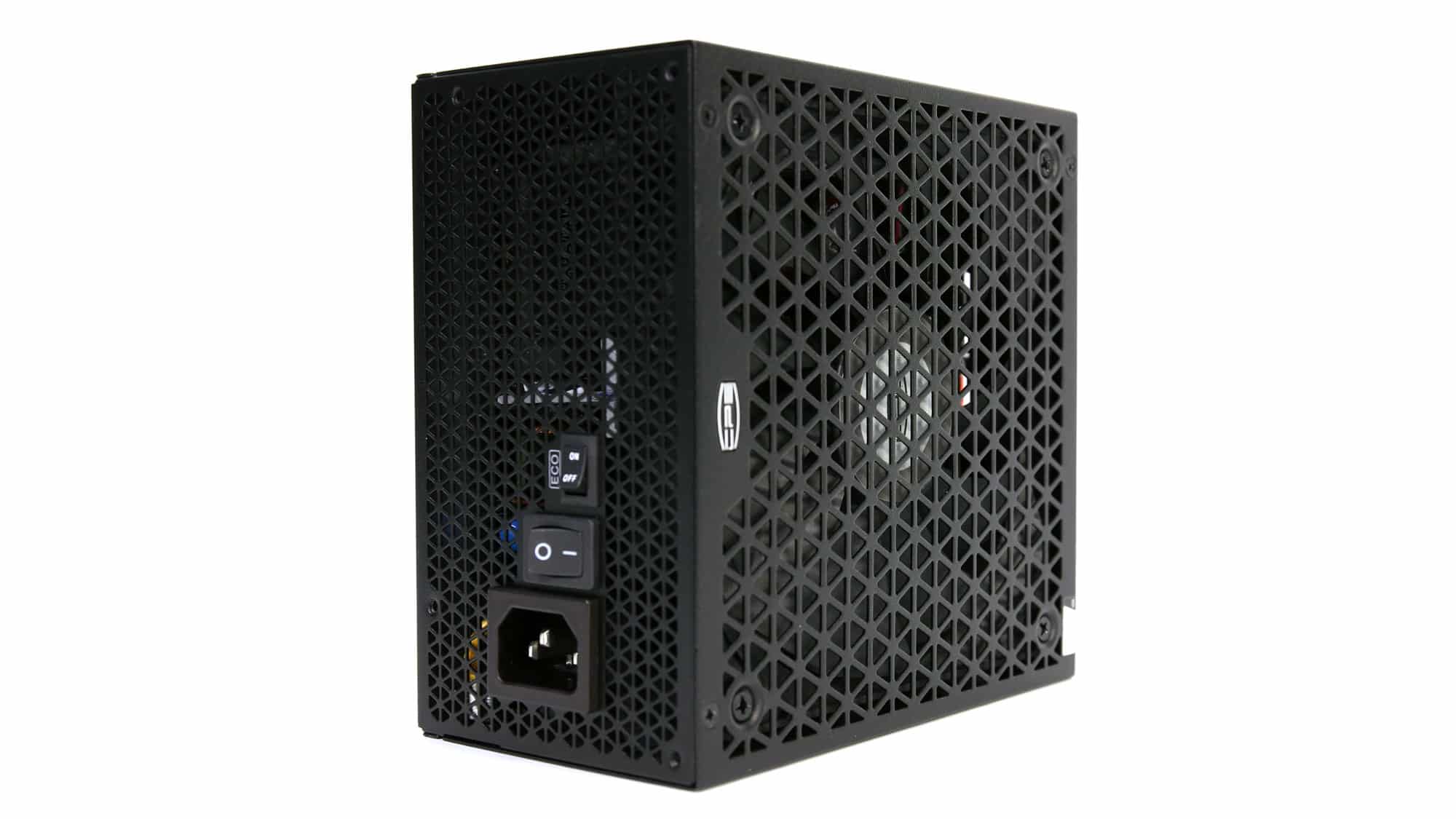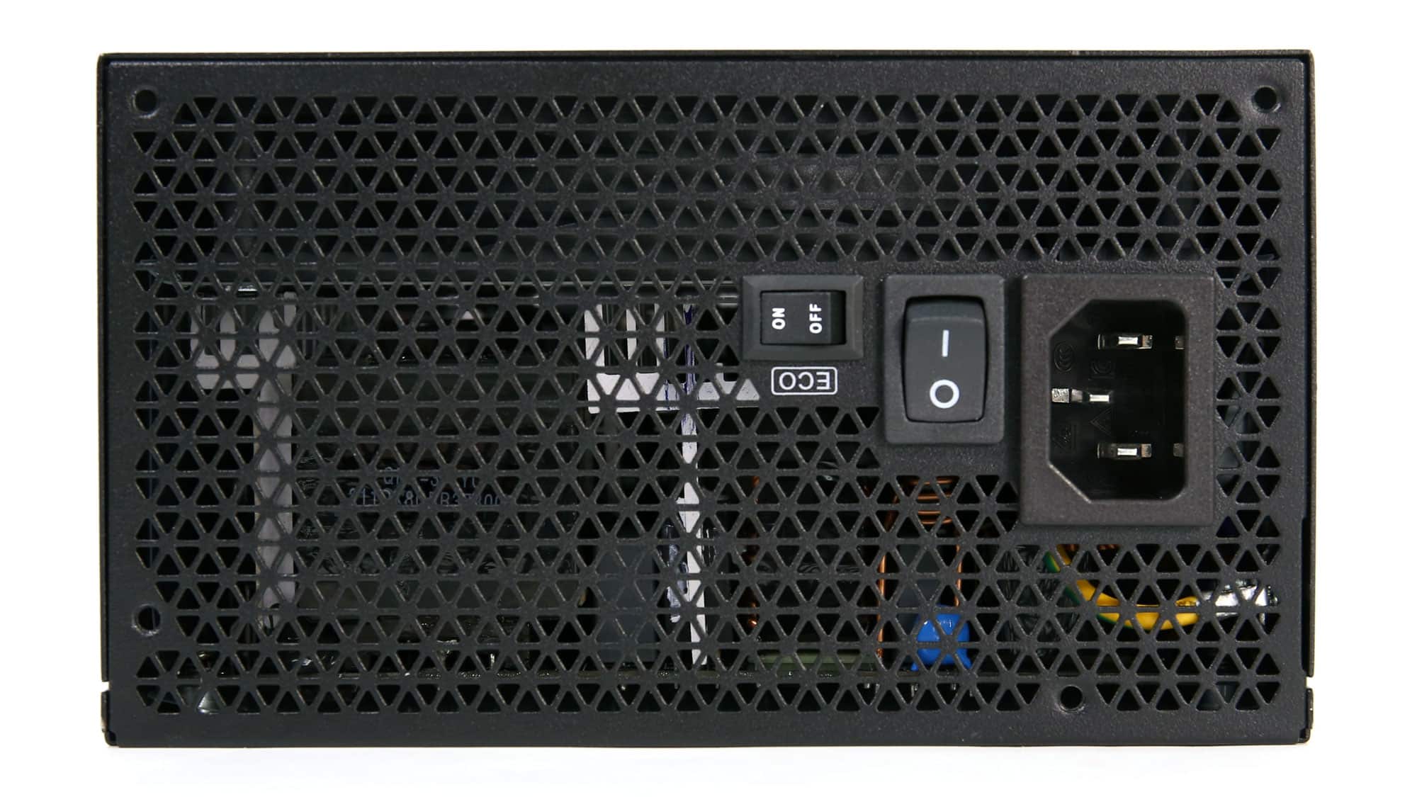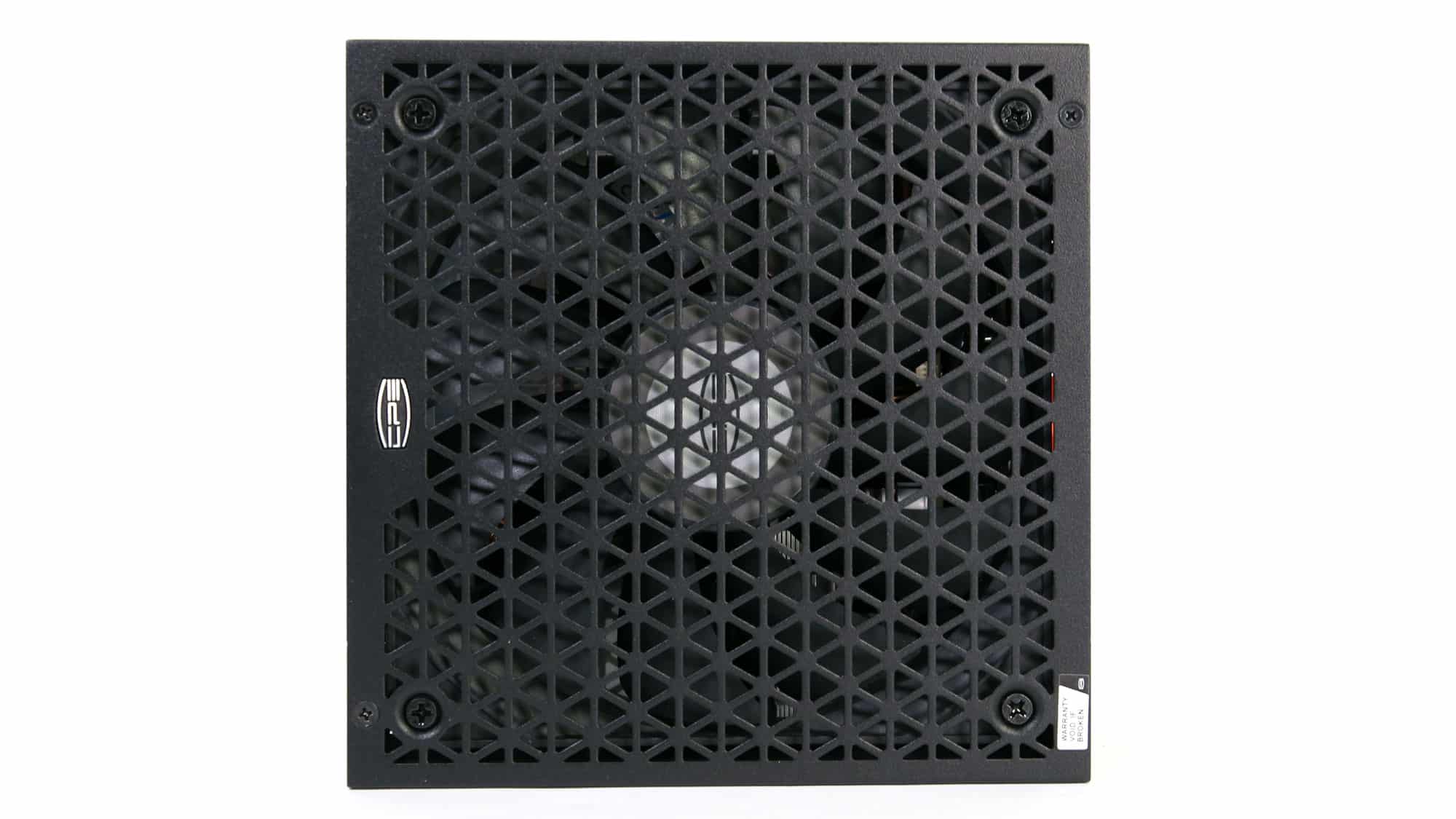 The exterior design stands out from the crowd due to the triangle perforations of the fan’s grille. On the front side, for the PSU’s exhaust, the same triangle-style perforations are used. On the same side, besides the AC receptacle and the power switch, you will also find a smaller switch for toggling the fan’s passive operation on or off.