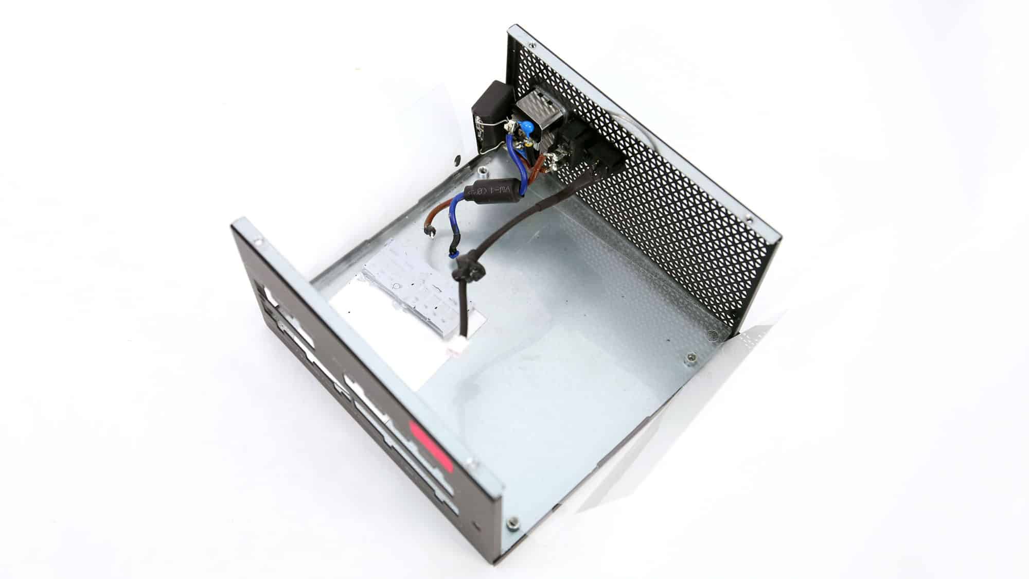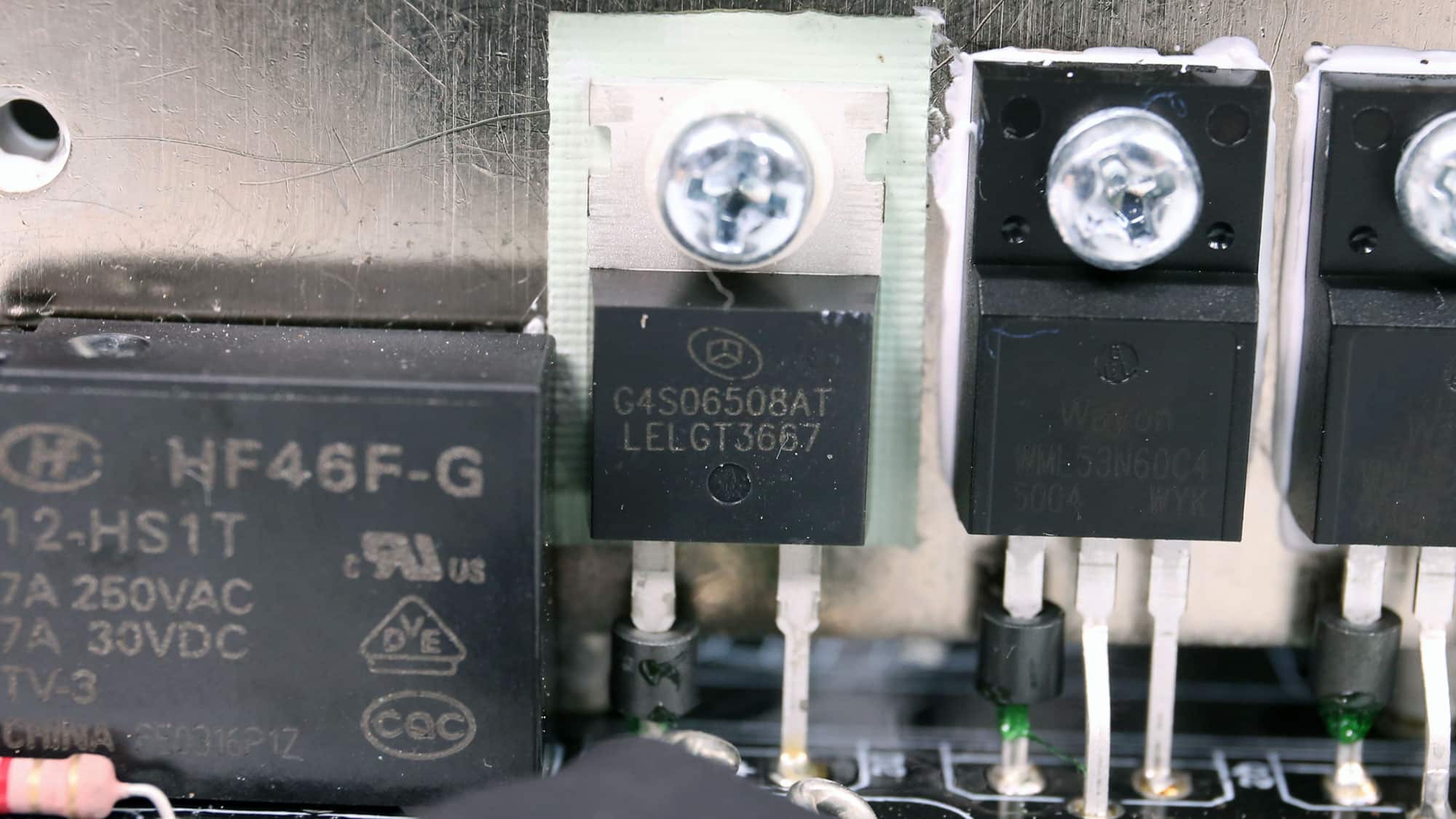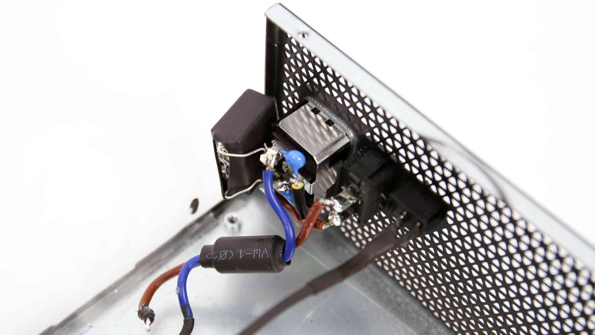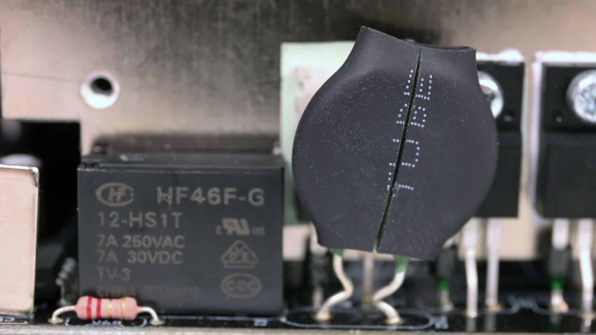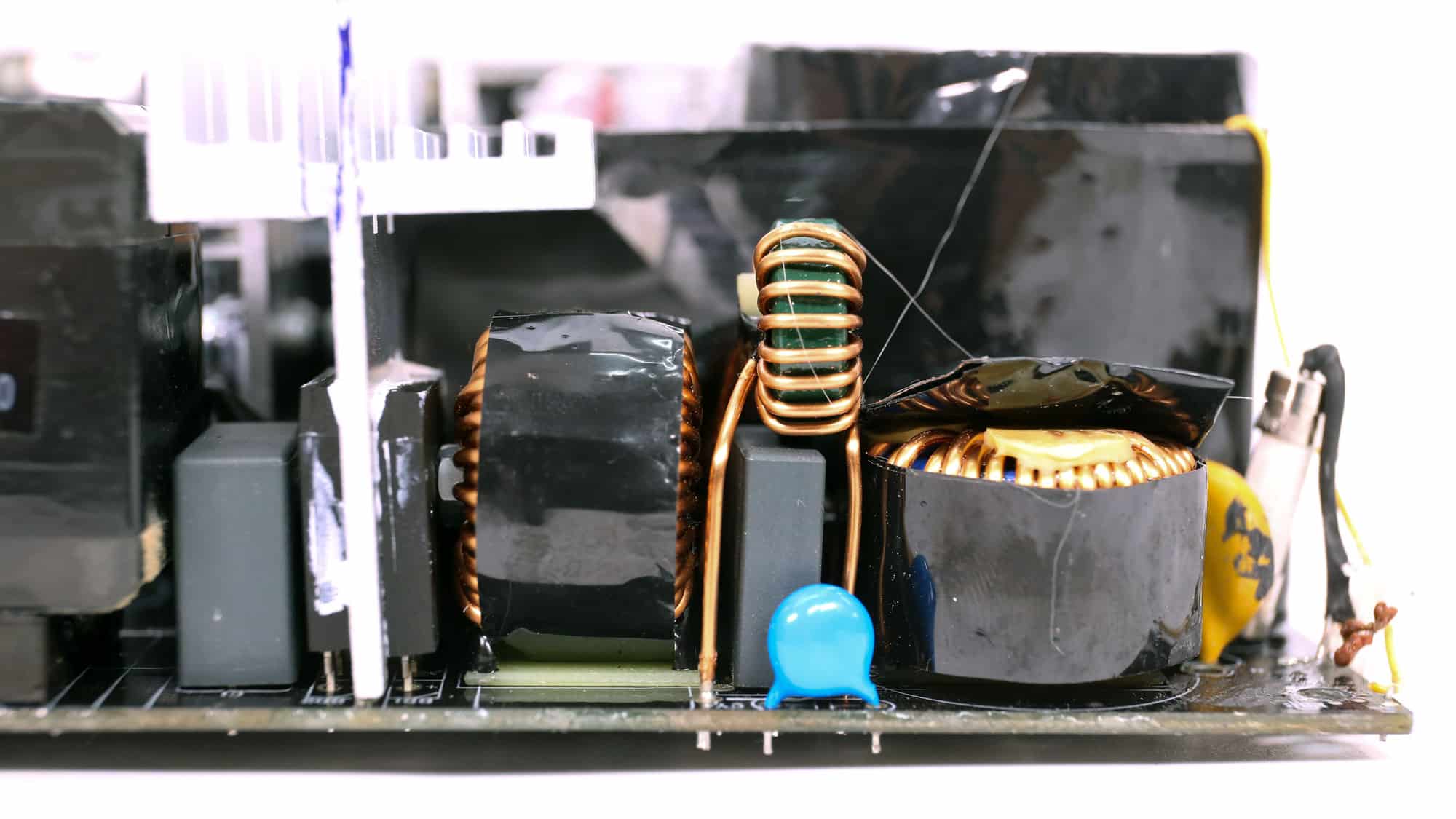 There is an MOV to protect from voltage surges and an NTC thermistor with a resistance of 5 ohms. Moreover, a bypass relay supports the NTC thermistor.