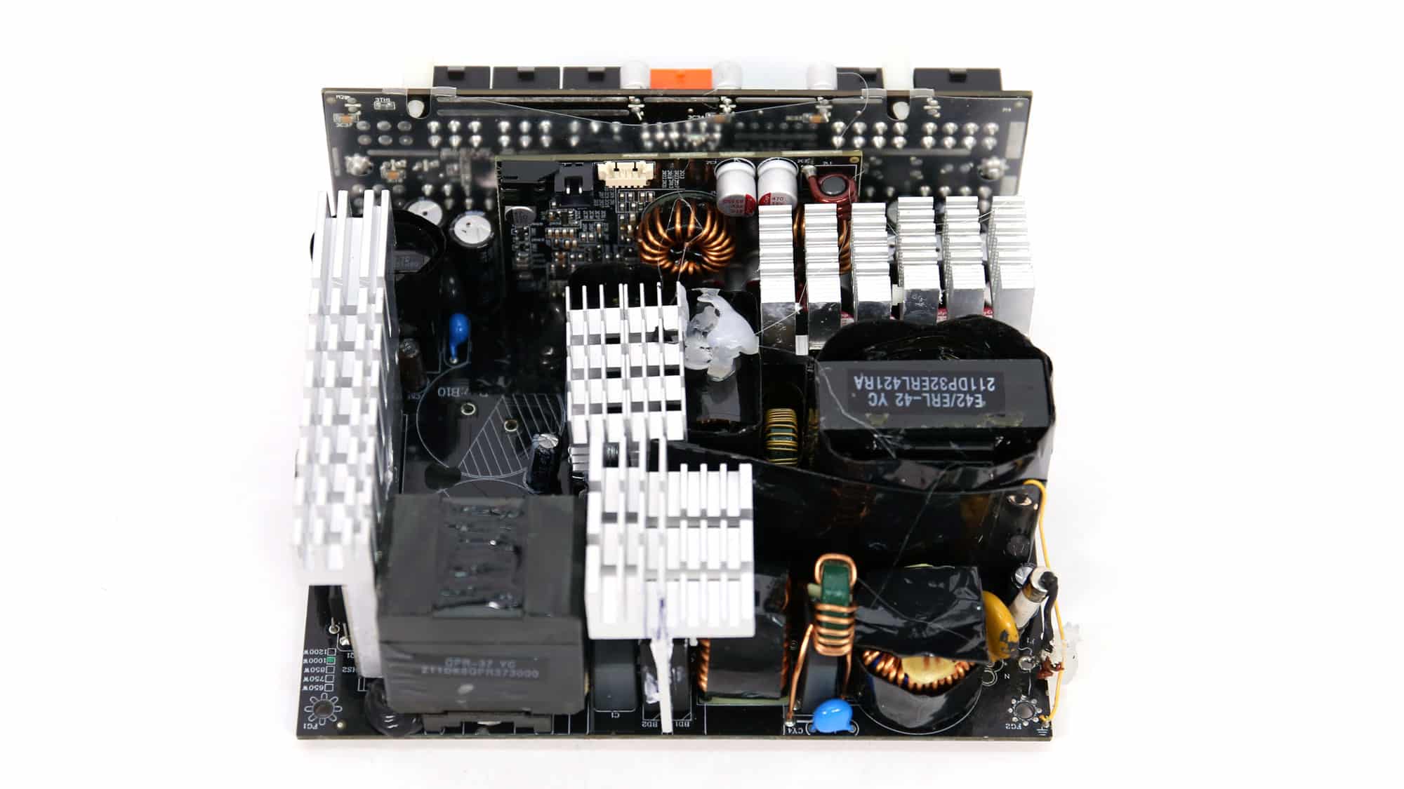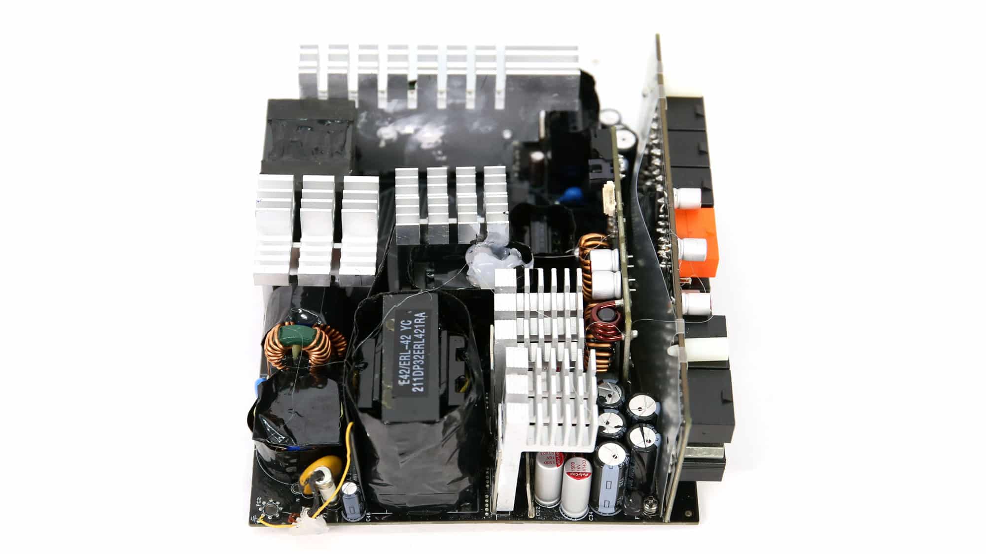 Andyson provides the platform, utilizing a contemporary design with a full-bridge topology on the primary side, along with an LLC resonant converter for reduced energy losses. On the secondary side, eight Ping Wei FETs regulate the 12V rail, which feeds a pair of DC-DC converters that generate the minor rails. The parts used are of good quality, especially the passive ones; however, this is not the case for the soldering quality, which is terrible, most likely because I received a pre-production sample. That said, the Sharkoon Rebel P20, which uses the same platform, also has mediocre soldering quality, with several messy soldering jobs on the PCB’s backside, and a mediocre PCB finish. Most likely, the not-good-looking soldering jobs won’t notably affect performance and reliability as long as they are not cold joints; it is more of an aesthetic issue for us, picky reviewers.