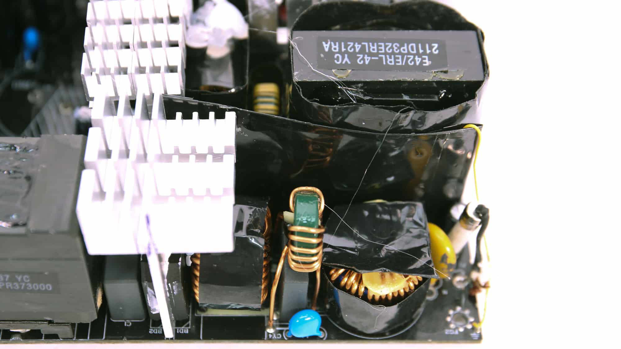 The PSU’s main transformer. One of its main functions is to isolate the primary and secondary sides electrically.