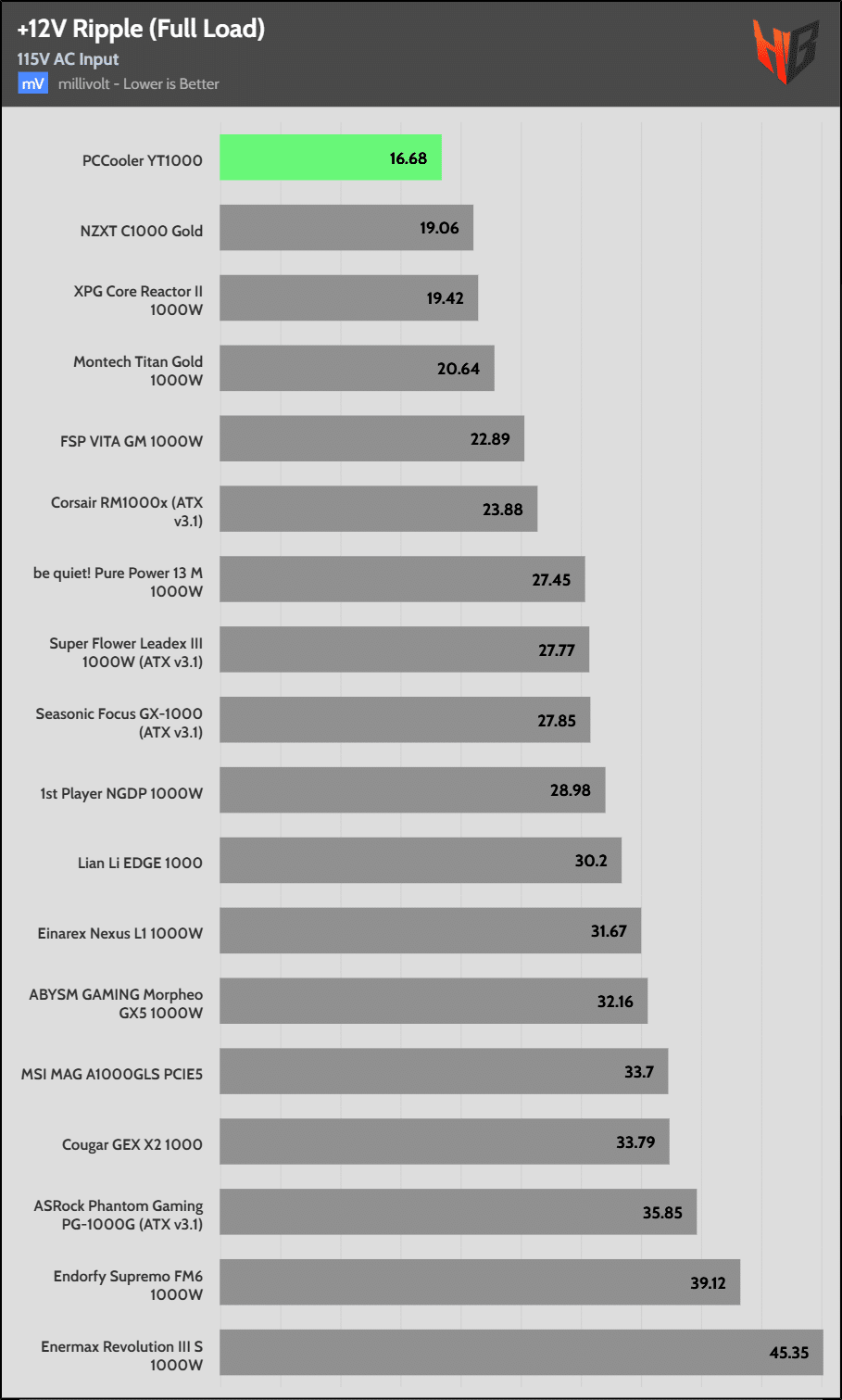 100% Load | 16.7 mV | 12.0 mV | 15.6 mV | 17.7 mV | Pass |