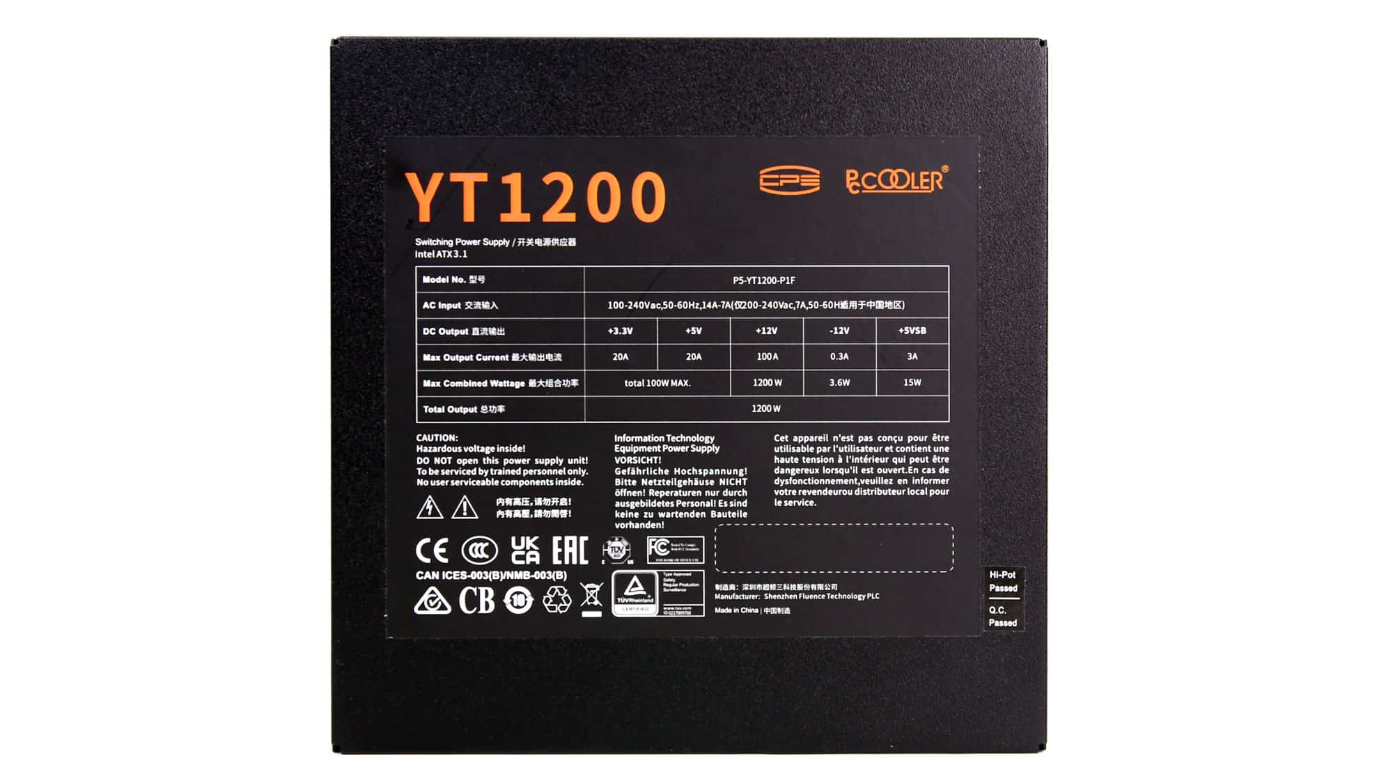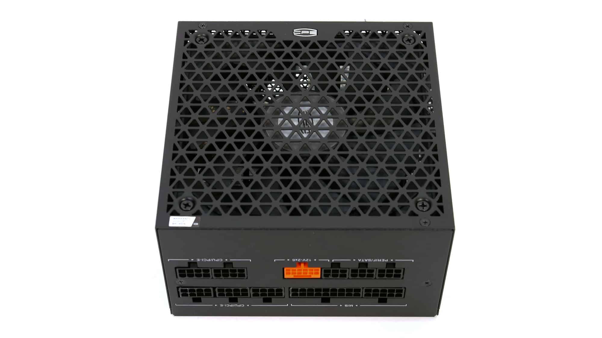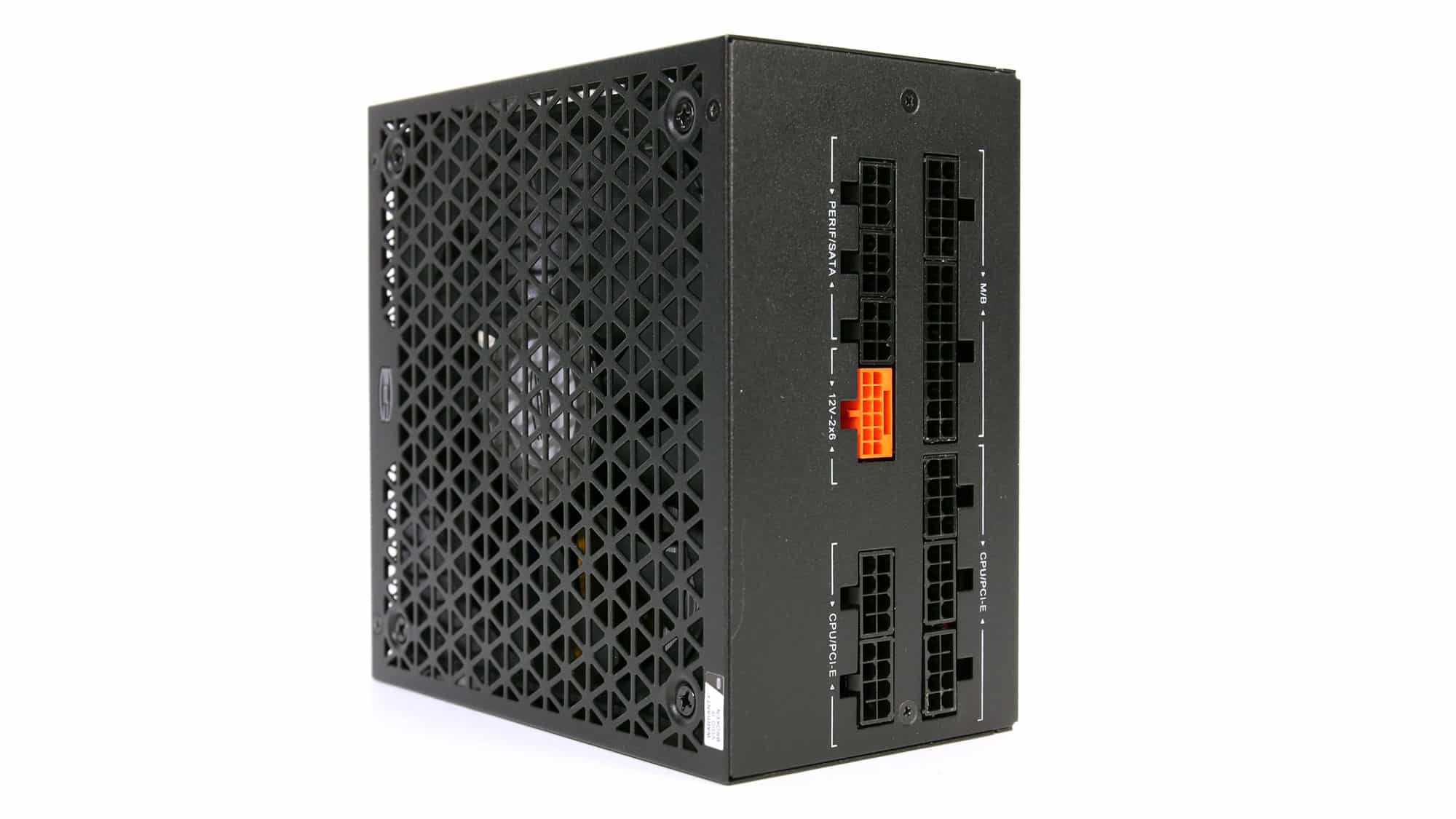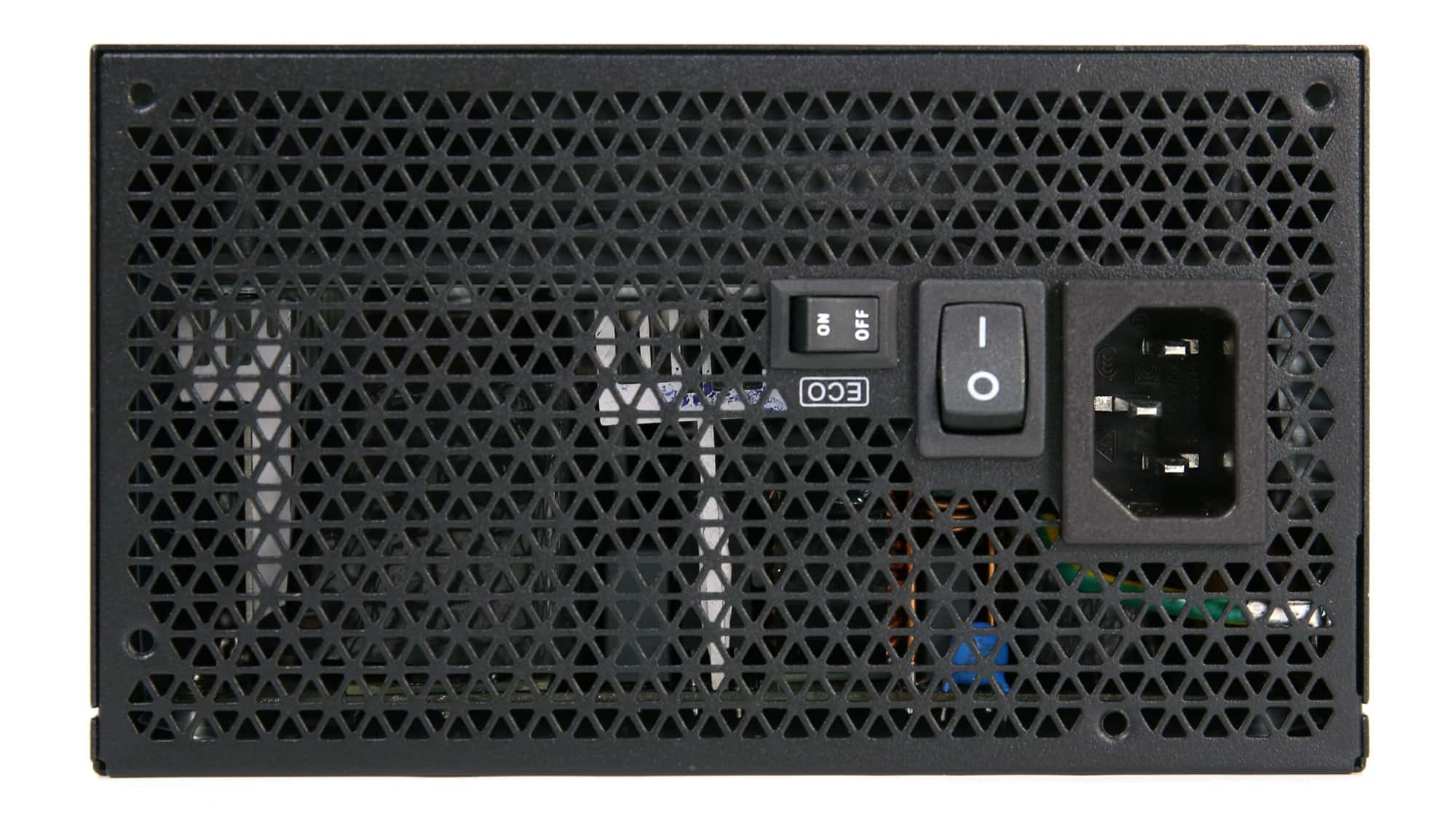 The exterior design stands out from the crowd due to the triangle perforations of the fan’s grille. On the front side, for the PSU’s exhaust, the same triangle-style perforations are used. On the same side, besides the AC receptacle and the power switch, you will also find a smaller switch for toggling the fan’s passive operation on or off.