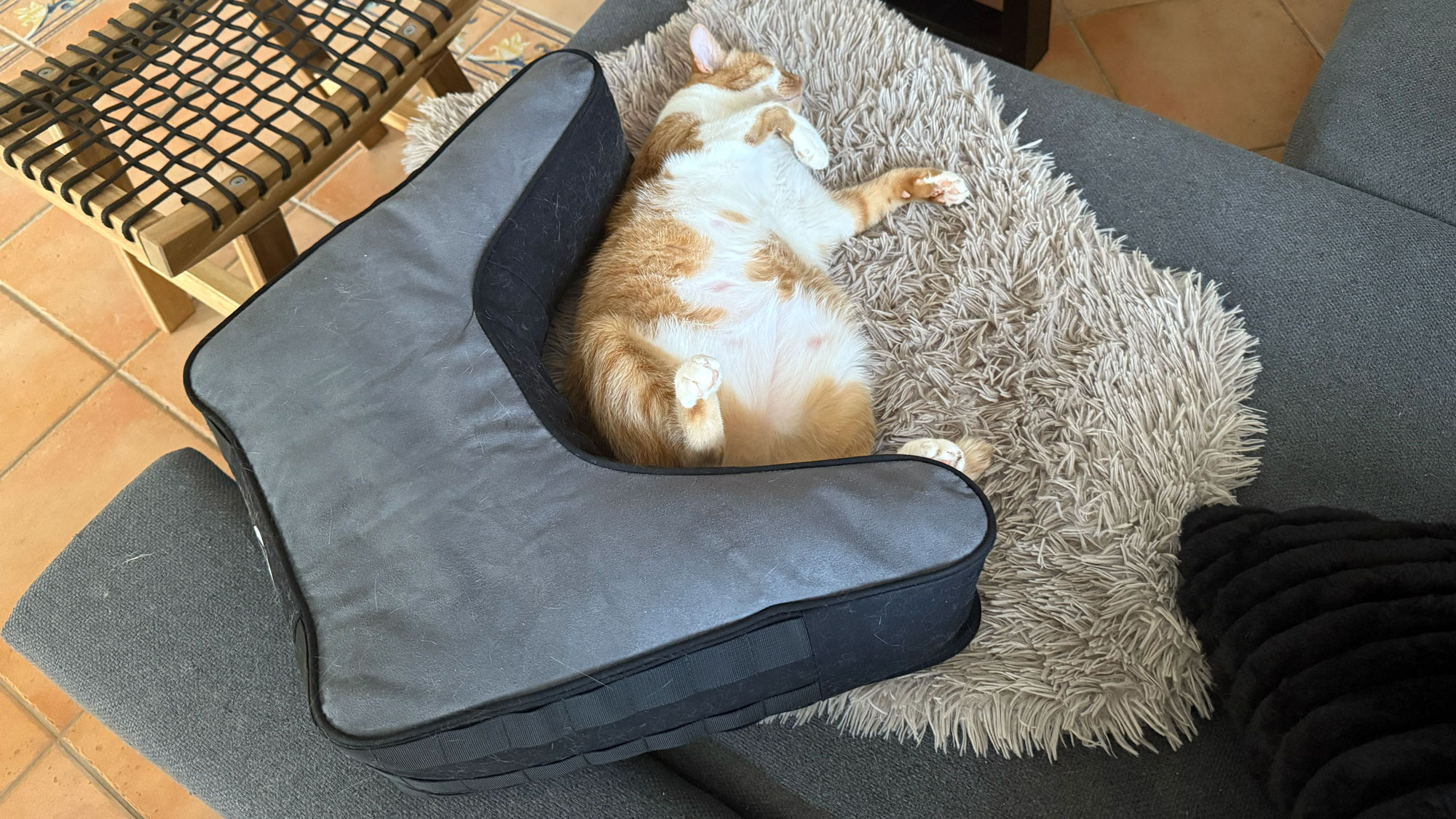 I received early samples, so photos of the box are not available at this time. This means I can use any photo I want here. Here is one of my cats, Tom, relaxing after a hard day’s work!