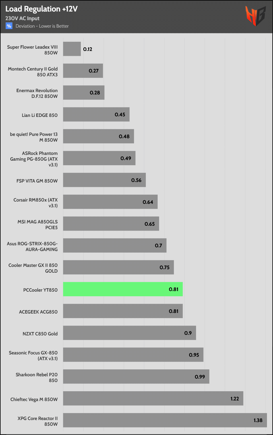 Load regulation is within 1% on all primary rails, so all is good here.