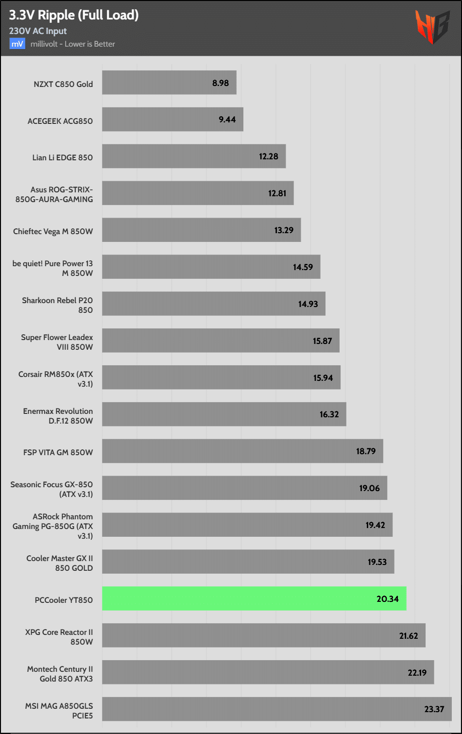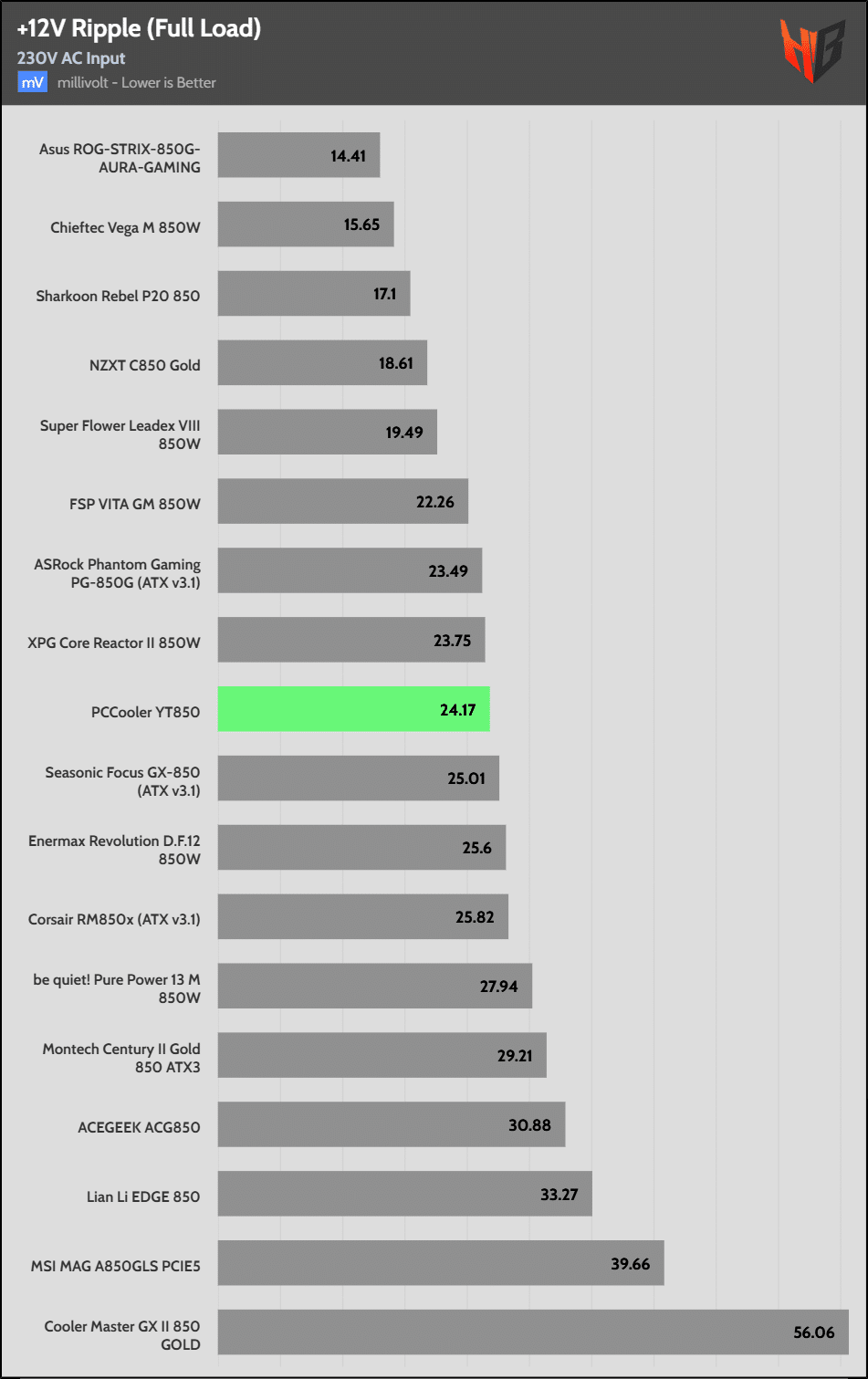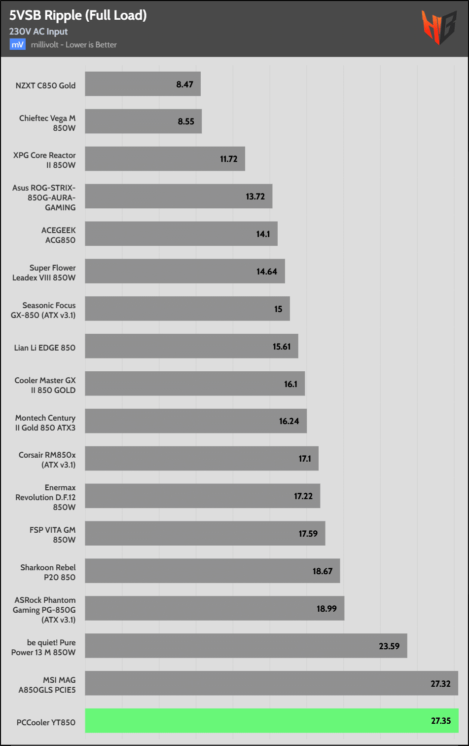 50% Load | 16.8 mV | 18.4 mV | 13.9 mV | 23.6 mV | Pass |