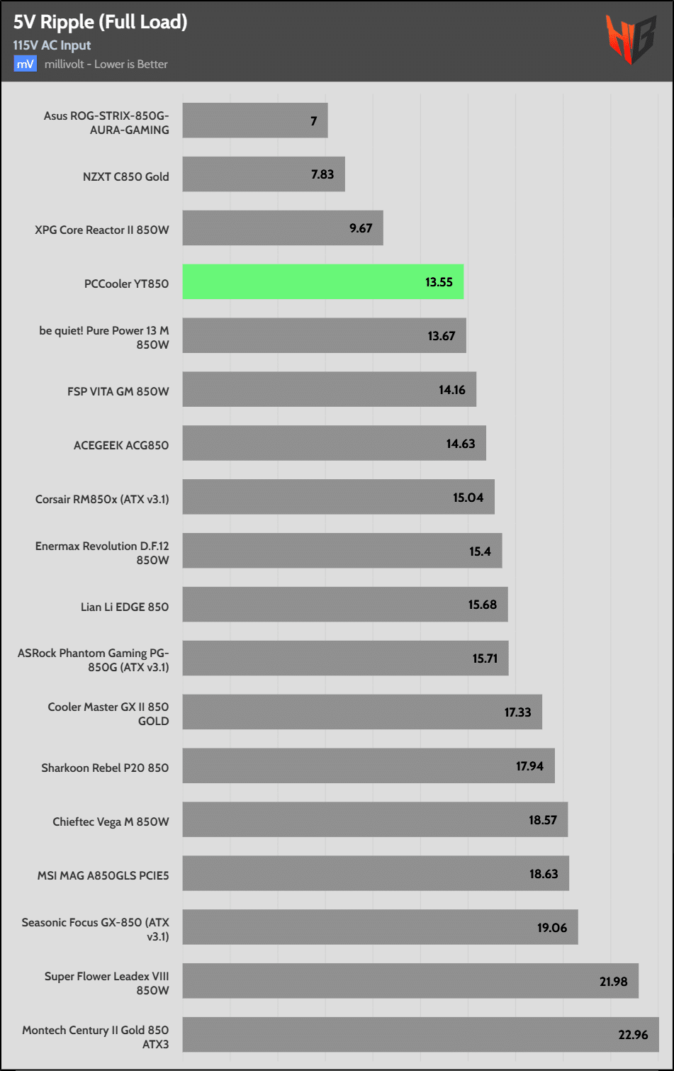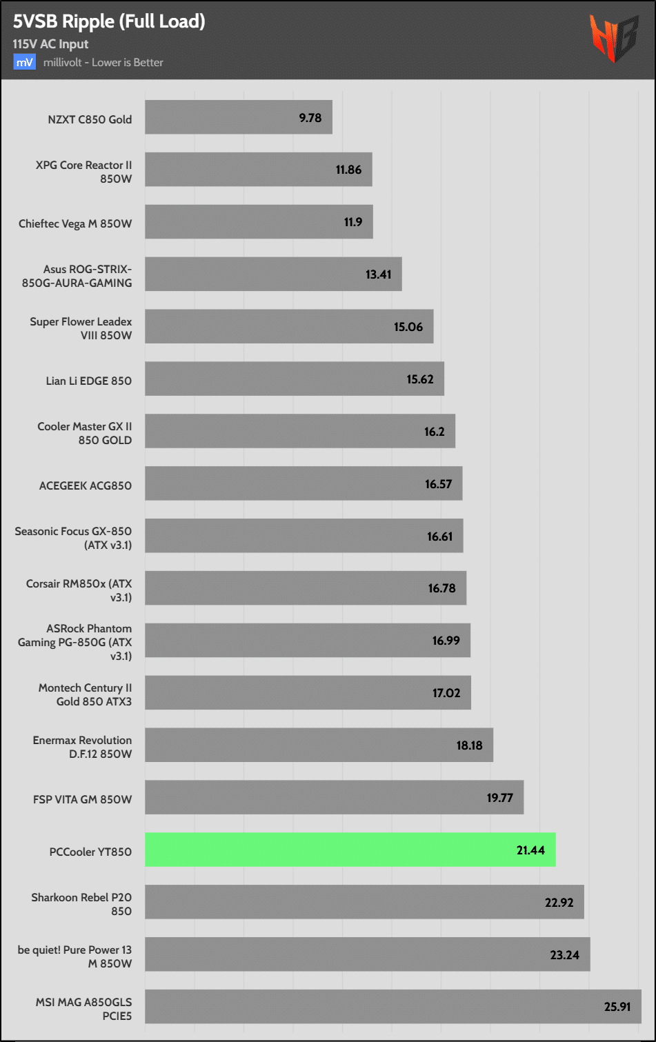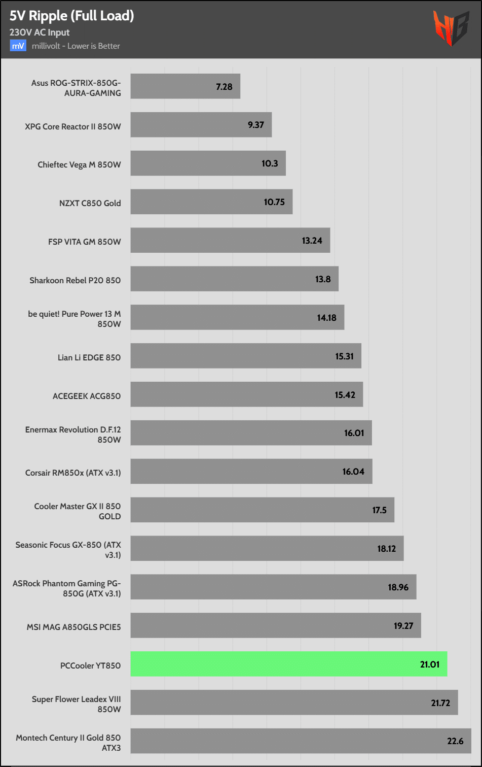 50% Load | 16.8 mV | 18.4 mV | 13.9 mV | 23.6 mV | Pass |
