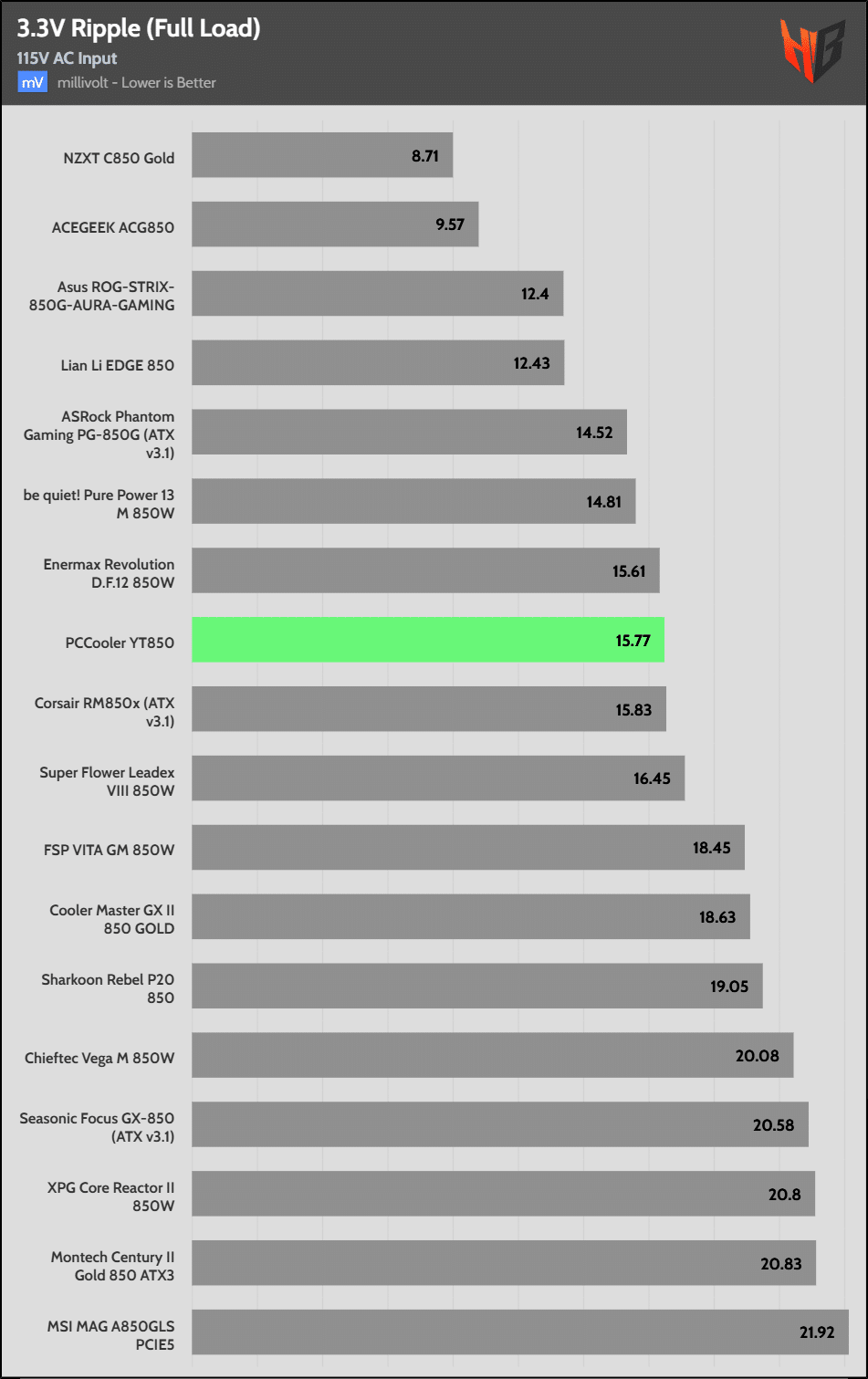 80% Load | 13.3 mV | 11.5 mV | 13.4 mV | 19.4 mV | Pass |