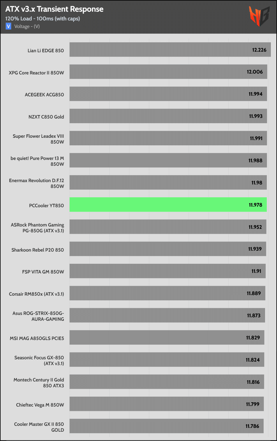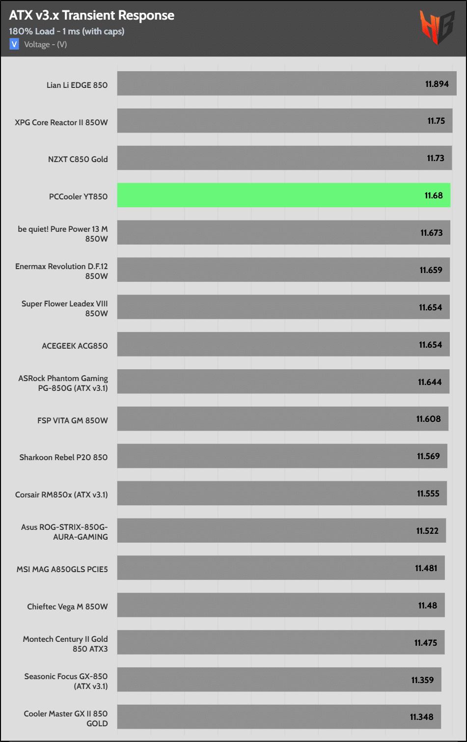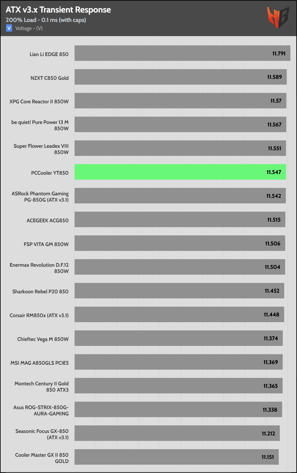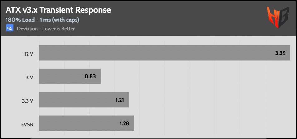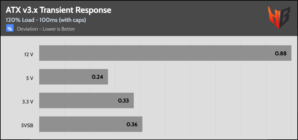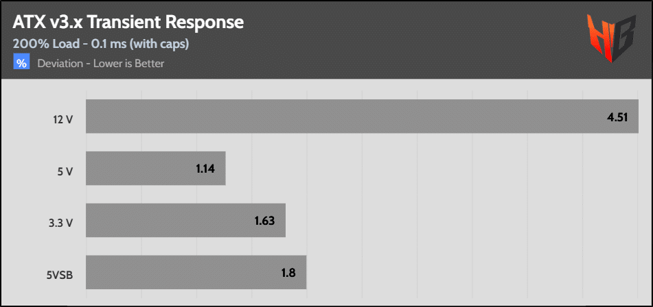 [Note] For PSUs without a 12+4 pin connector, the maximum applied load for the transient response tests is 150%, rather than 200%.The PSU passes all ATX v3.1 transient response tests.
