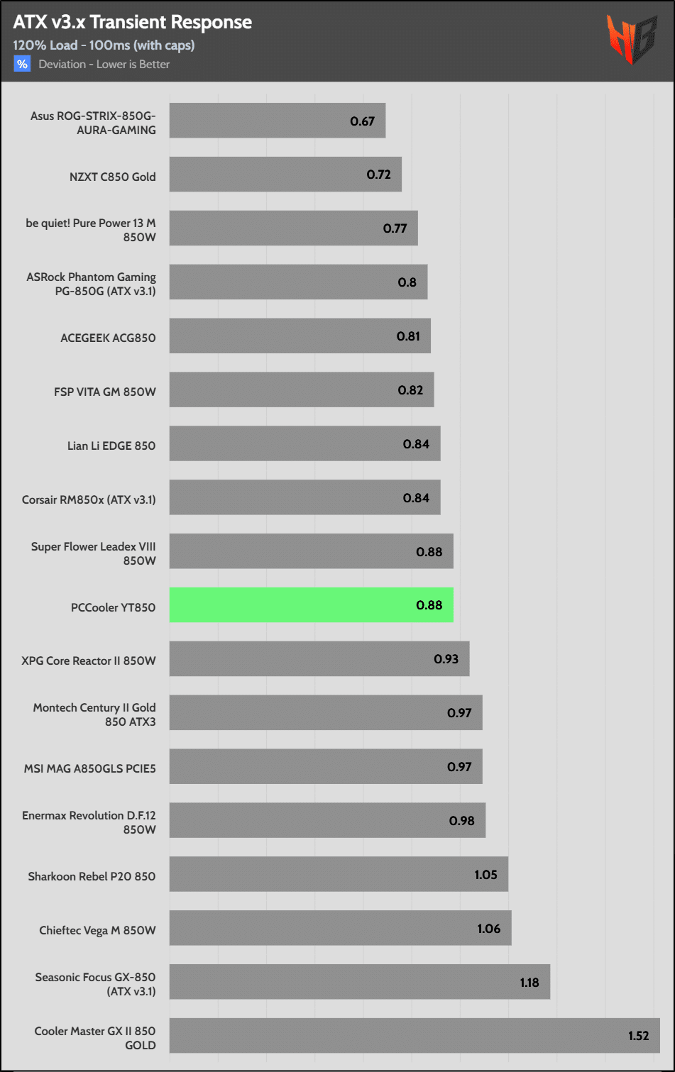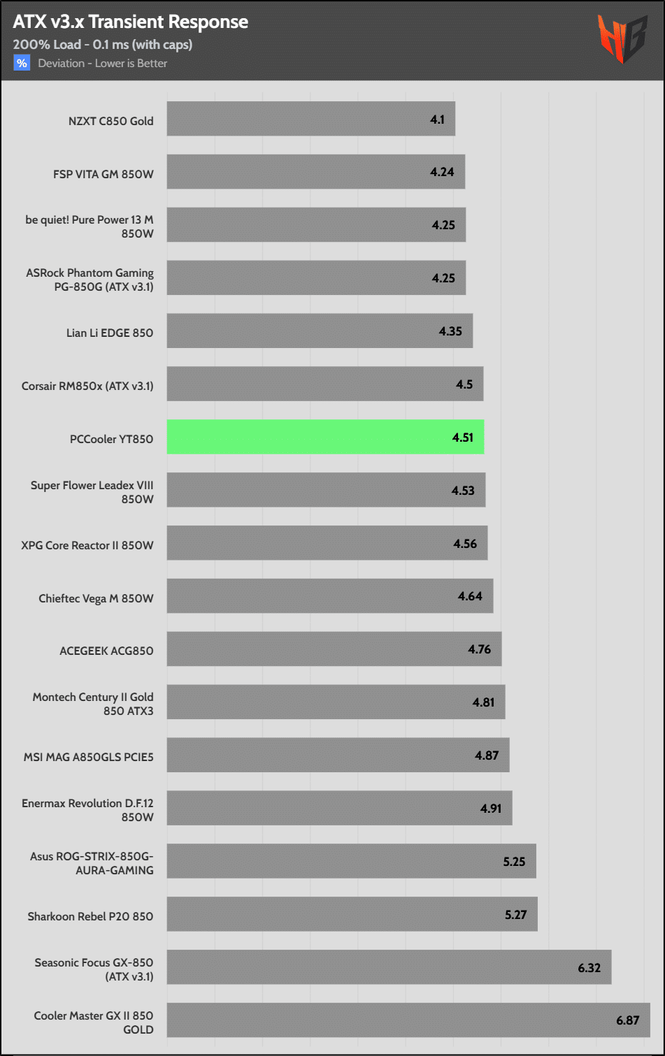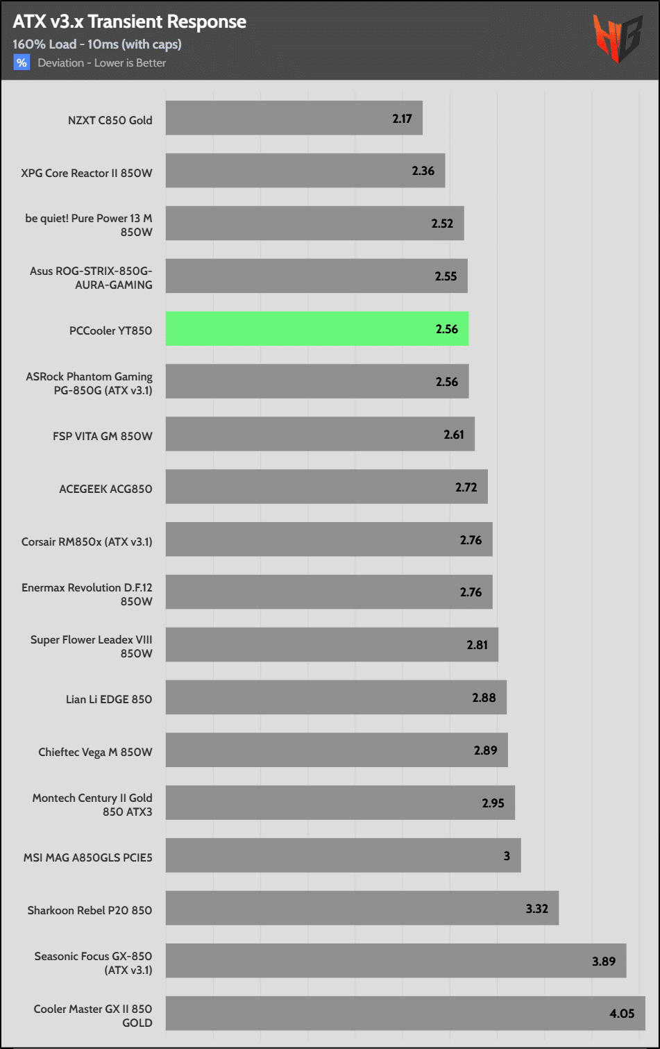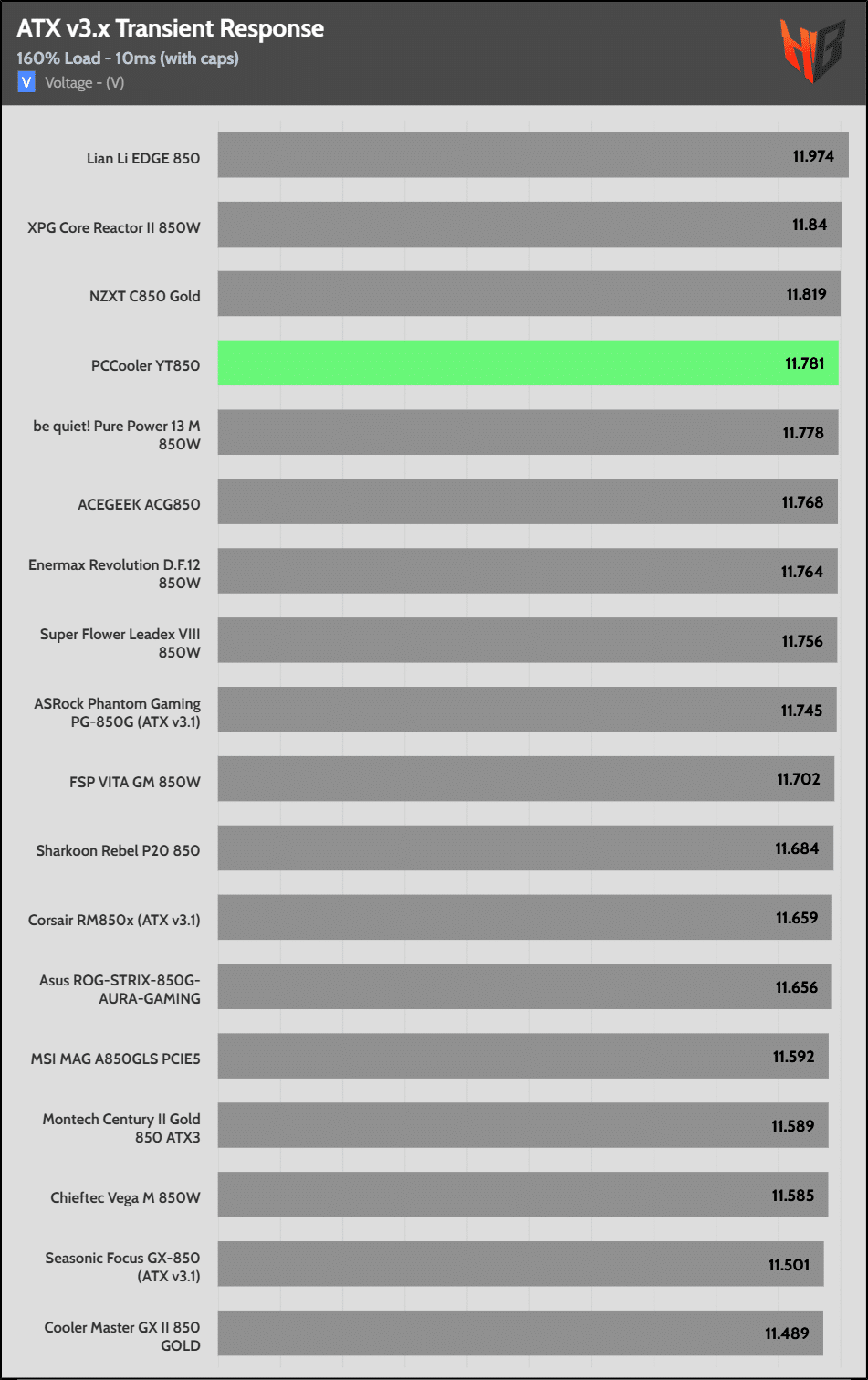 [Note] For PSUs without a 12+4 pin connector, the maximum applied load for the transient response tests is 150%, rather than 200%.The PSU passes all ATX v3.1 transient response tests.
