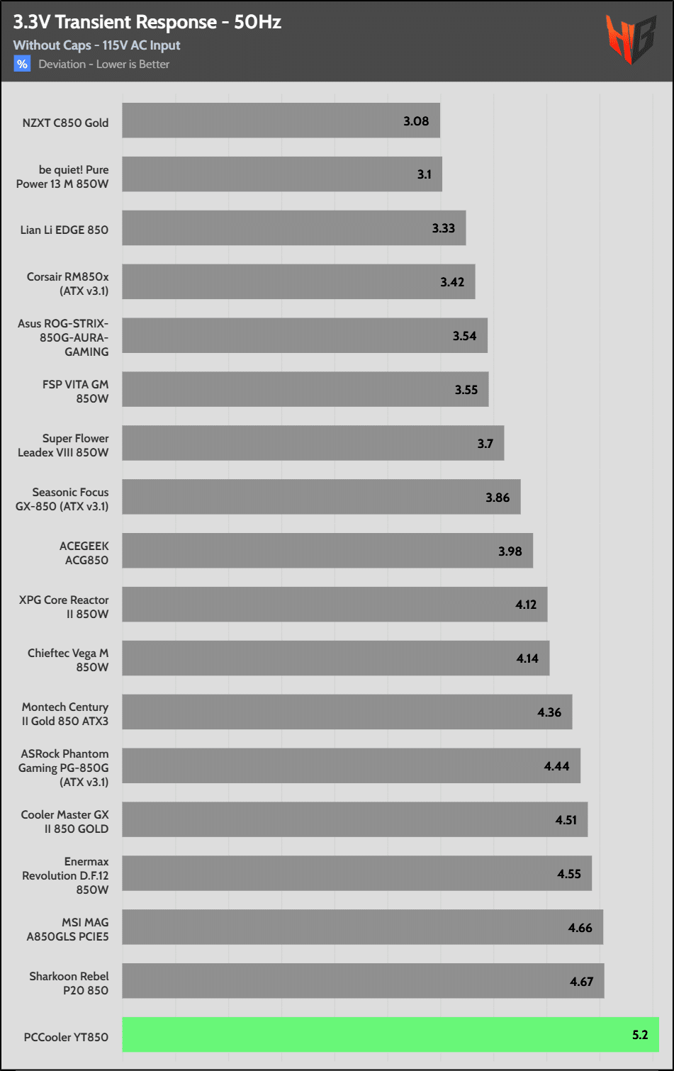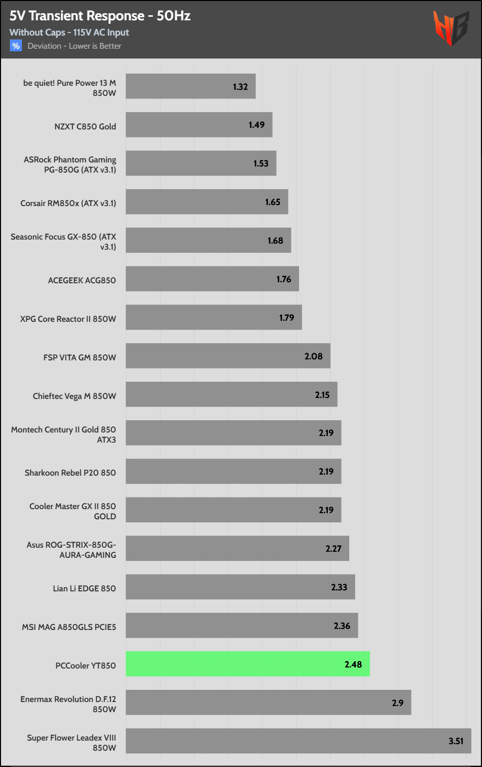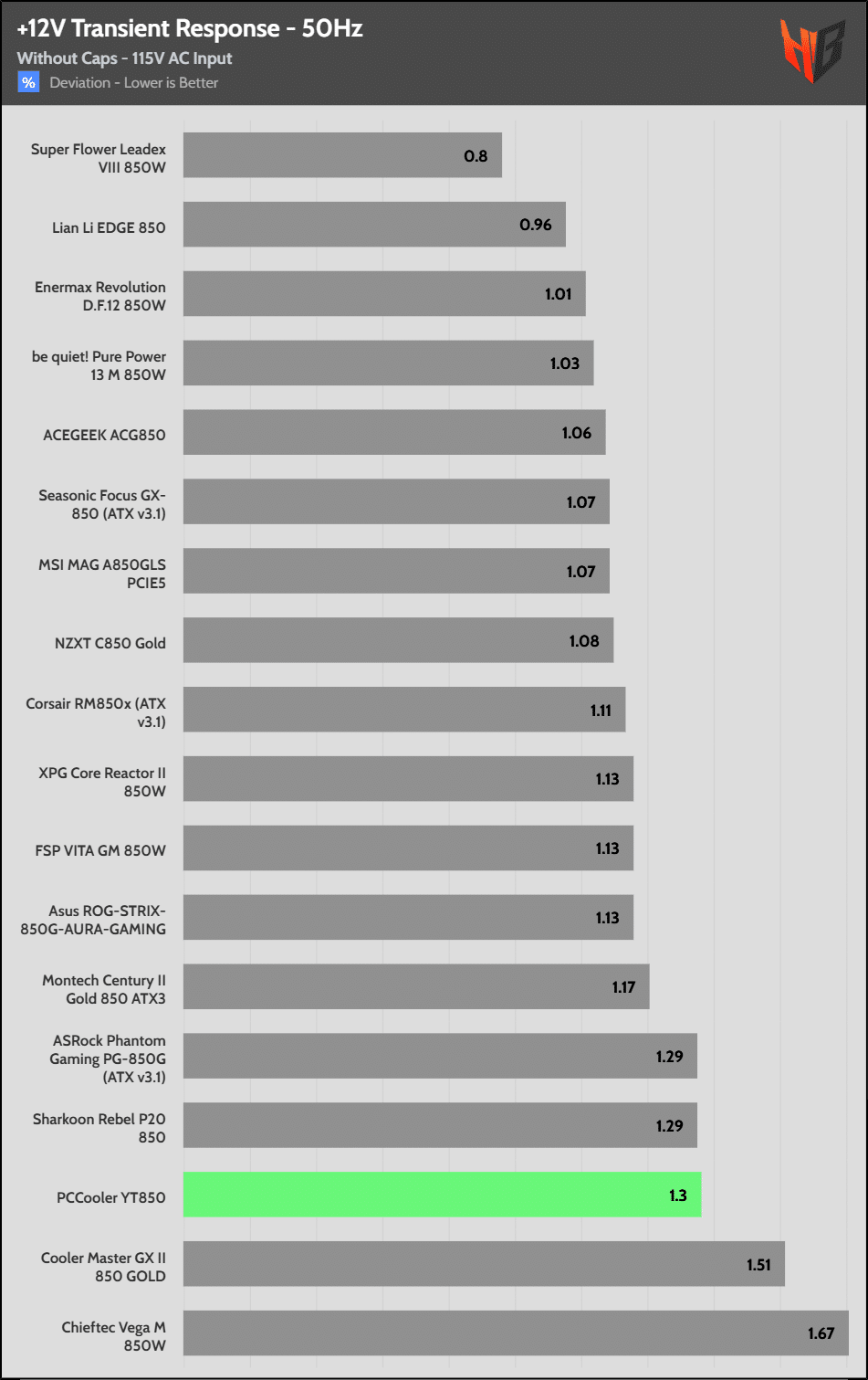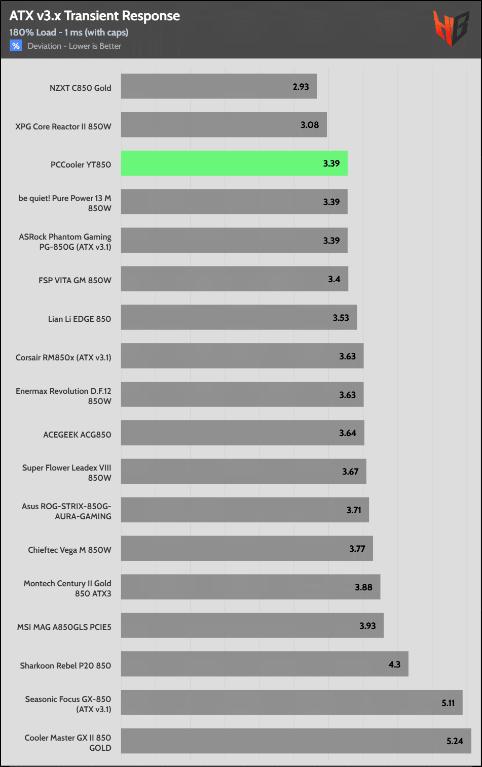 [Note] For PSUs without a 12+4 pin connector, the maximum applied load for the transient response tests is 150%, rather than 200%.The PSU passes all ATX v3.1 transient response tests.
