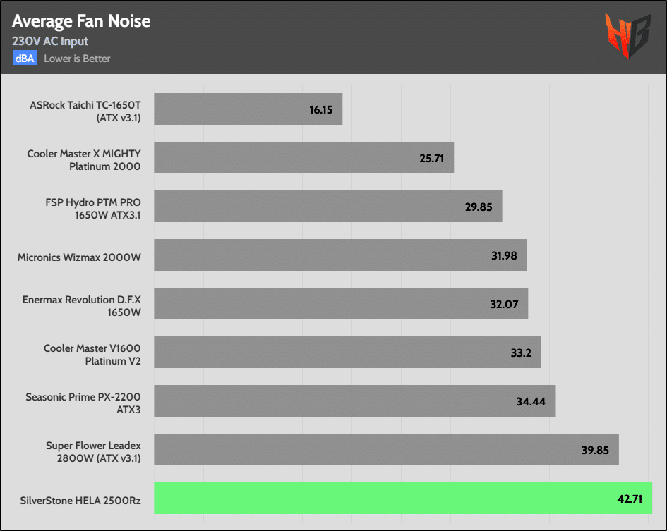 The PSU’s average noise output is high. Even higher than the already loud Leadex 2800W.