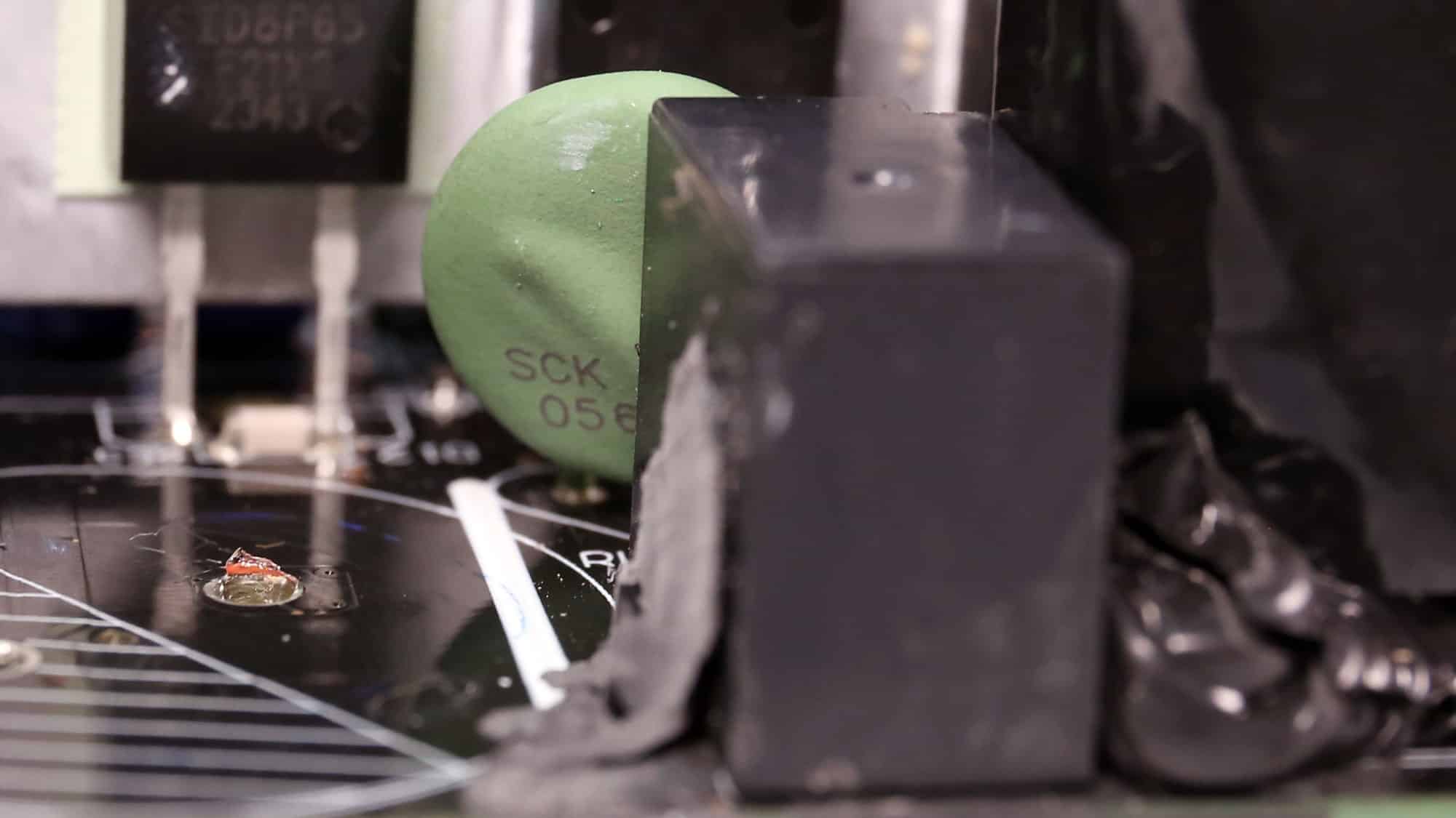 There is an MOV to protect from voltage surges and an NTC thermistor with a resistance of 5 ohms. Moreover, a bypass relay supports the NTC thermistor.
