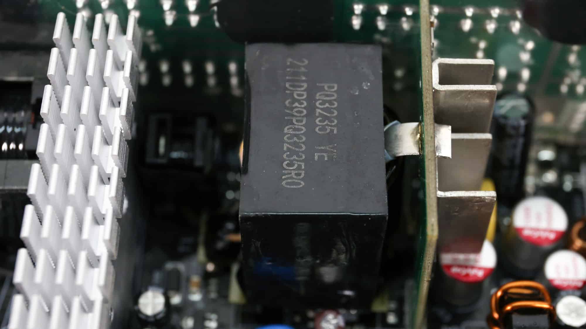 The PSU’s main transformer. One of its main functions is to isolate the primary and secondary sides electrically.