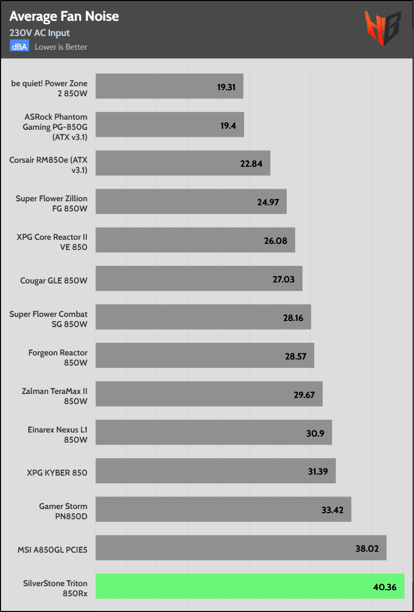 The fan speed profile is aggressive, and it makes an impression that at 230V, the average noise output is higher. This means that the secondary side sets the rules here, and the higher input voltage doesn’t affect it (positively at least!)