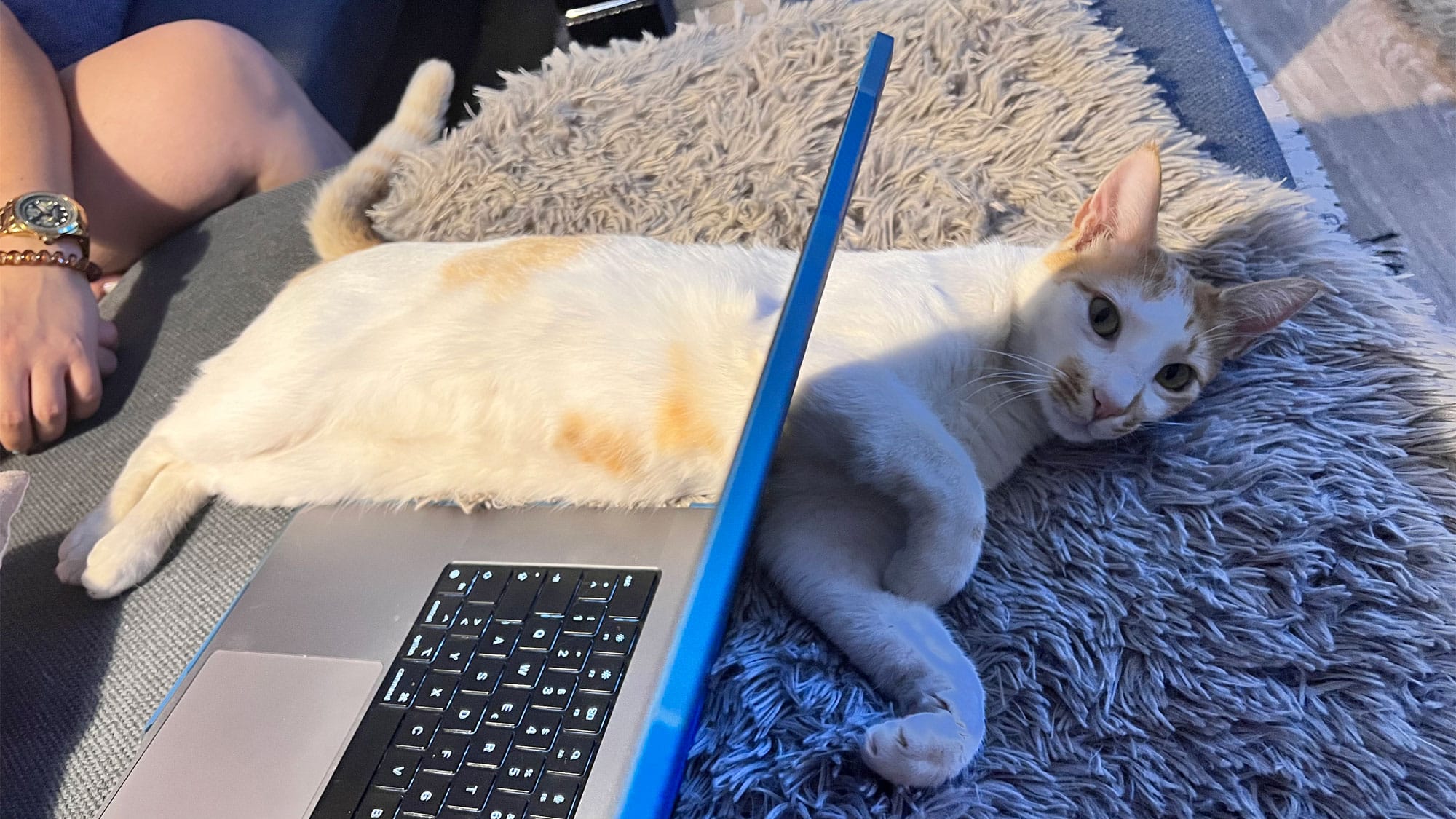 Super Flower sent us a pre-production unit, without the retail box, so here is a photo of Hazelnut learning how to use a MacBook.