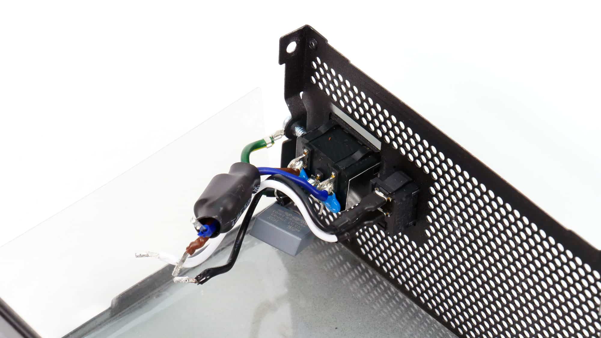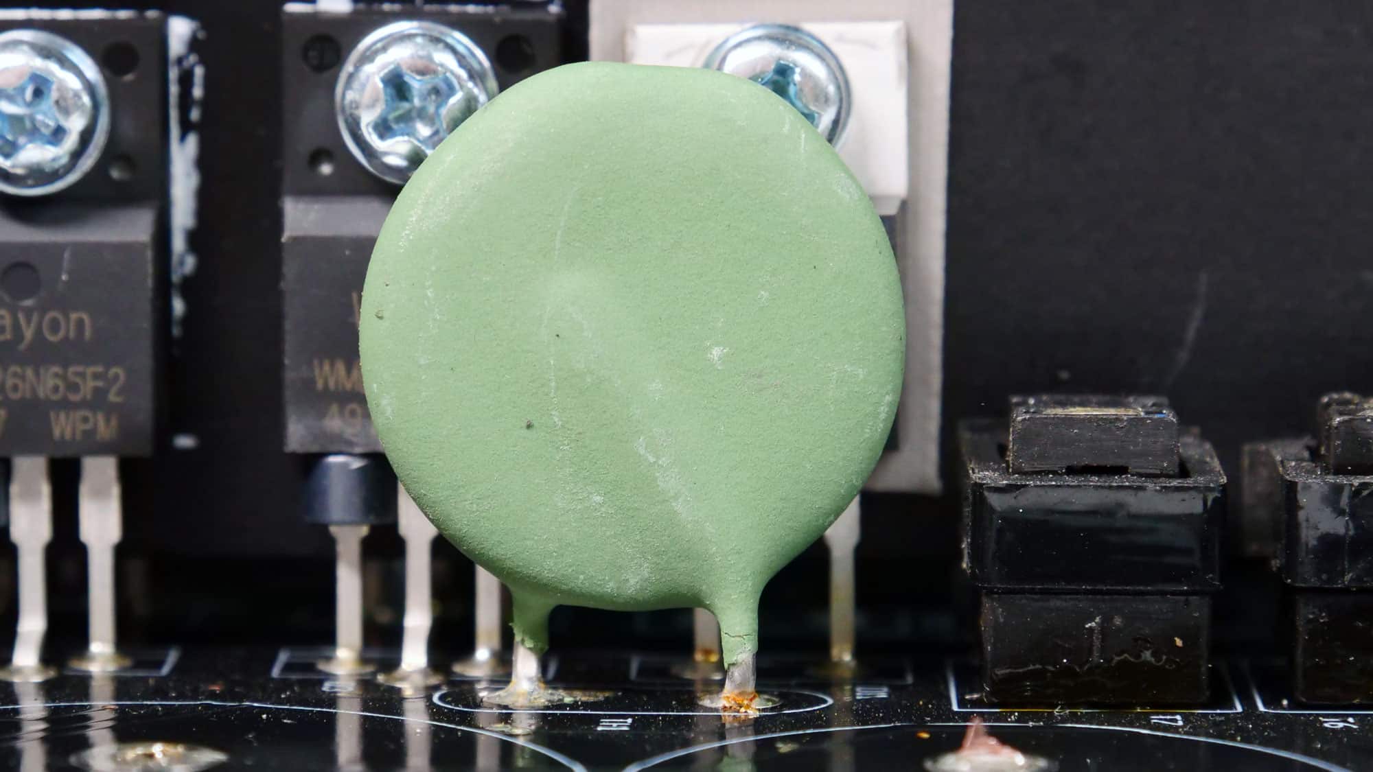 There is an MOV to protect from voltage surges and an NTC thermistor with a resistance of 7 ohms. Moreover, a bypass relay supports the NTC thermistor.
