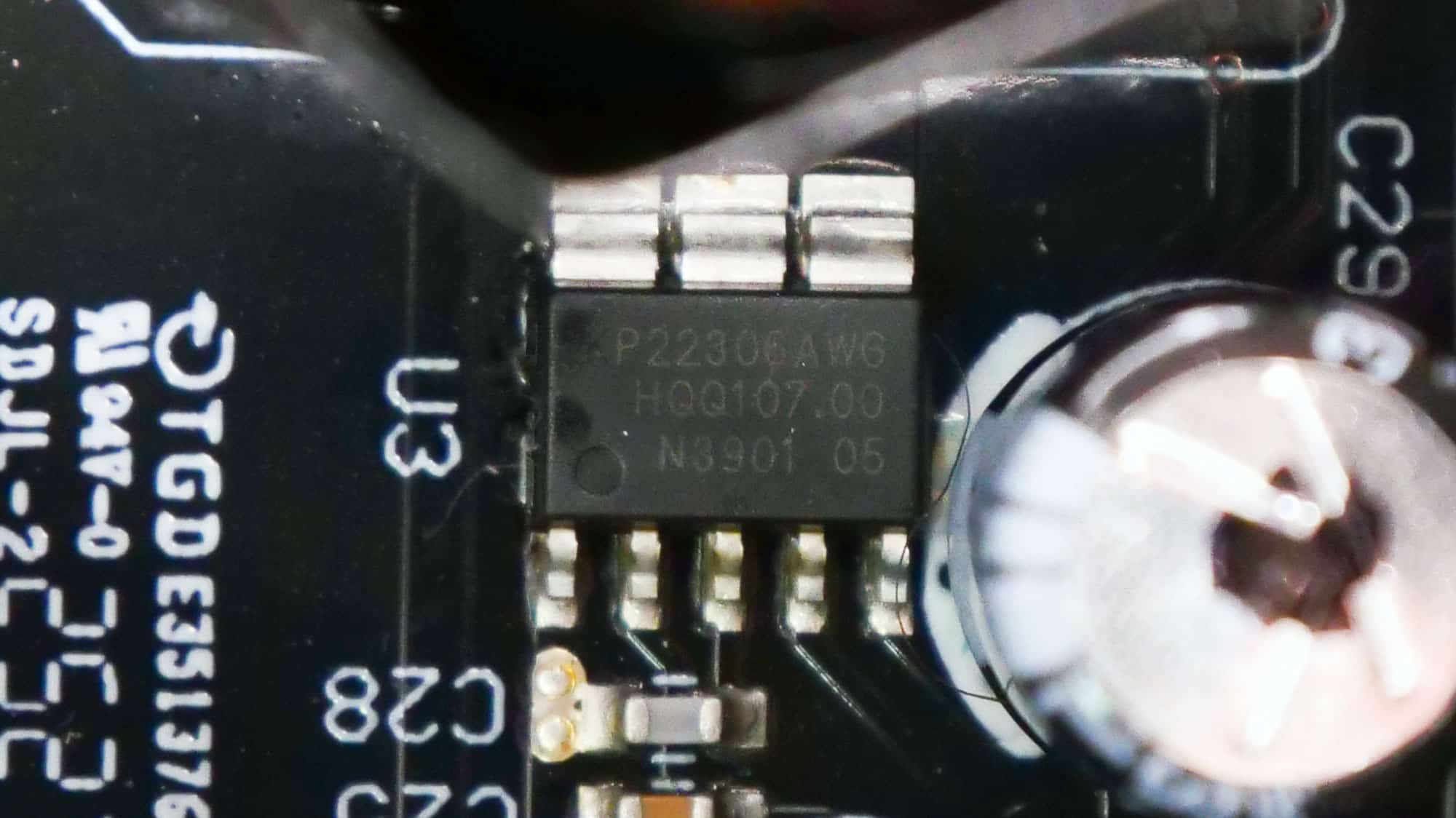 Two DC-DC converters generate the minor rails. They use four UBIQ Semi QM3054M6 FETs. The PWM controller is an Anpec APW7159C.