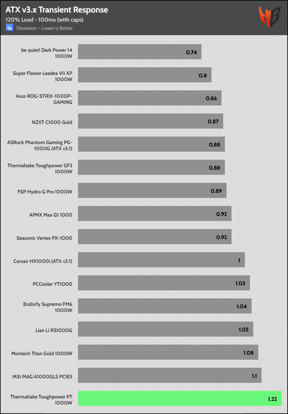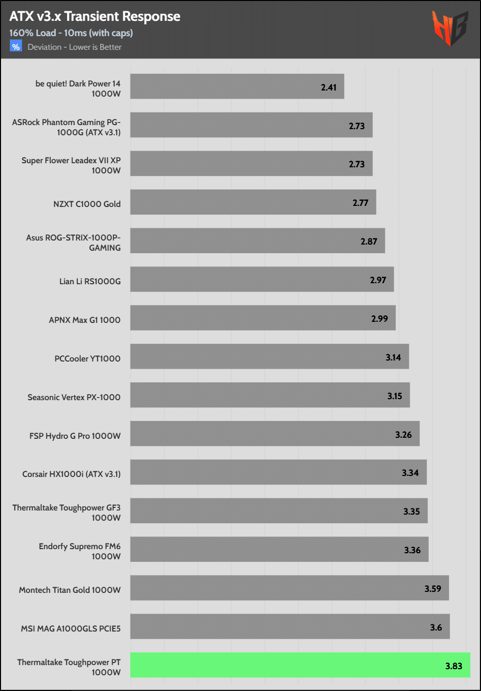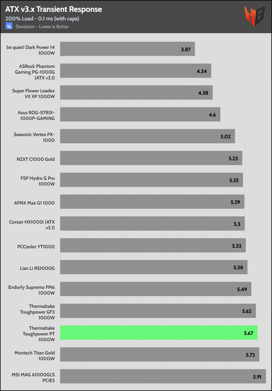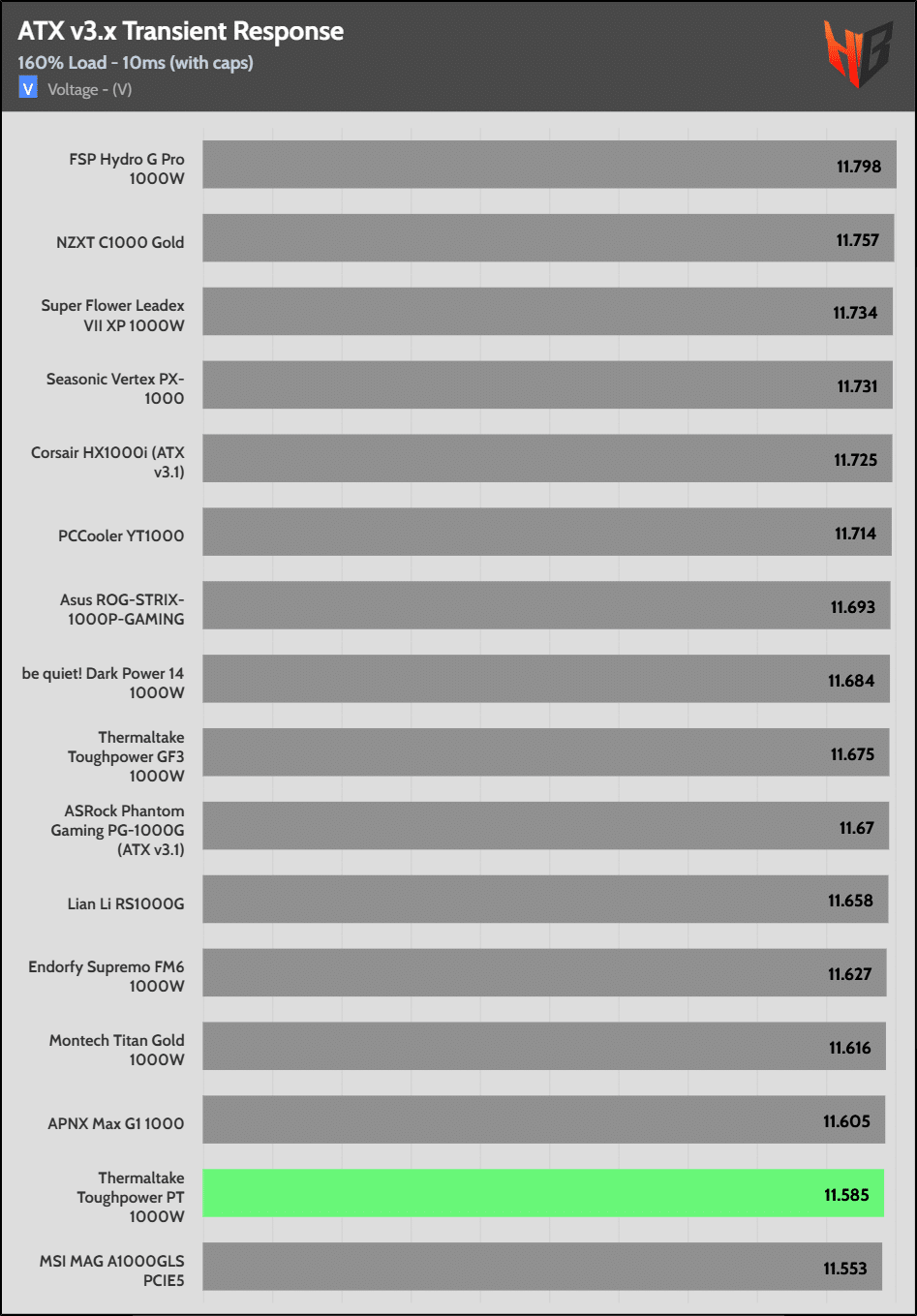 [Note] For PSUs without a 12+4 pin connector, the maximum applied load for the transient response tests is 150%, rather than 200%.The PSU passes all ATX v3.1 transient response tests.