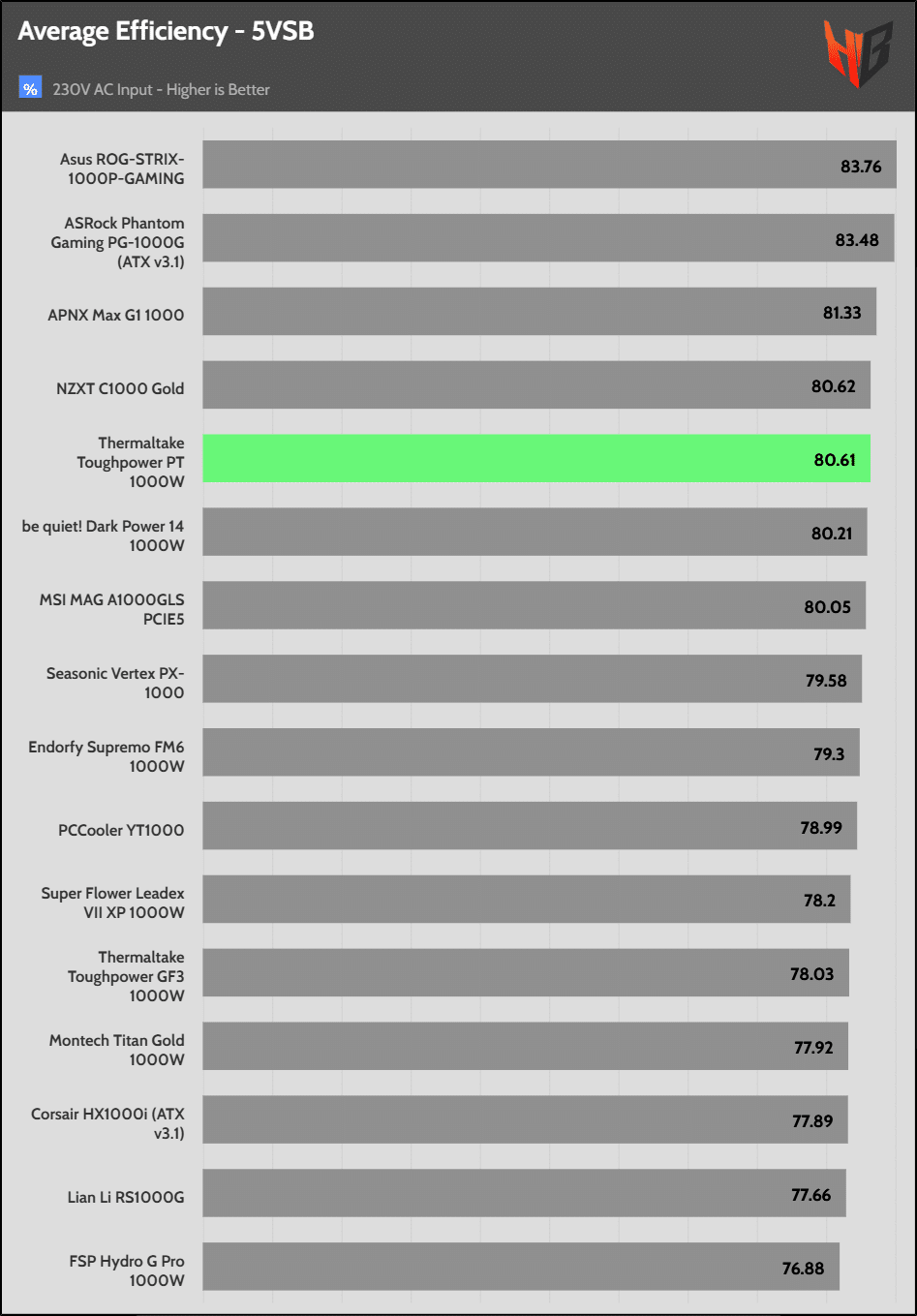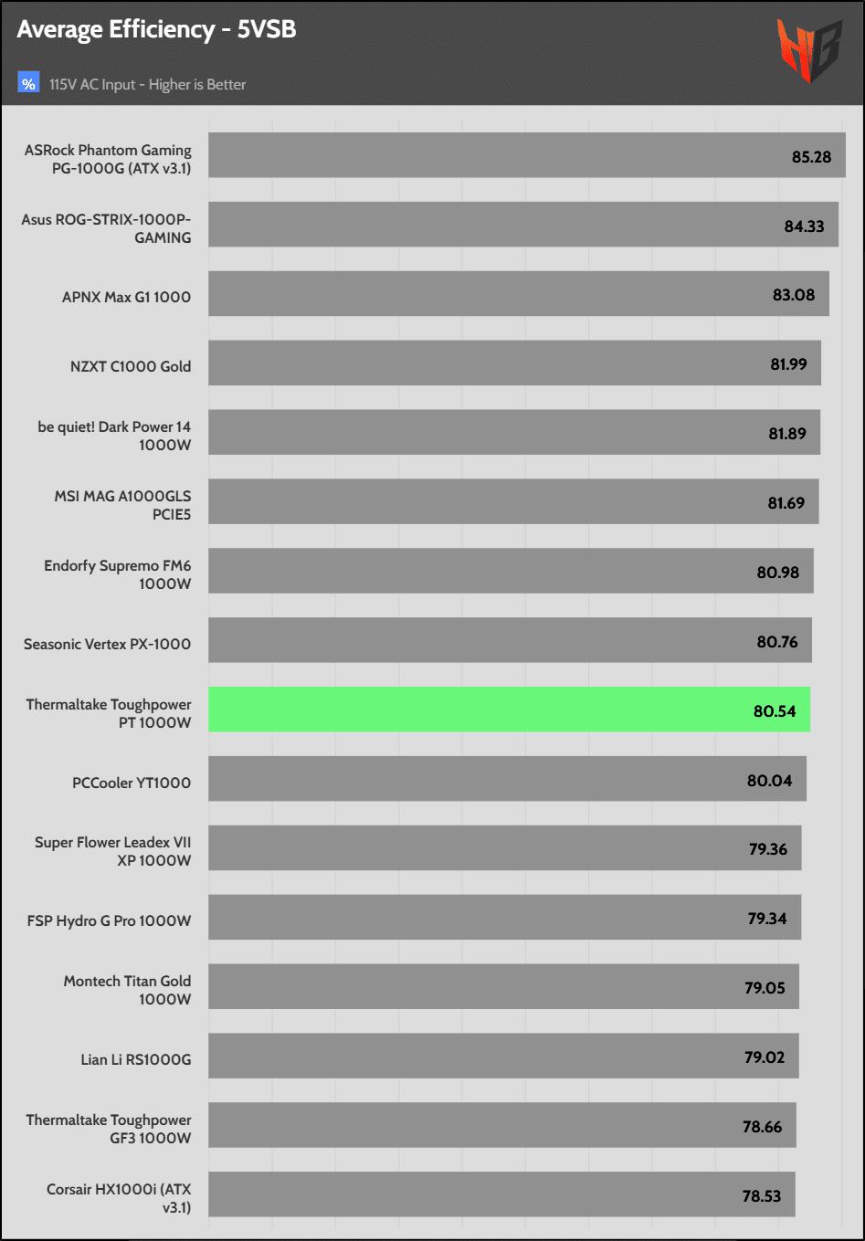 The 5VSB rail’s efficiency is high.