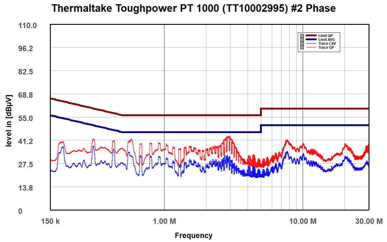 Please note that the ATX spec allows a 4 dB margin for conducted and radiated emissions. This means that if a PSU exceeds the limits but stays within the 4 dB margin, it meets the corresponding ATX spec requirement (8.1 Emissions).