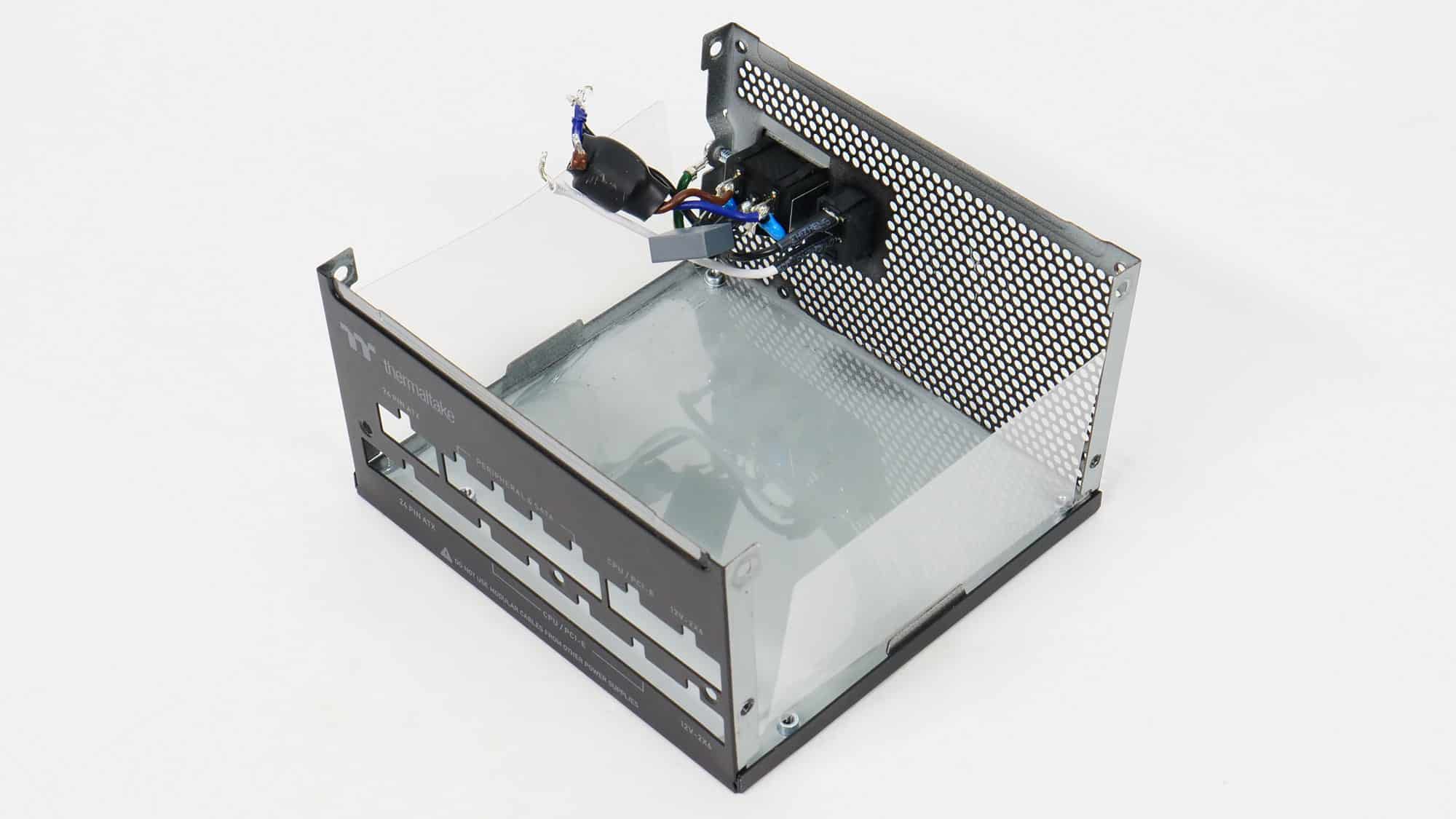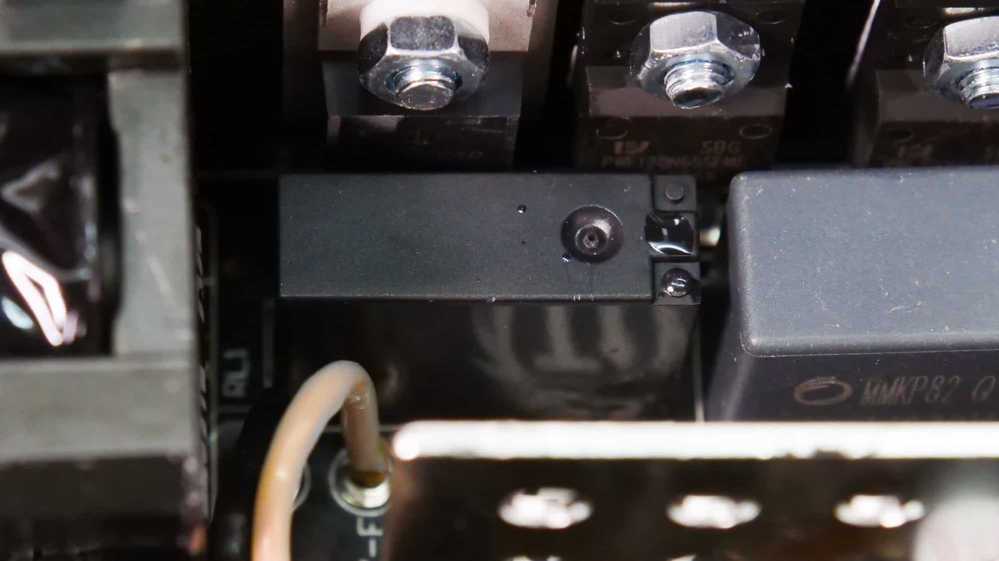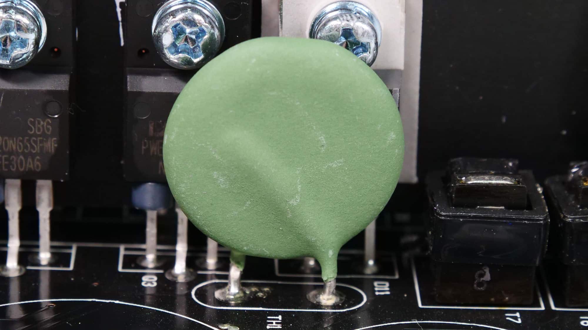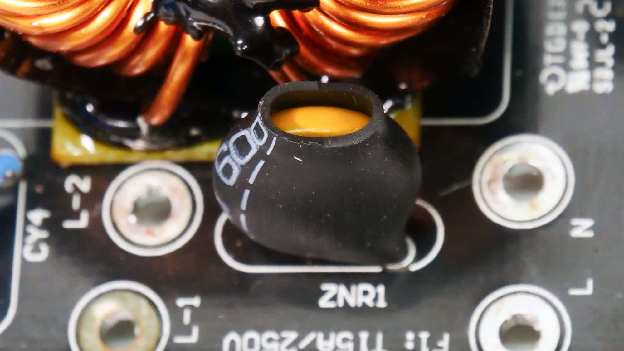 There is an MOV to protect from voltage surges and an NTC thermistor with a resistance of 5 ohms. Moreover, a bypass relay supports the NTC thermistor.