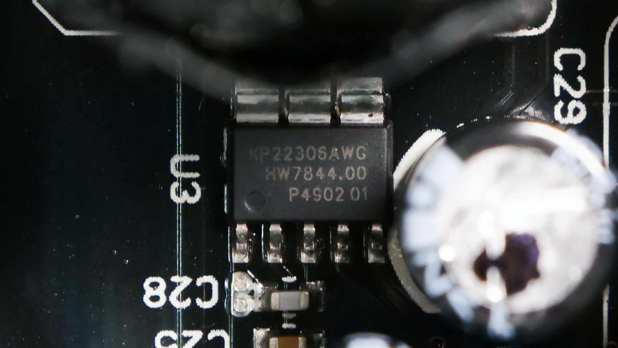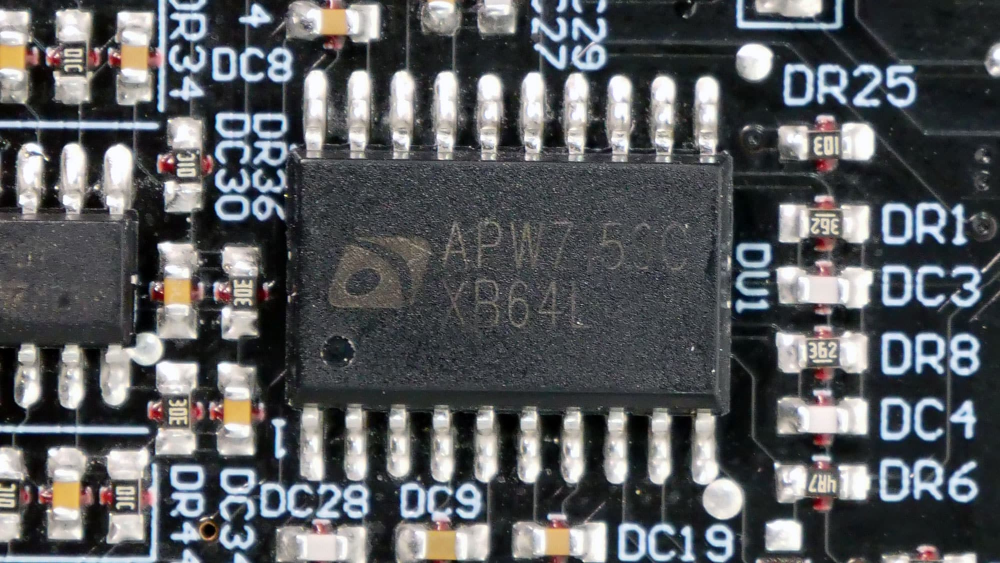 Two DC-DC converters generate the minor rails. They use four UBIQ Semi QM3054M6 FETs. The PWM controller is an Anpec APW7159C.