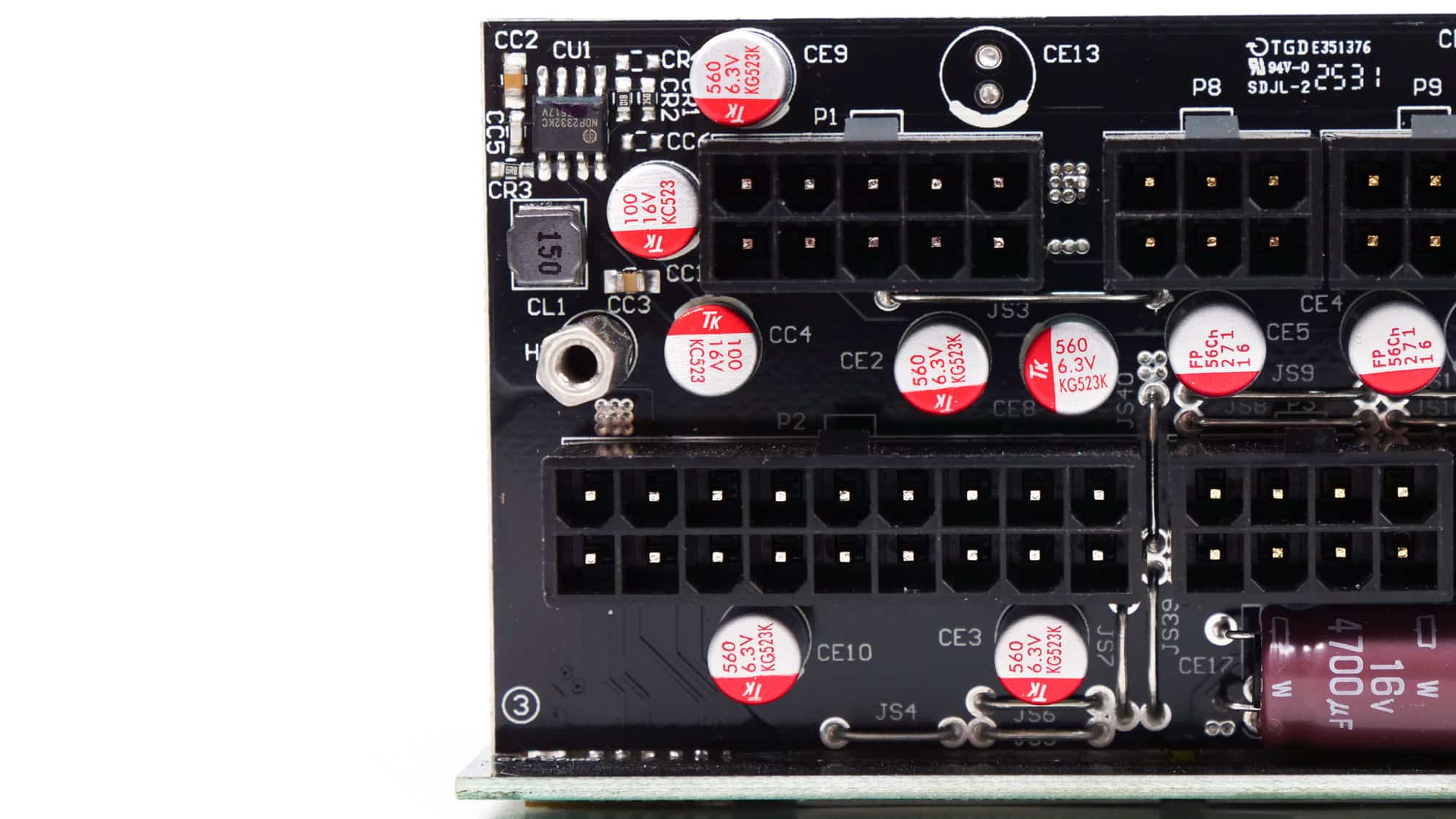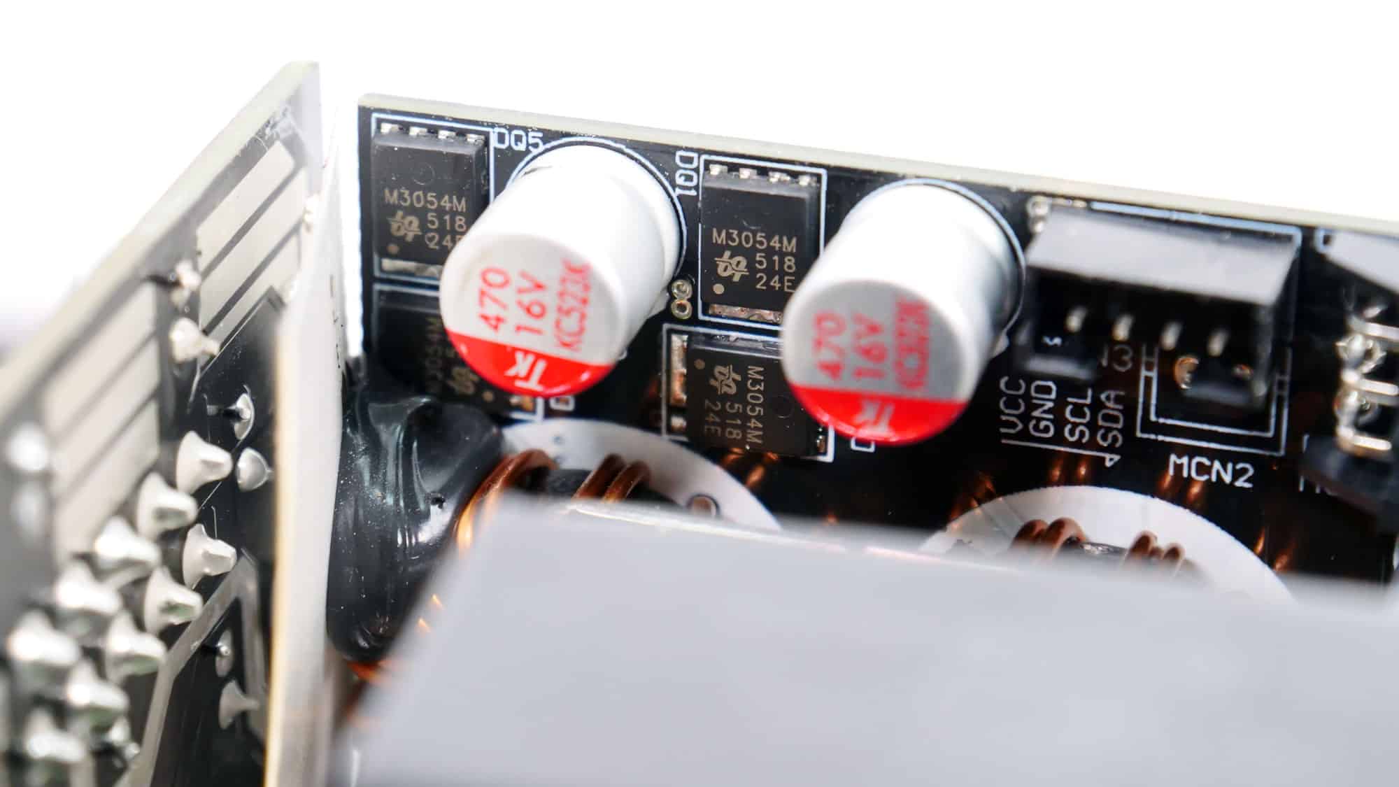 To keep costs low, CWT didn’t use branded FETs from Infineon or Vishay but went with Chinese brands that will do just fine. On the other hand, for the electrolytic capacitors, it chose well-known and expensive brands. Moreover, the cooling fan is provided by CWT, which decided to make its own rather than rely on other manufacturers. This is a wise move!