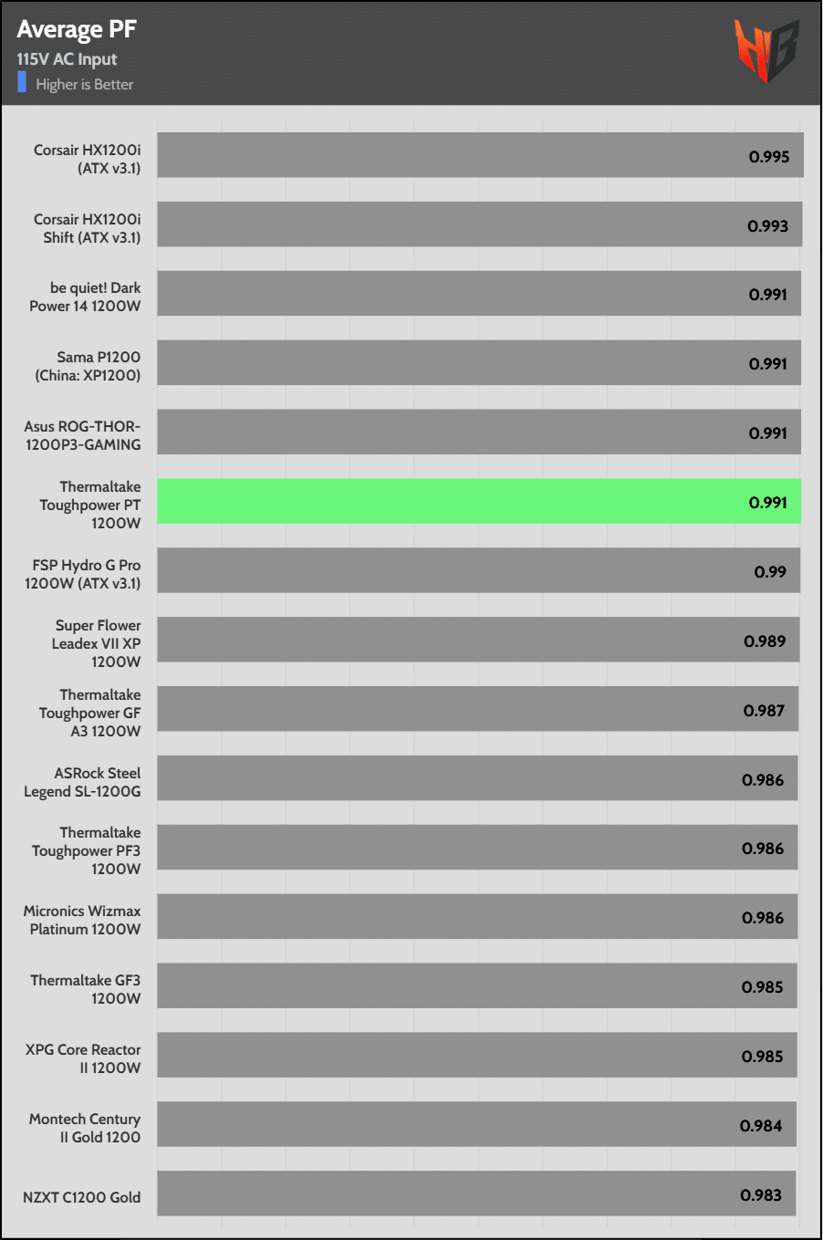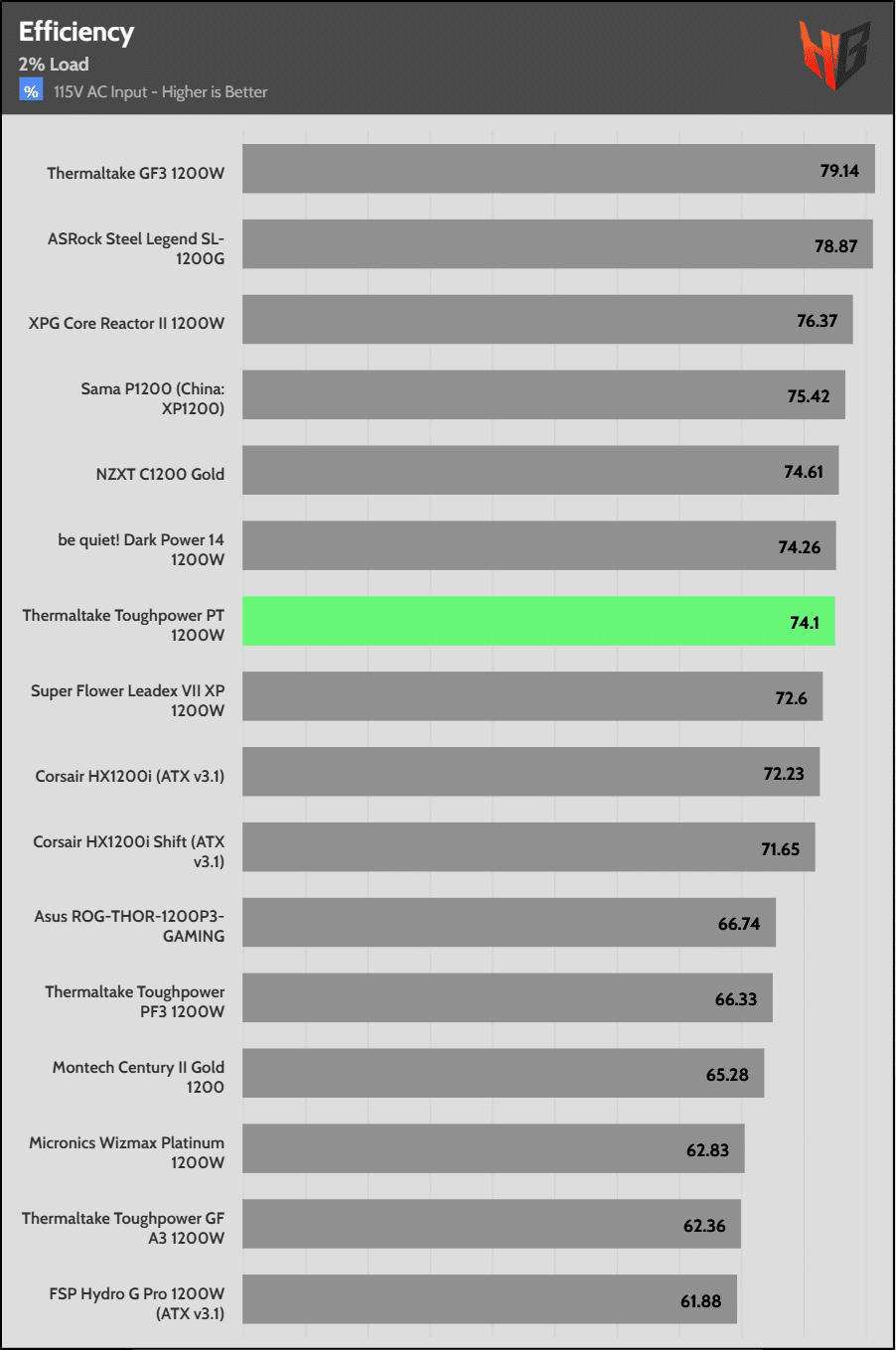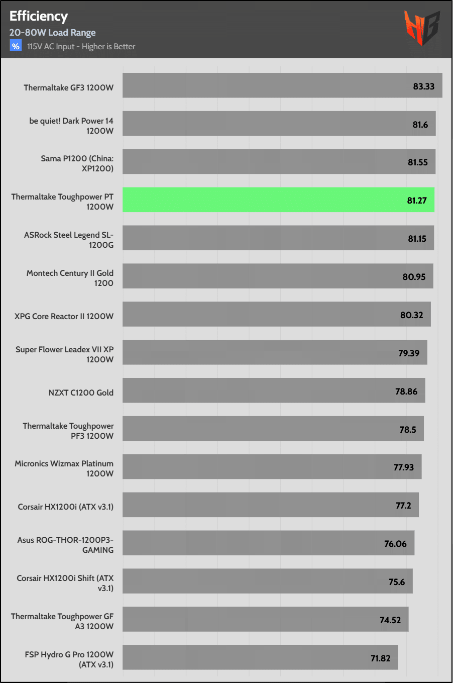 The PSU’s average efficiency with more than 1450 different load levels at 115V and 230V is depicted in the graphs below.