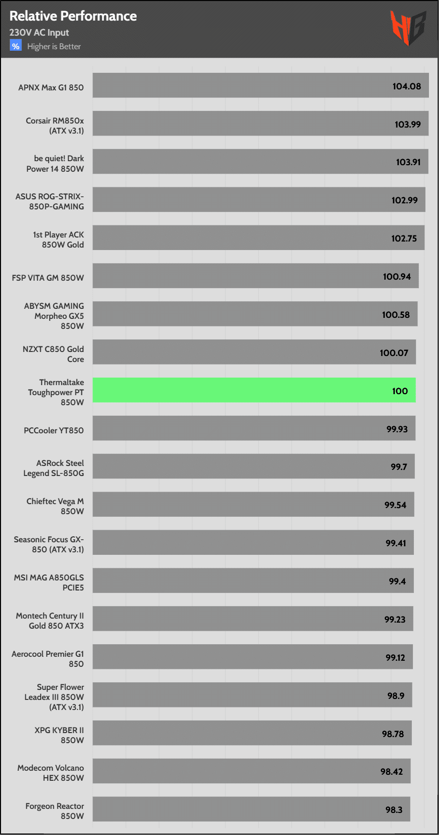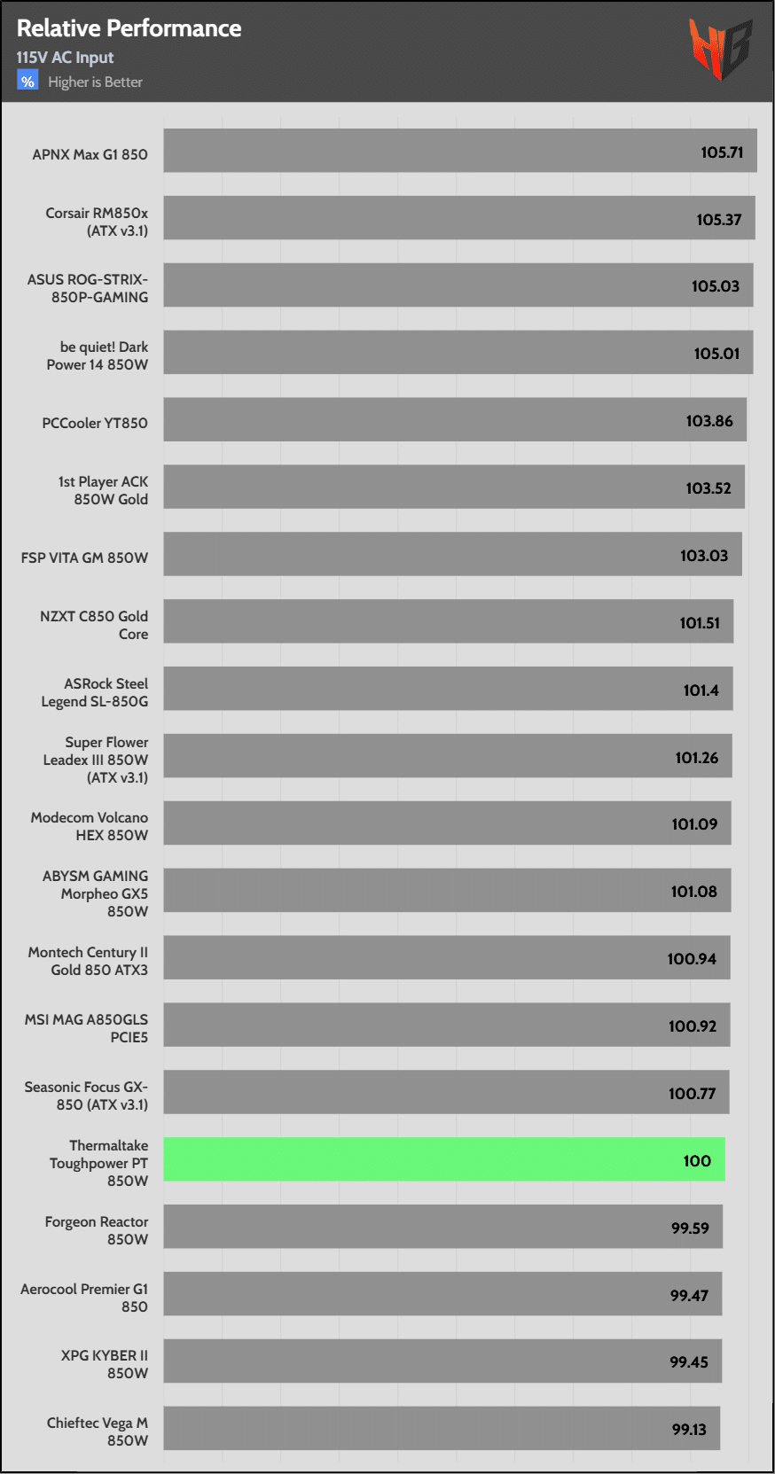 The PT model’s overall performance is not competitive at 115V, but it is notably better at 230V because of the APFC’s converter good performance at this voltage input and the high efficiency levels, compared to competing offerings.