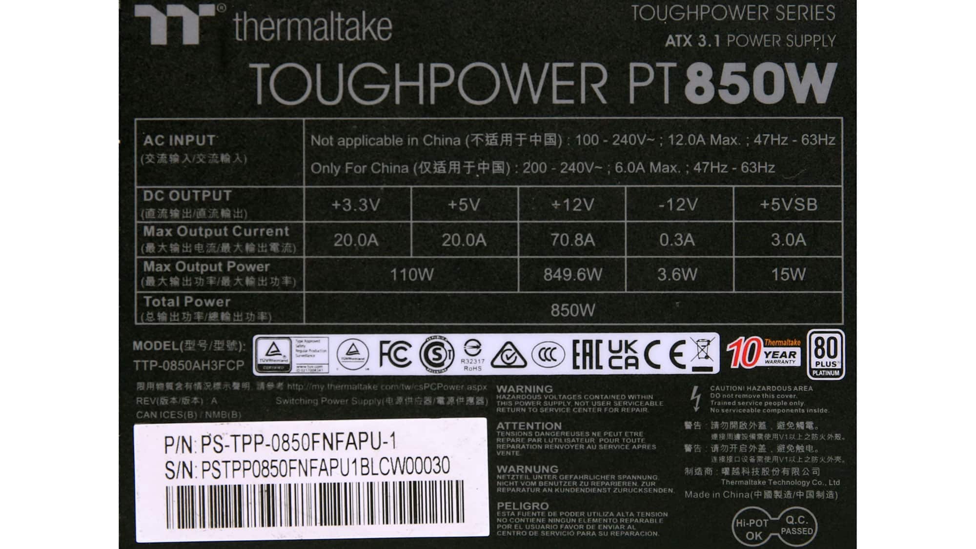 The cable lengths are generally sufficient, though the ATX cable could be longer—ideally 600mm or more. High-power cables use thicker 16AWG wires to minimize voltage drop under heavy loads. The 850W and 1000W models include one 12V-2×6 connector, while the 1200W version provides two.