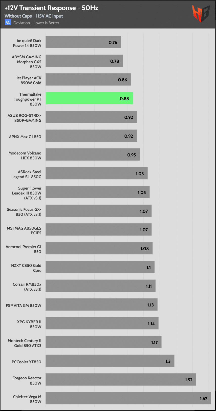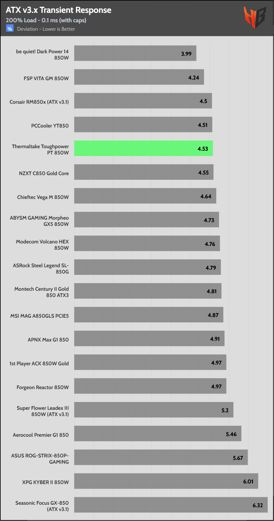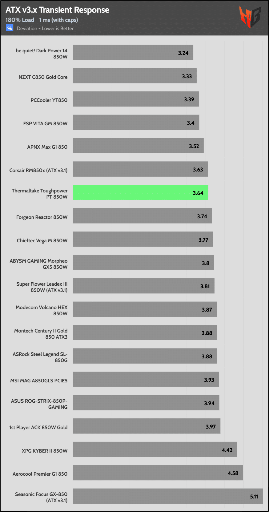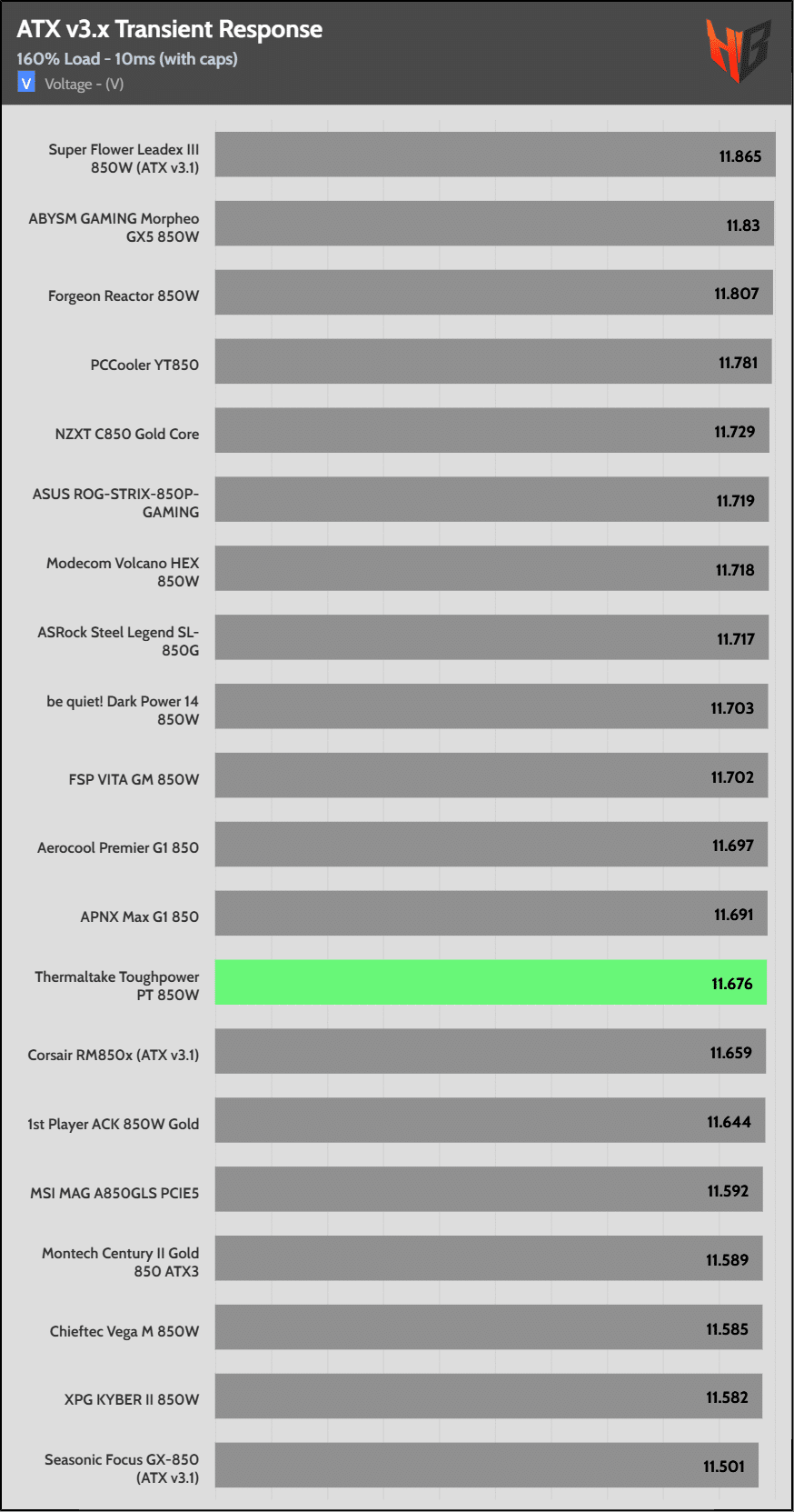 [Note] For PSUs without a 12+4 pin connector, the maximum applied load for the transient response tests is 150%, rather than 200%.The PSU passes all ATX v3.1 transient response tests.