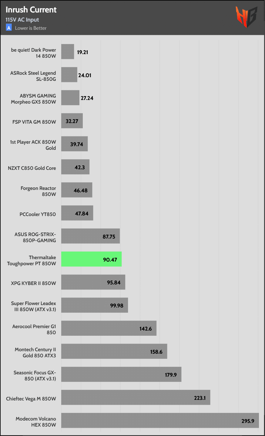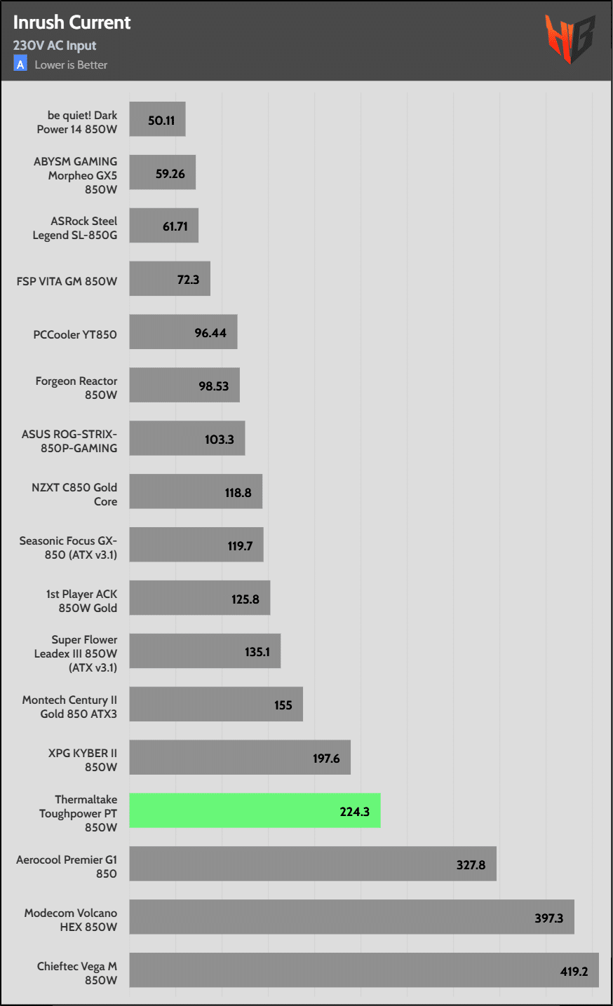 The inrush currents are high. We recently changed the methodology for conducting inrush current measurements and the required equipment, so I will need to re-run the corresponding tests on many PSUs, including the PT models.