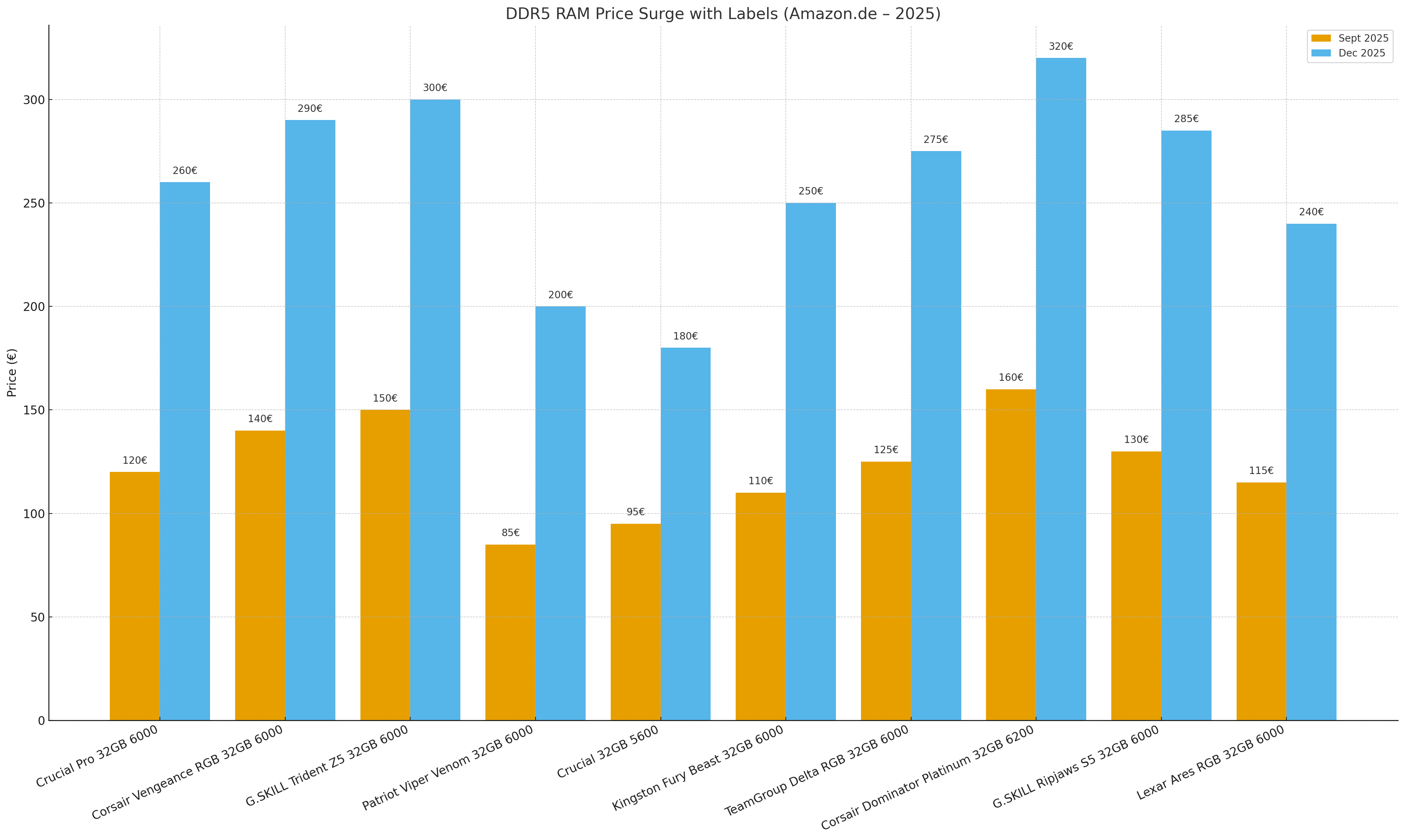 Let’s check some DDR5 Kits on Amazon.de to see the price differences between September and December 2025. You will be shocked!